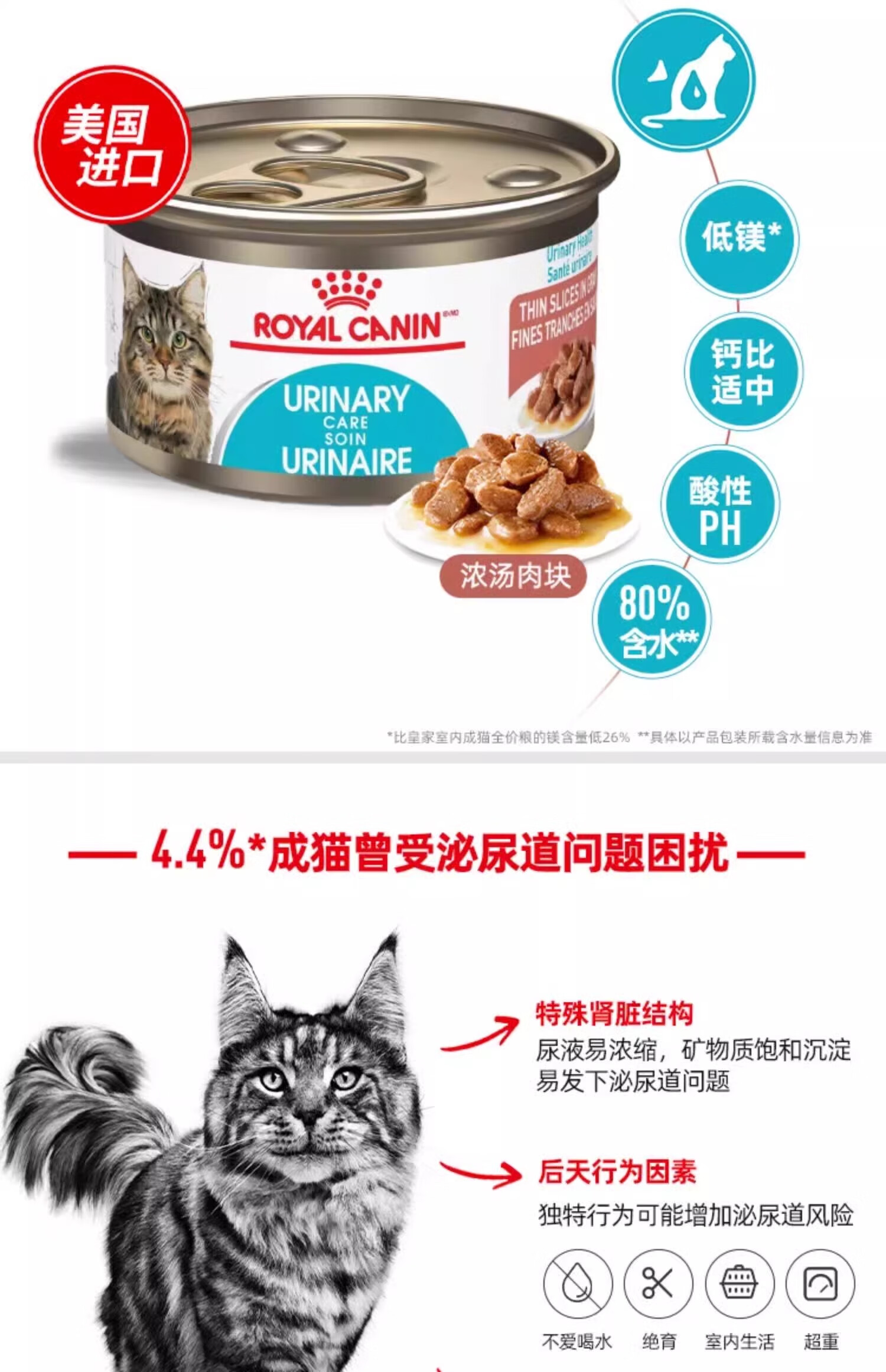 Royal imported canned cat food, general urinary tract care for adult cats, wet food, canned food, cat snacks >12 months, new customer trial, multi-faceted care for 1 year old and above, 85g