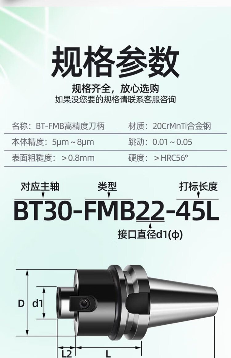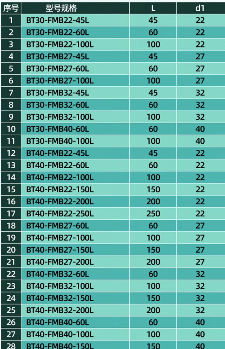 CNC CNC FMB face milling cutter shank mounted milling cutter disc holder BT30/40/50-FMB22/32/40-60/100L BT50-FMB40-60L