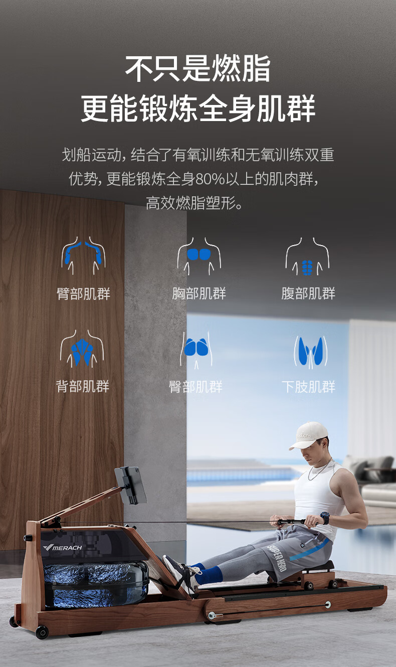 MERACH rowing machine household foldable hydromagnetic dual-resistance fitness equipment fat-burning comprehensive training boat slide upgraded to 65KG strong resistance-self-generated-all-in-one-1