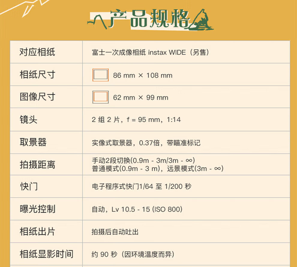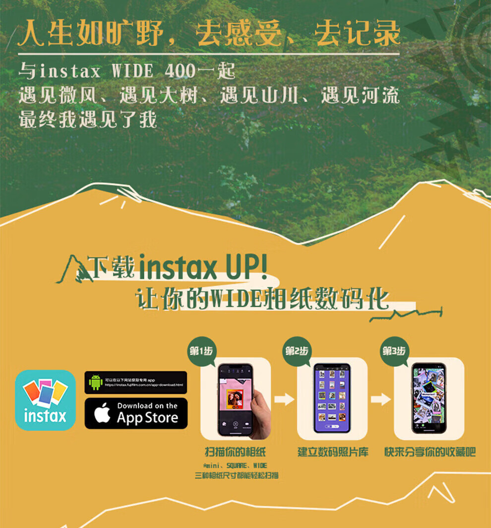 Fuji (FUJIFILM) instax Polaroid WIDE400 one-time imaging retro camera wide400 wide field of view grass wild grass green