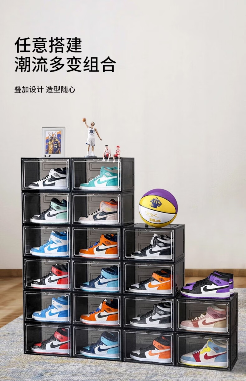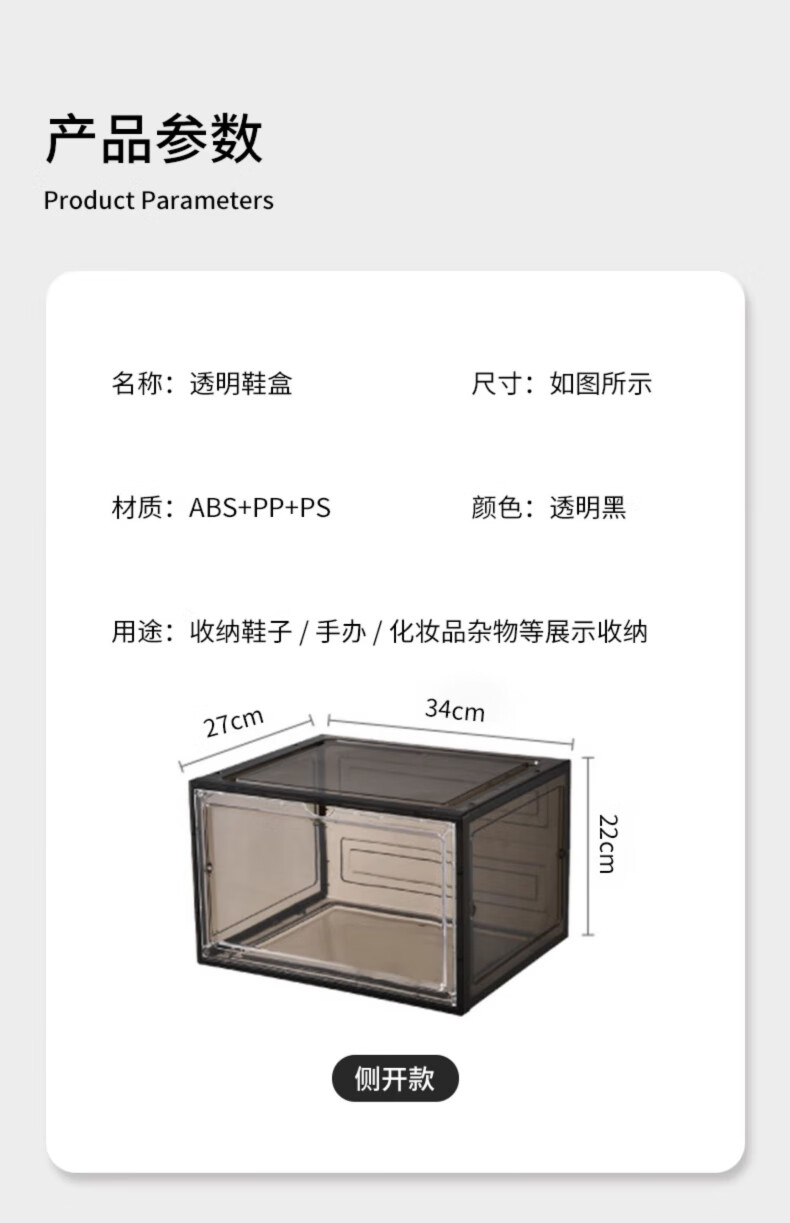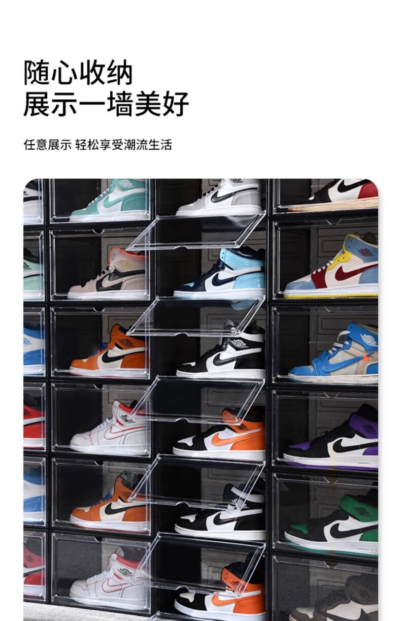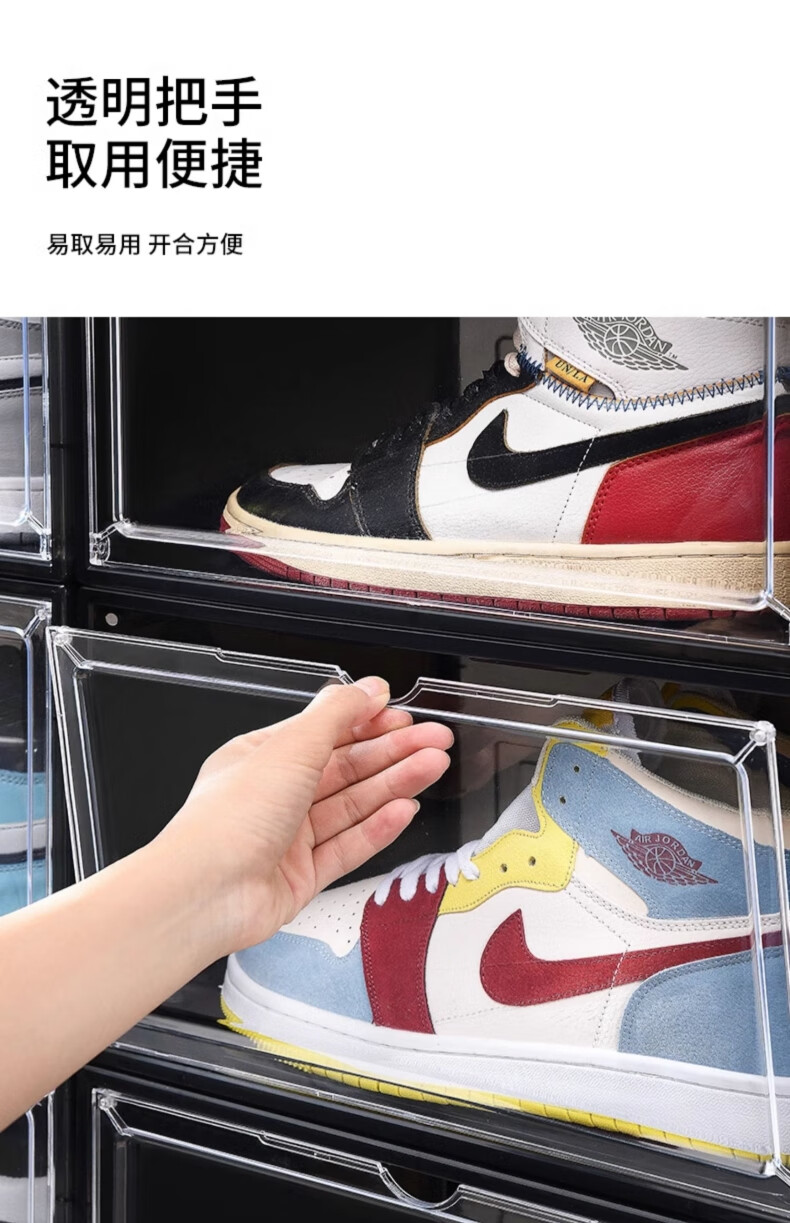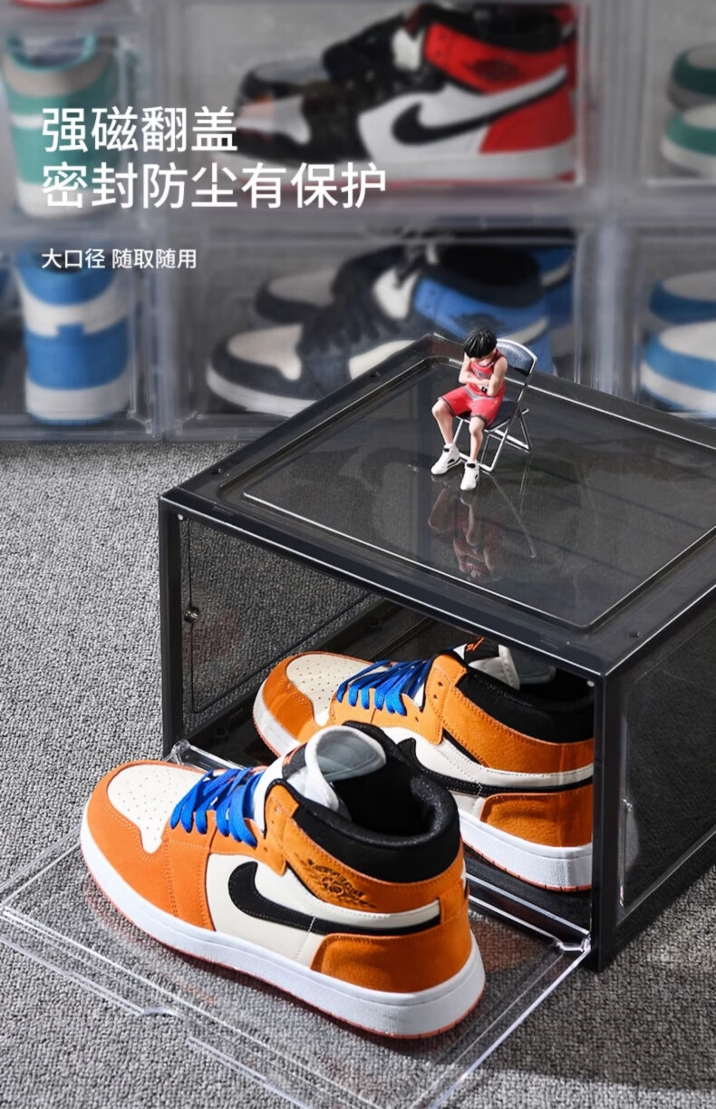 Omandi shoe box transparent magnetic absorption box side opening shoe cabinet acrylic anti-oxidation figure storage box shoe wall display box magnetic side opening gray 1 shoe box
