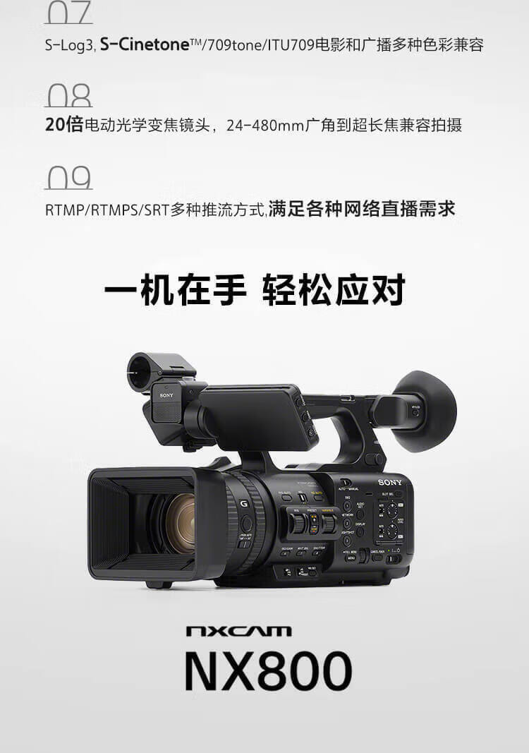 Sony (SONY) HXR-NX800 Camera AI Smart Portable 4K Professional Camera Live Class Recording News Interview NX800 Camera Free Camera Bag + 4K HD Cable + UV Mirror Standard