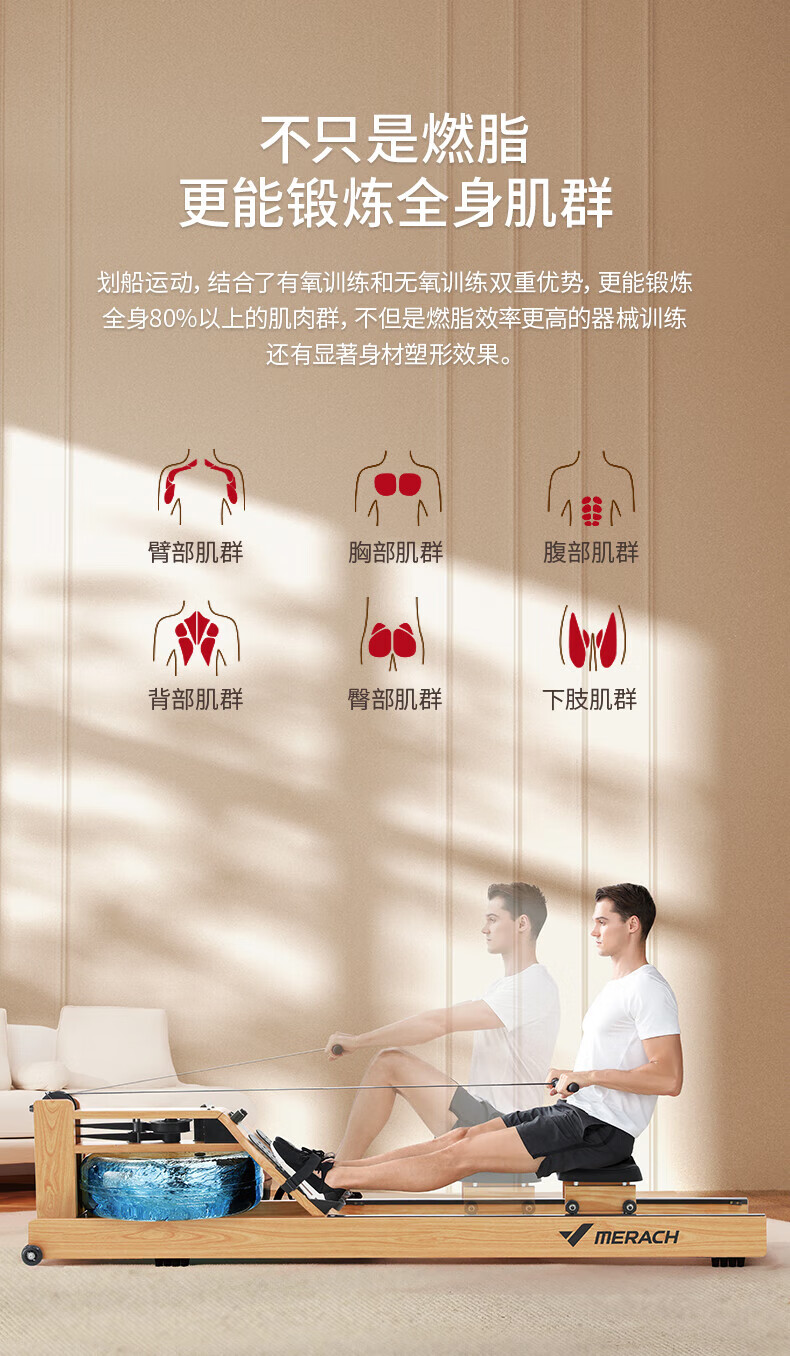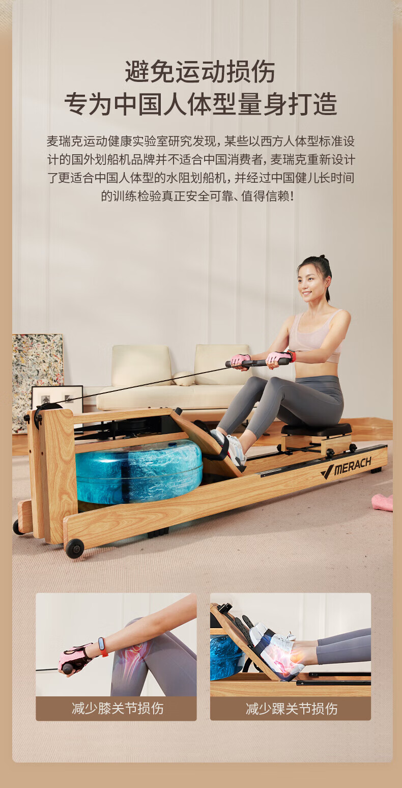Merrick Rowing Machine Home Water Resistance Aerobic Fitness Equipment Smart Rowing Machine Supports HUAWEI HiLink Ash/Supports HUAWEI HiLink