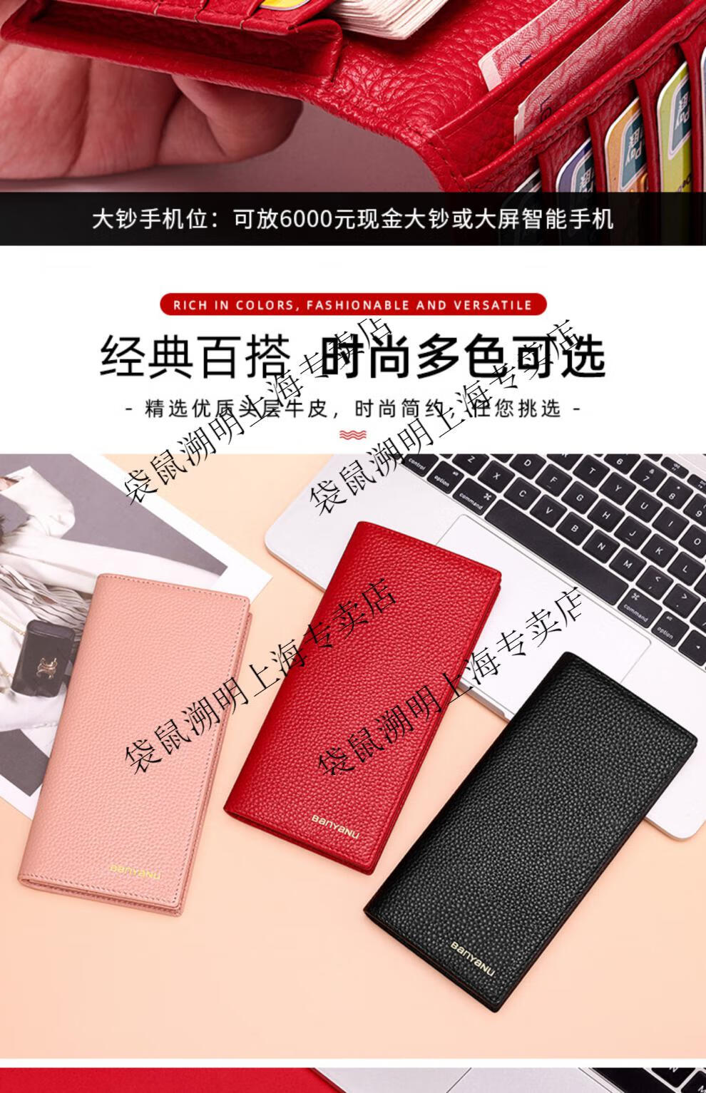 Kangaroo (KANGAROO) brand light luxury women's leather wallet Valentine's Day yellow long wallet 2024 new cowhide handmade men's yellow (first layer of cowhide inside and outside) anti-theft brush