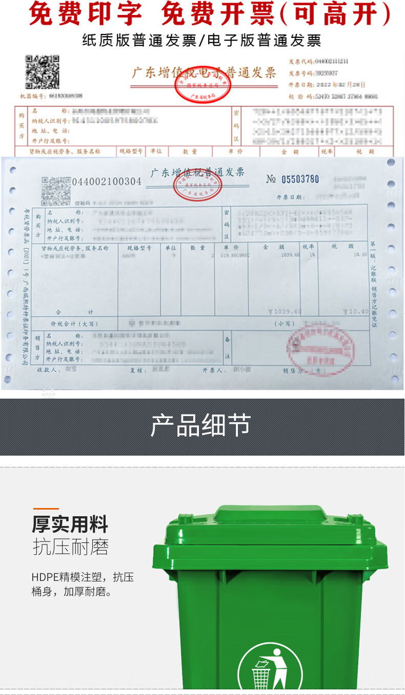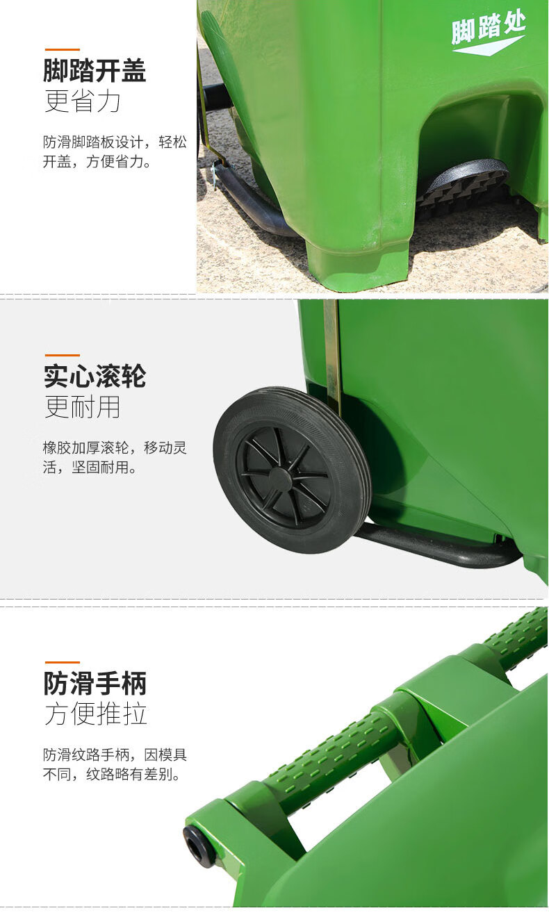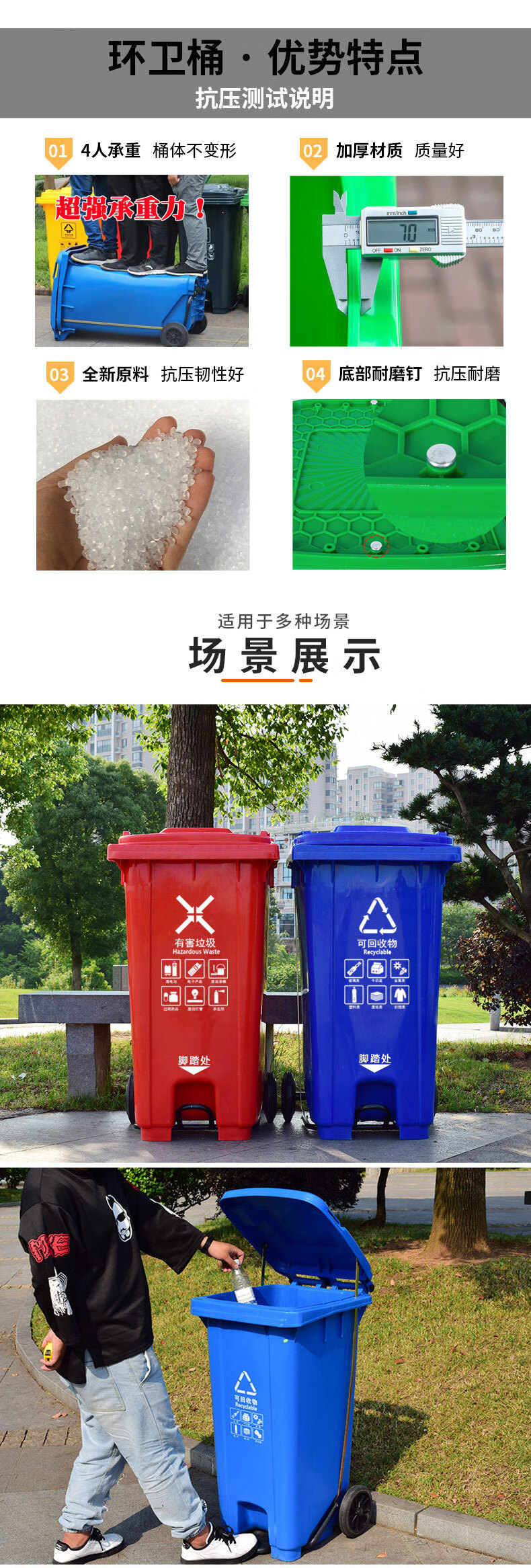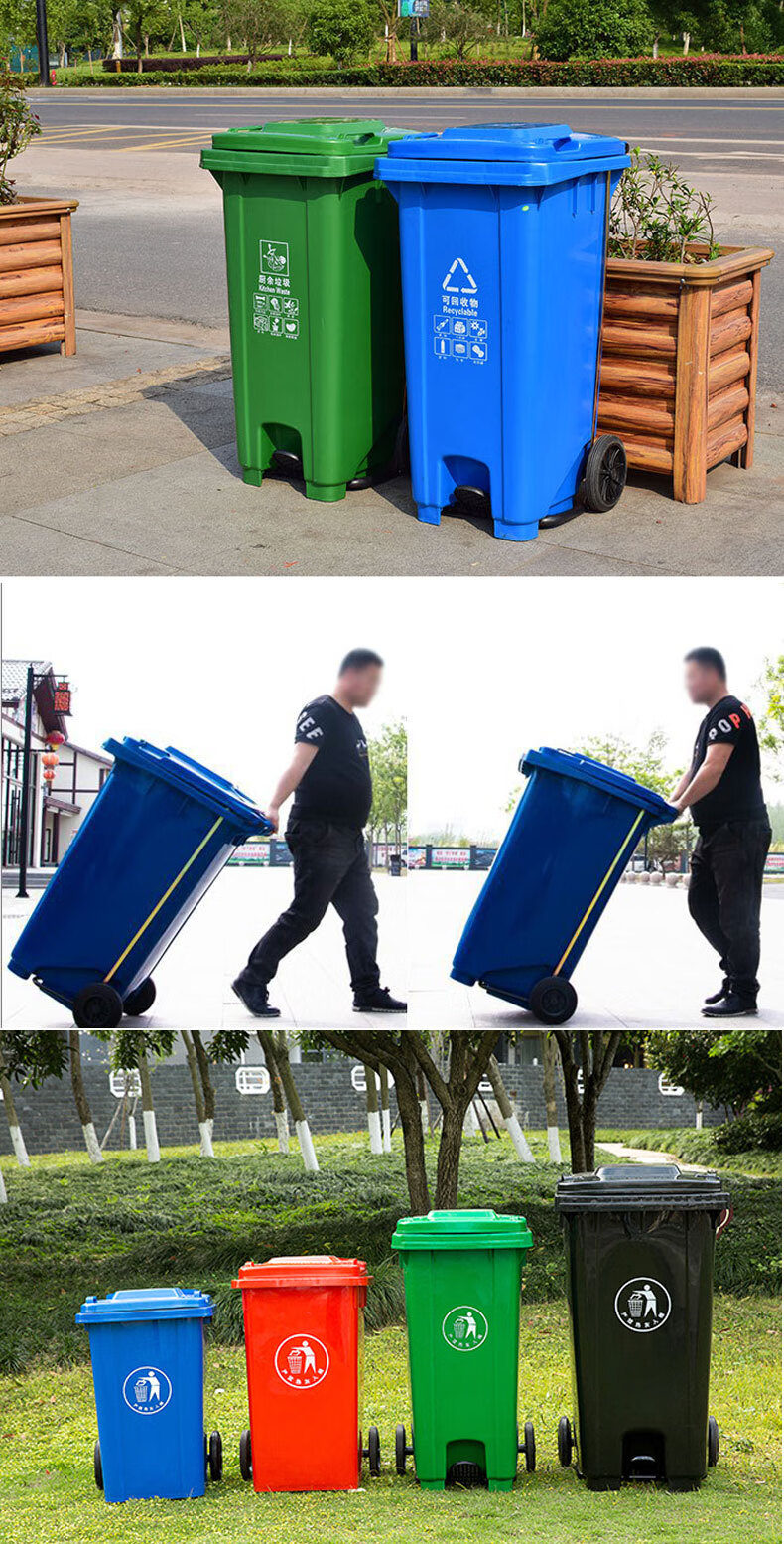 Environmental sanitation classification foot-operated trash can 120 liters outdoor large 240L foot-operated four-color plastic property trailer bucket 100L middle foot-operated extra thick-green release mark