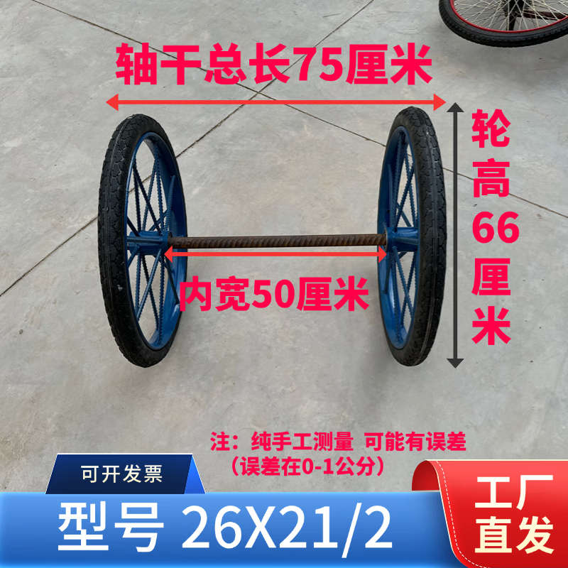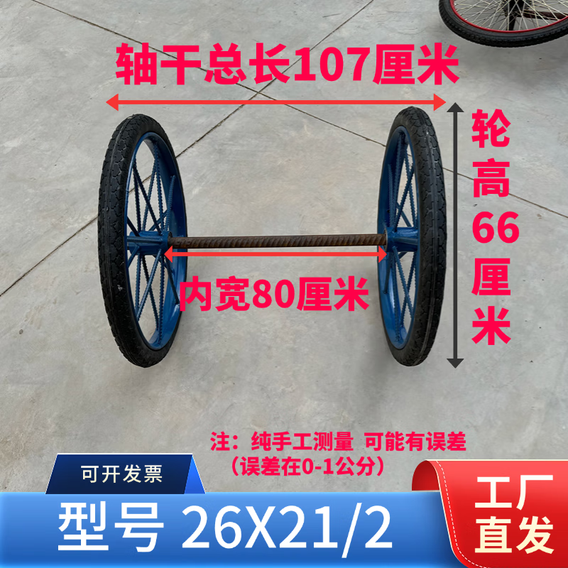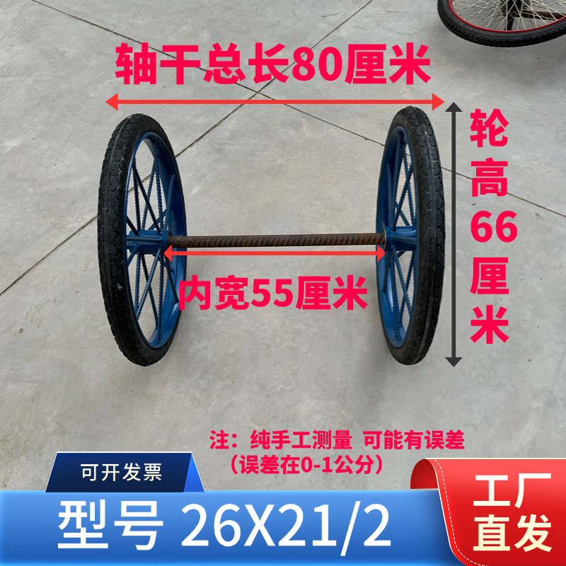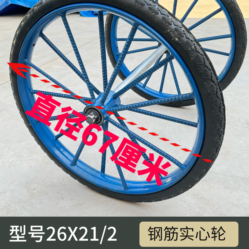 Construction site trolley bucket solid wheel 26x2 1/2 rickshaw labor cart solid wheel outer tire with steel rim 16 thick steel solid wheels 1 tire diameter 66 cm