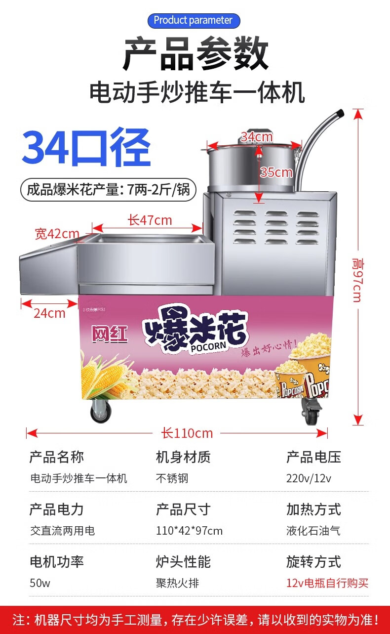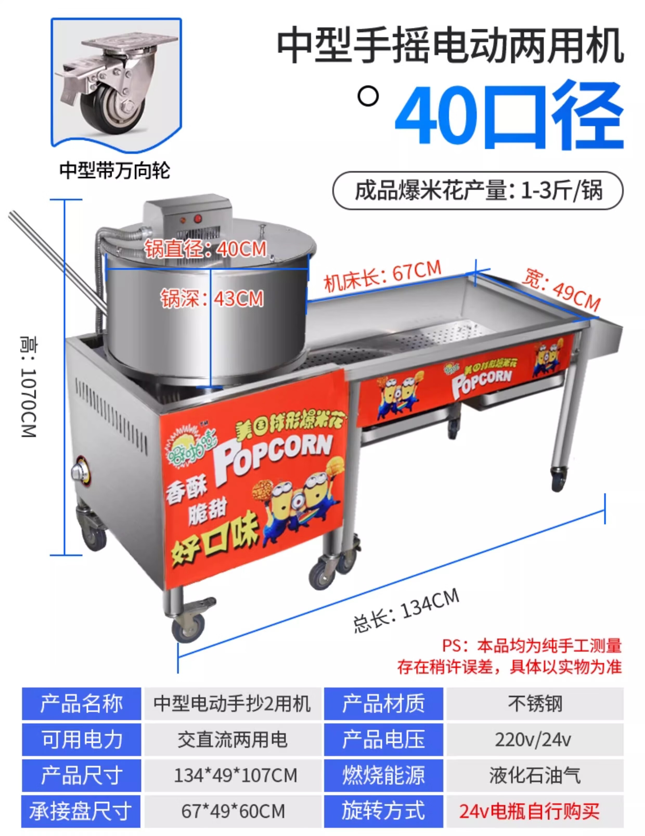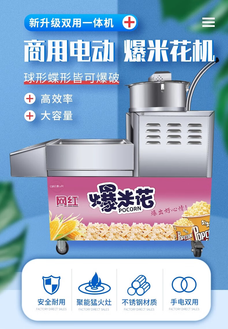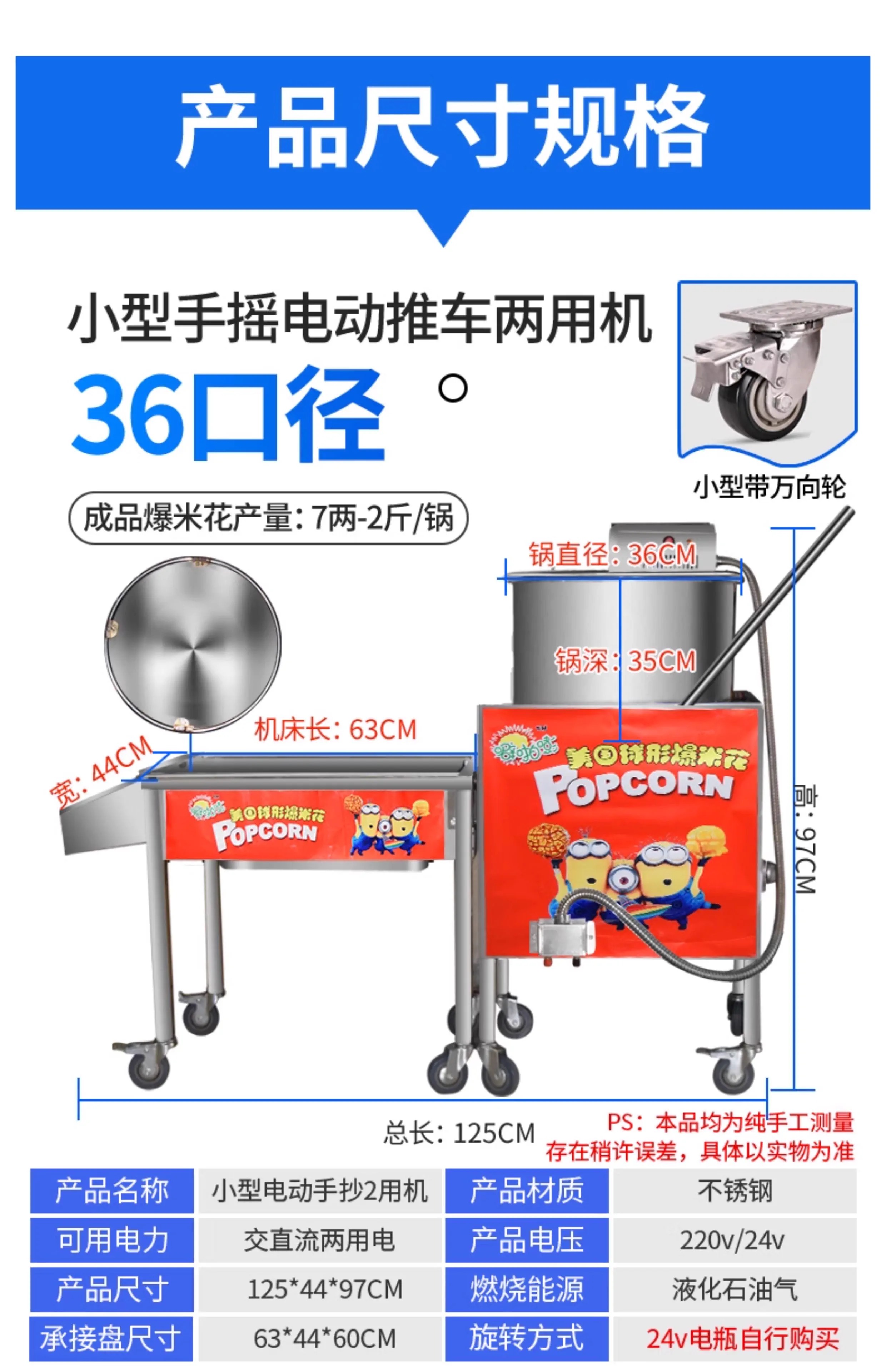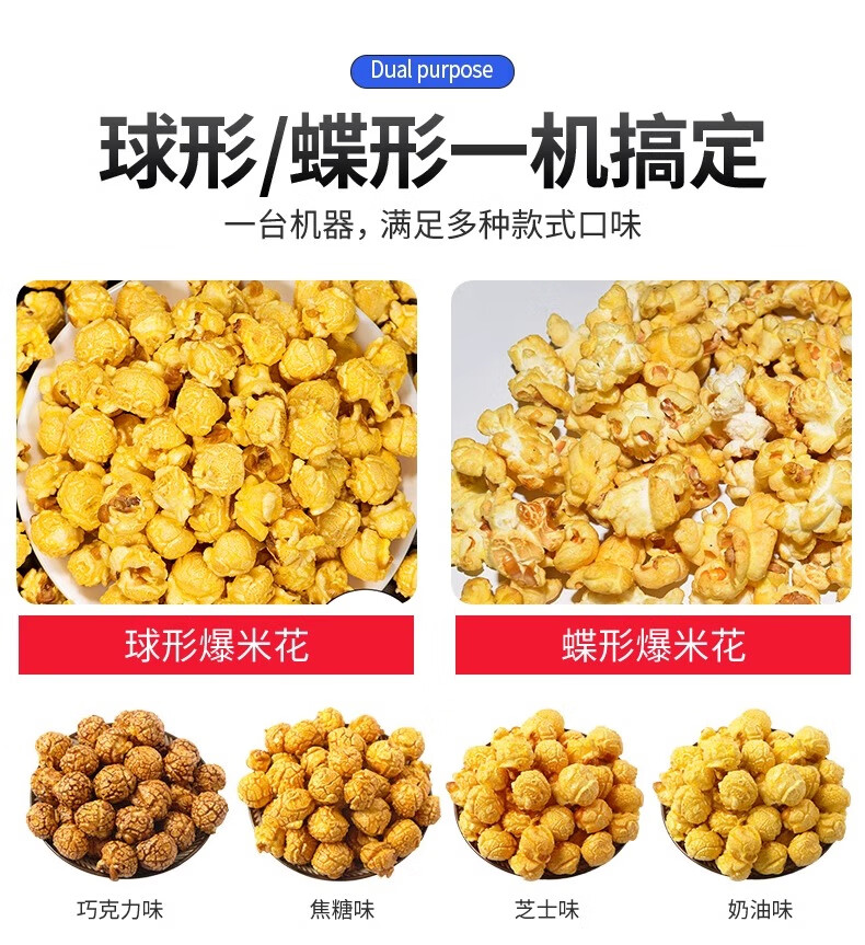 Dekbon New Commercial American Butterfly Ball Popcorn Machine Corn Popcorn Machine Cream Gas Electric Stall Electric Manual Dual-use Model Large Split Model+