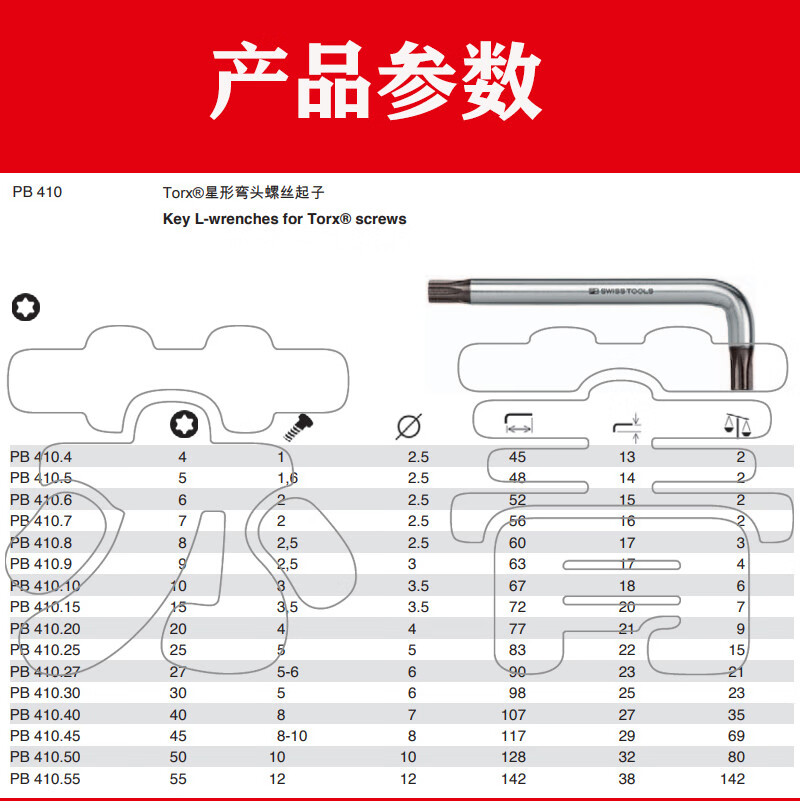 Swiss original imported PBSWISSTOOLS star-shaped plum blossom L-shaped wrench PB410 series 410.T5 (full length 48mm)