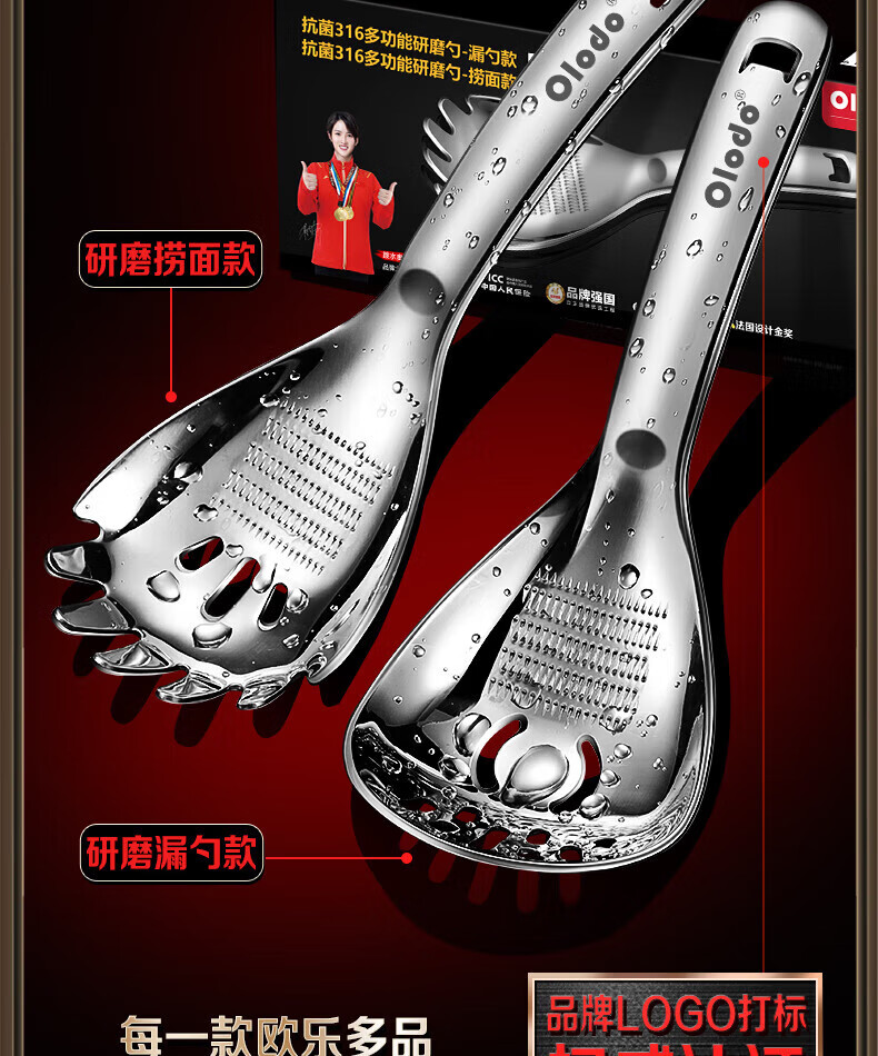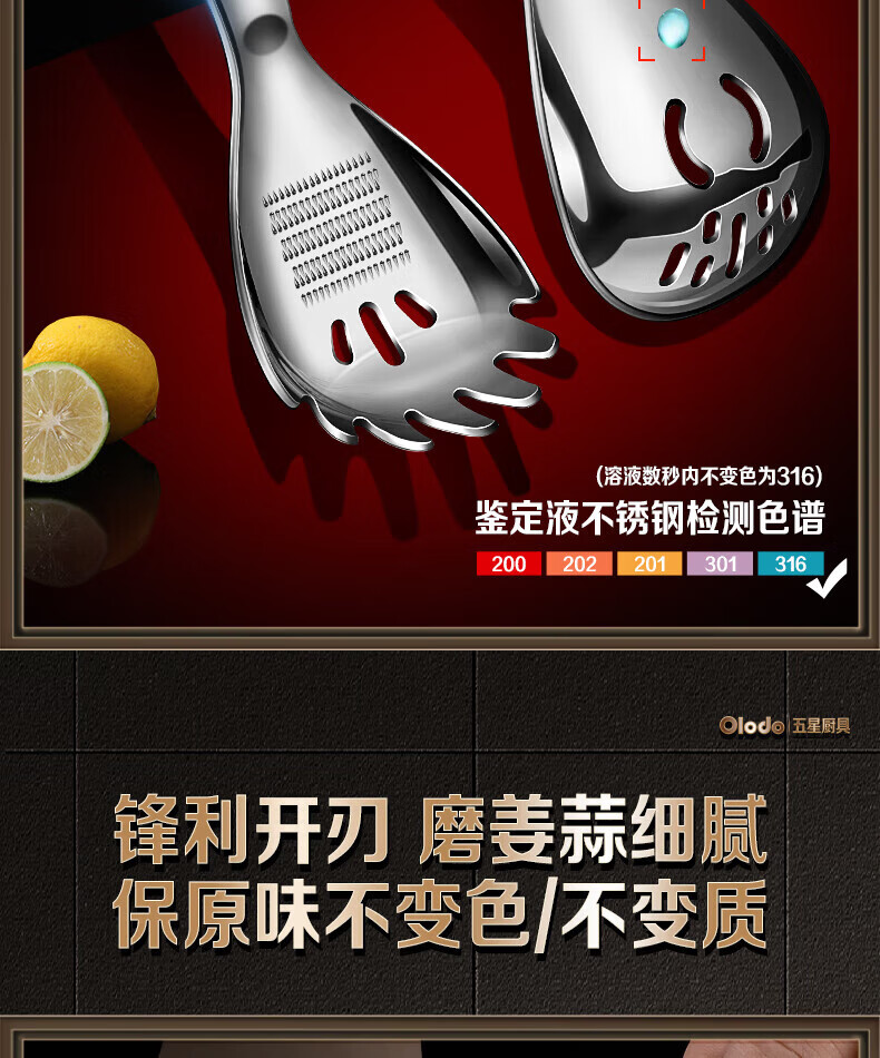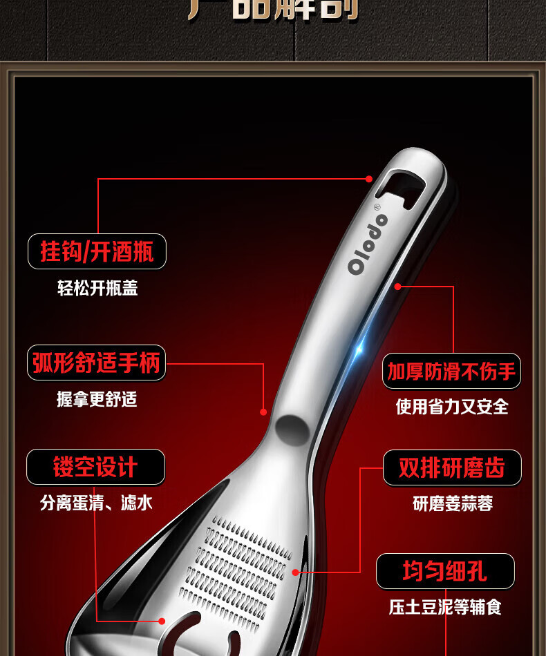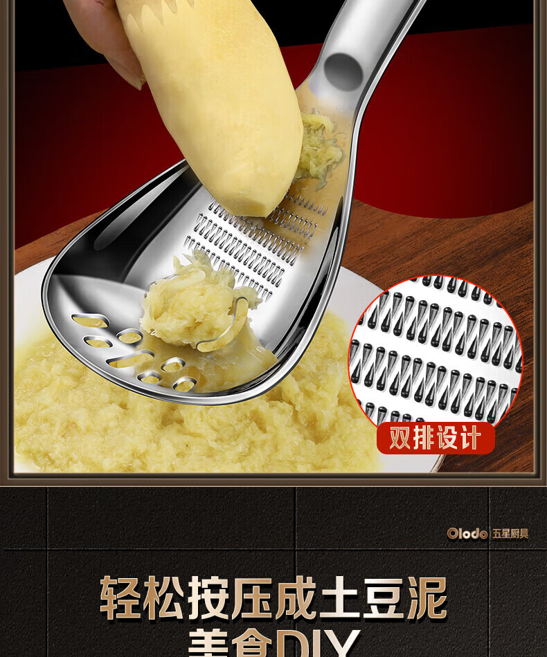 Olodo multifunctional colander 316 stainless steel ginger and garlic grater grinding ginger paste spoon supplementary food potato mashed grinding spoon 316 multifunctional grinding spoon colander style