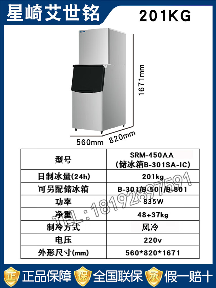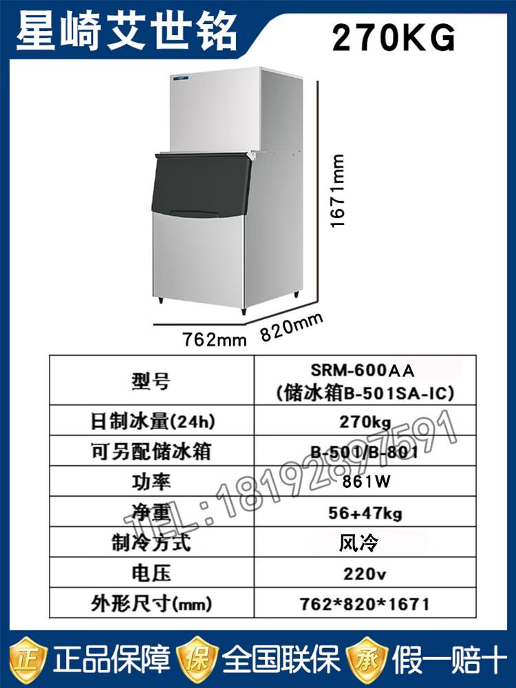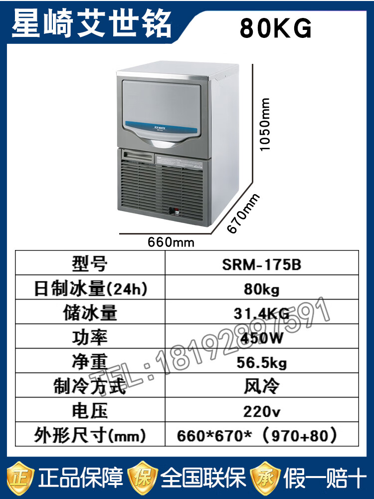 Hopoot Hoshizaki Ice Machine Commercial Small Large Fully Automatic Coffee SRM-100B/140B/175B/220WB/275WB/Milk Tea Shop Bar HOSHIZAKI SRM-100B (46KG Air Cooled) 1