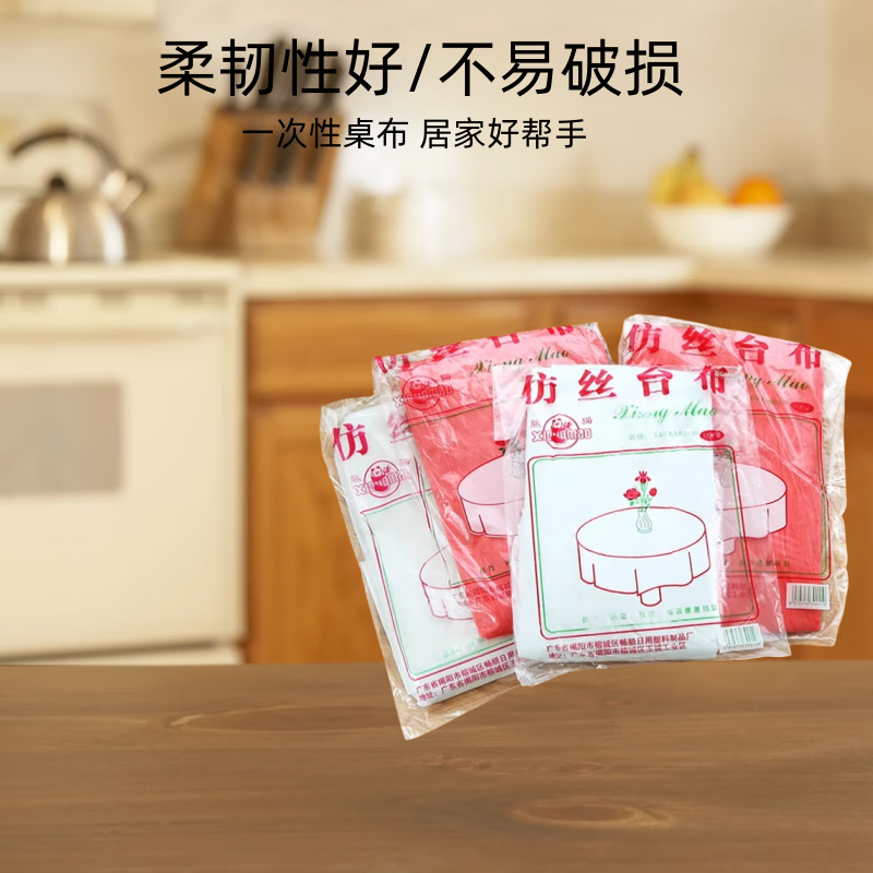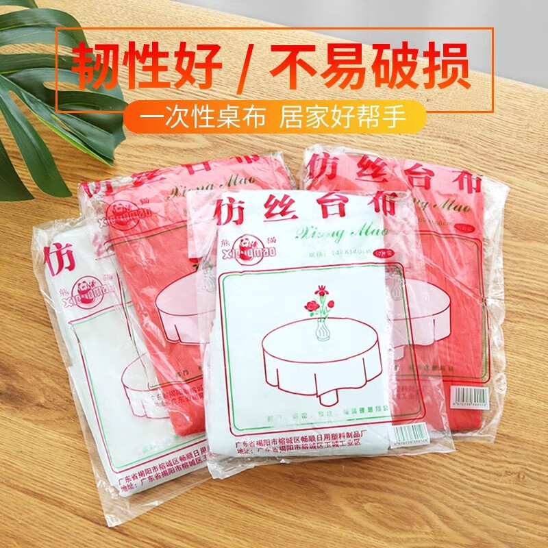 Disposable tablecloth thickened tablecloth plastic transparent round table home rectangular hotel red white random 10 pieces 160cm*160cm