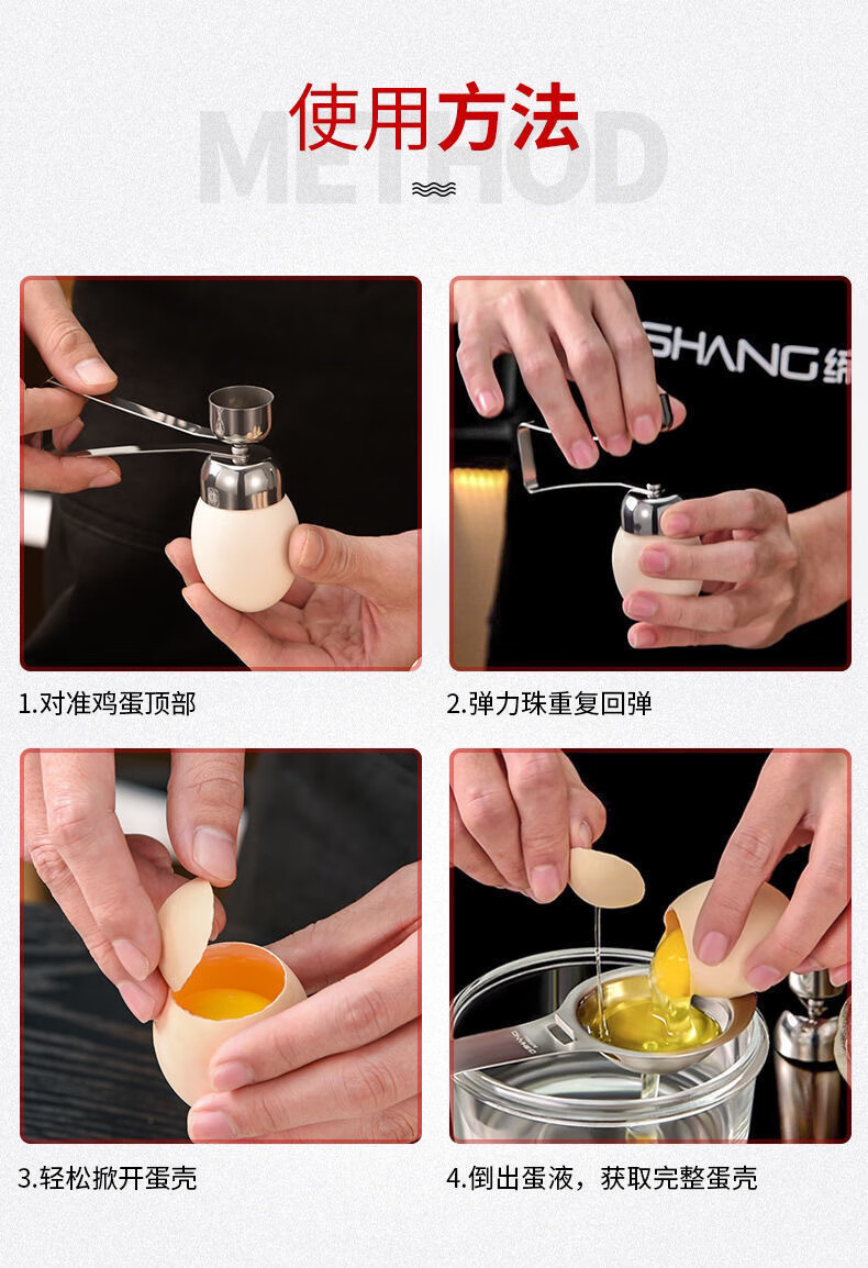 Enshousu 304 stainless steel egg-beating artifact egg opener to open eggs, beat eggs, glutinous rice eggs, beat egg shells, and break egg shells. Single head 2.5cm diameter x 1 piece