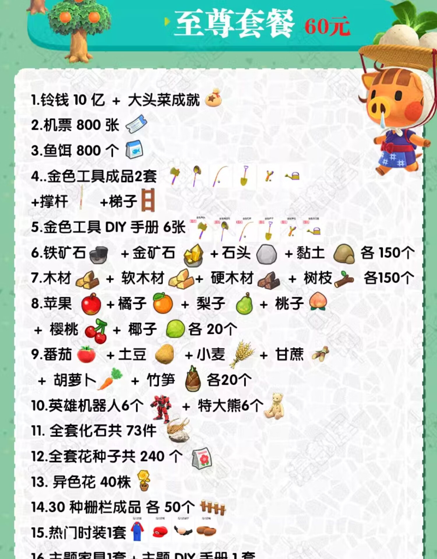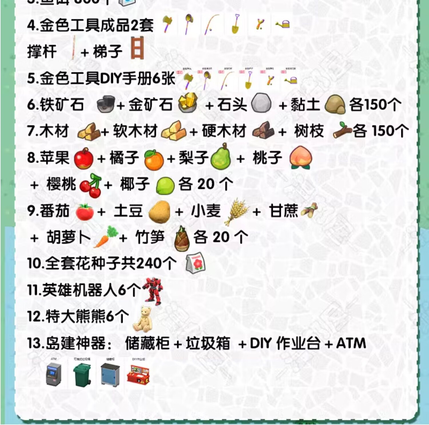 Animal Crossing: Friends, Animal Crossing, Bell Money, Tickets, Fishing Bait Materials, Fruit DIY Manual, Drawings, Materials, Furniture, Fruit Bag Delivery