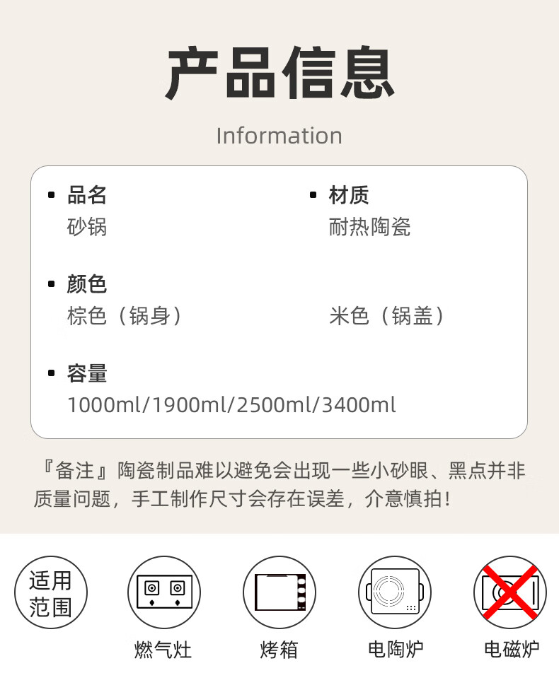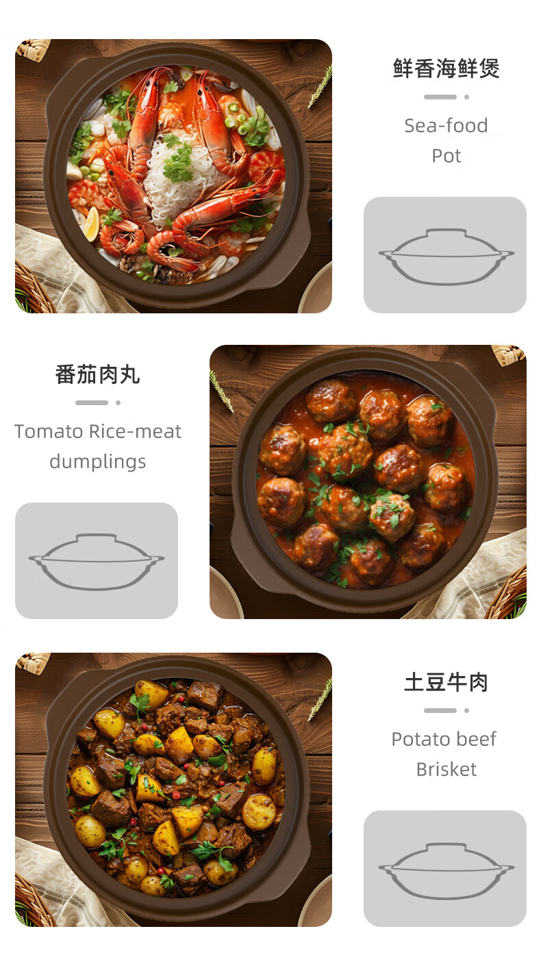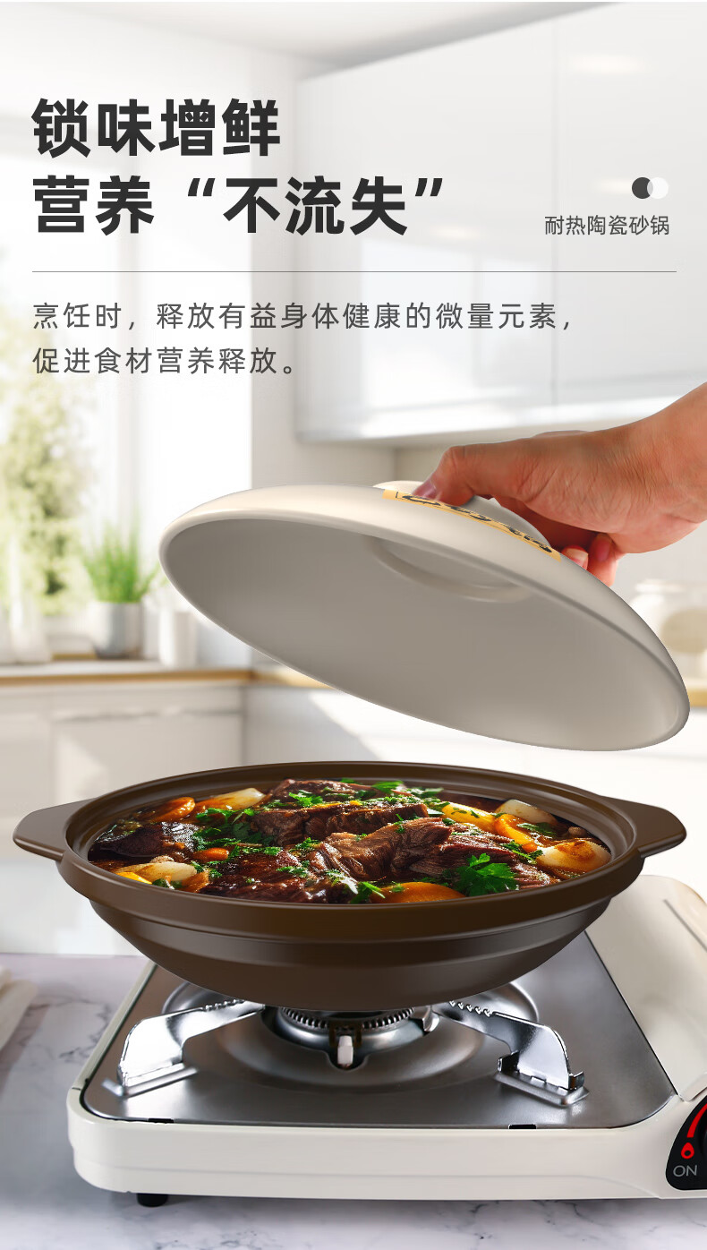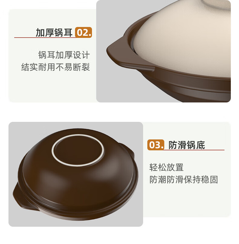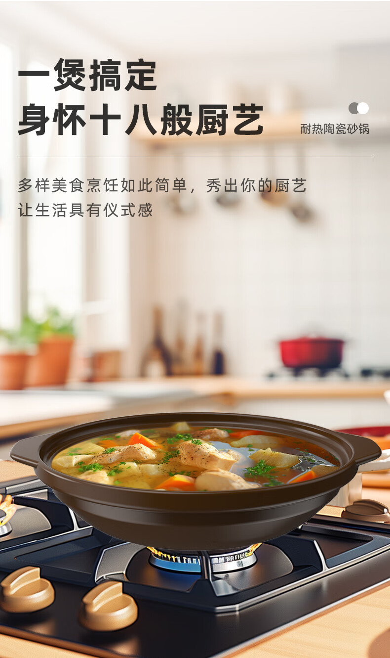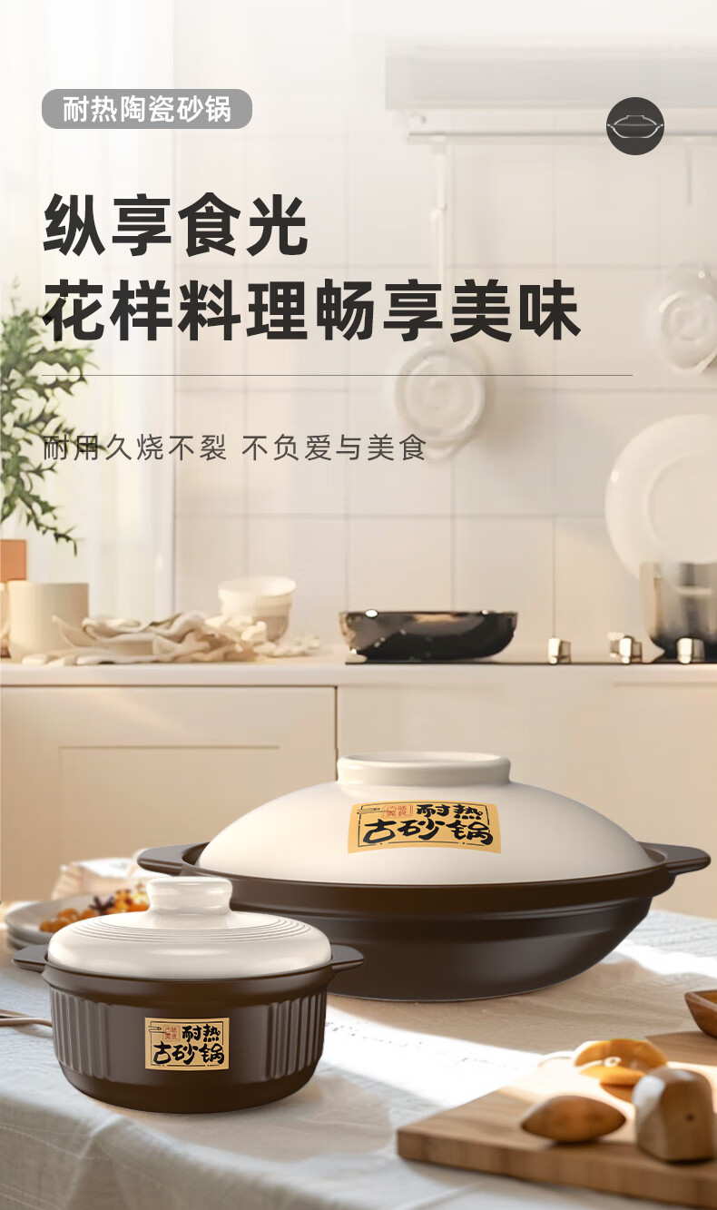 Kangshu Kangshu dry-roasted pot combination household commercial cooking pot high-temperature resistant ceramic casserole anti-cracking and heat-resistant shallow pot stew pot Kangshu heat-resistant ancient pot for 2-4 people 1900ml