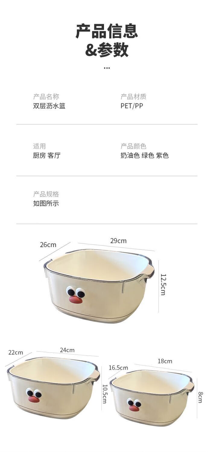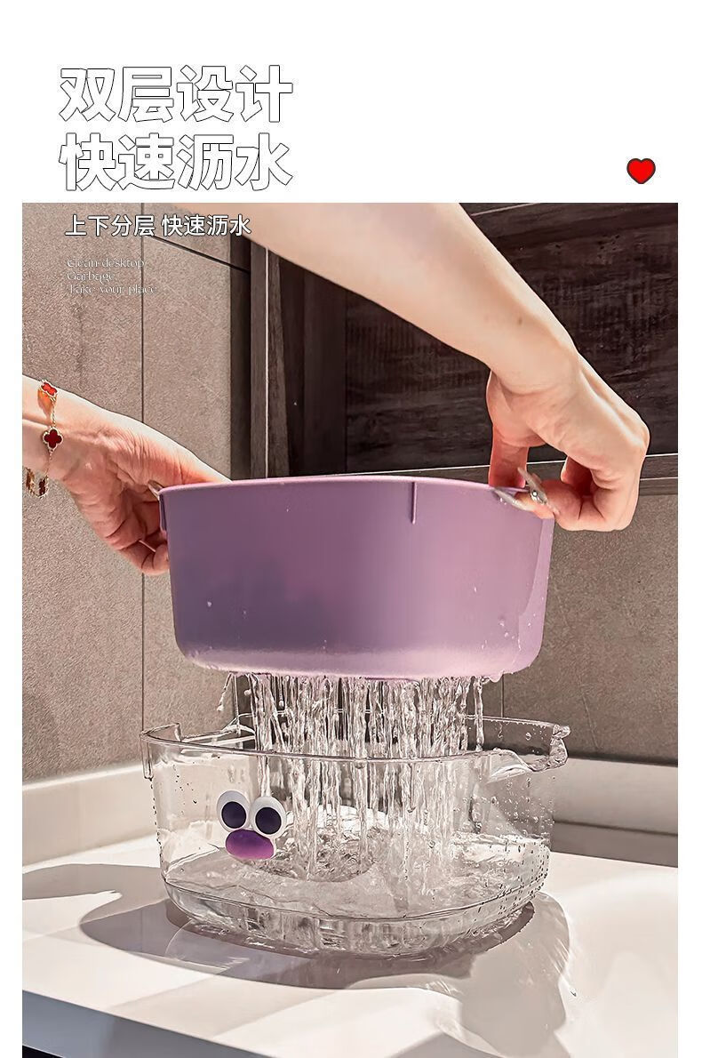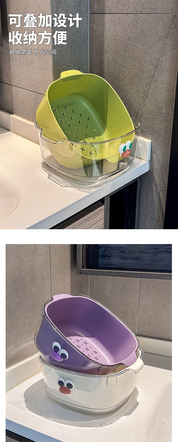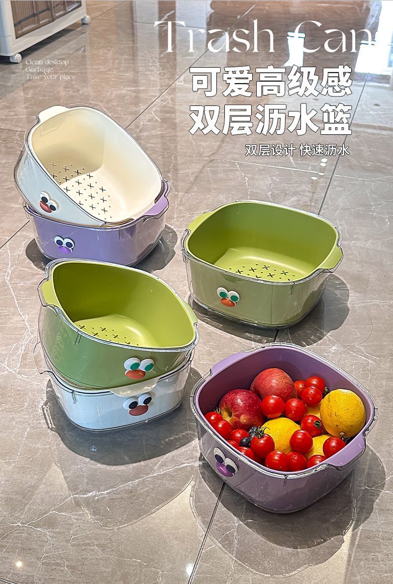 Yunmian double layer new dopamine drain basket cute household fruit and vegetable cleaning basket two-in-one thickened vegetable washing basket quality upgrade marshmallow-white with cute stickers-double layer 1 piece set extra large instant discount 12