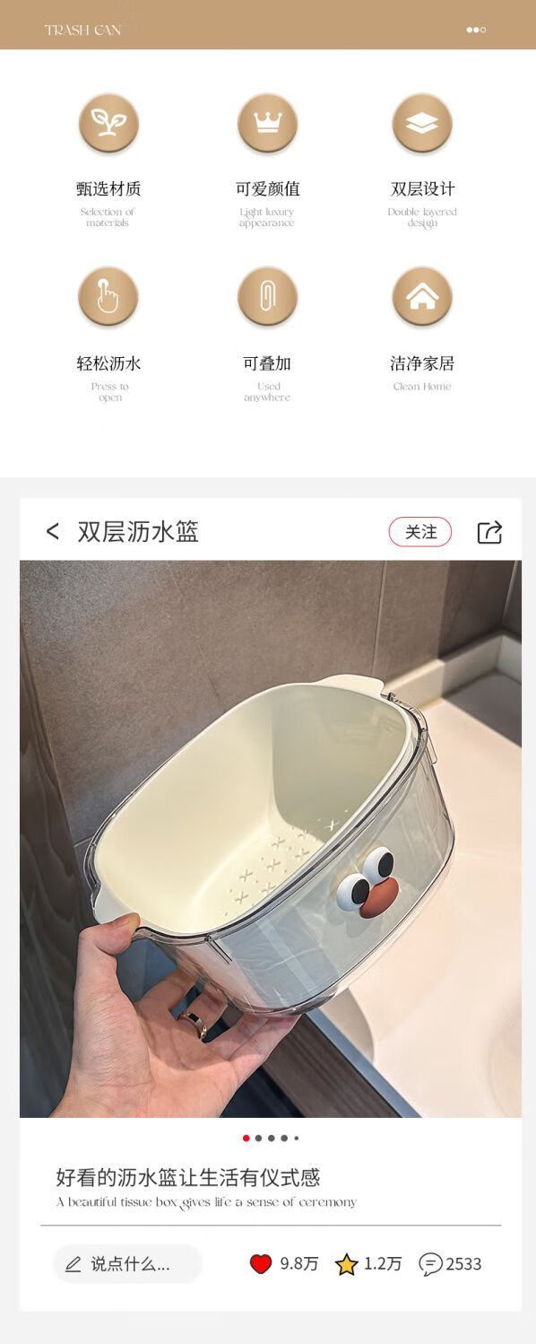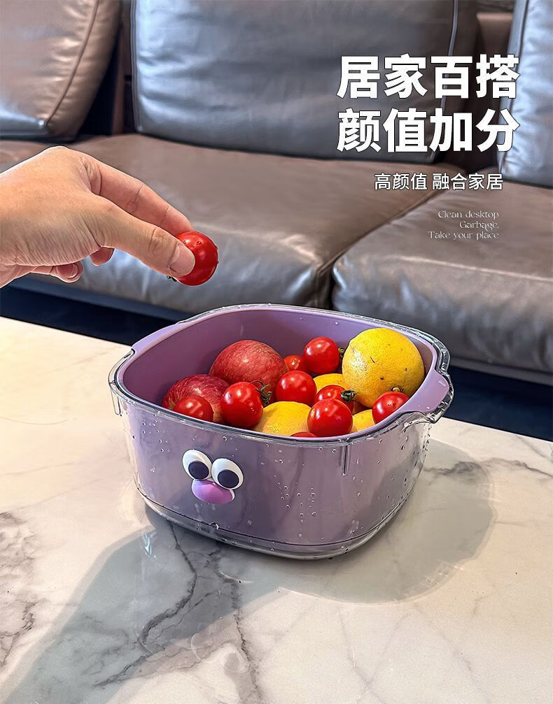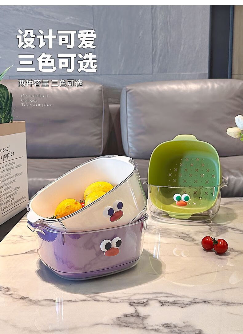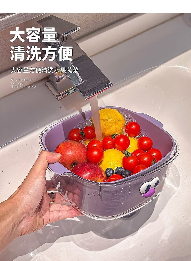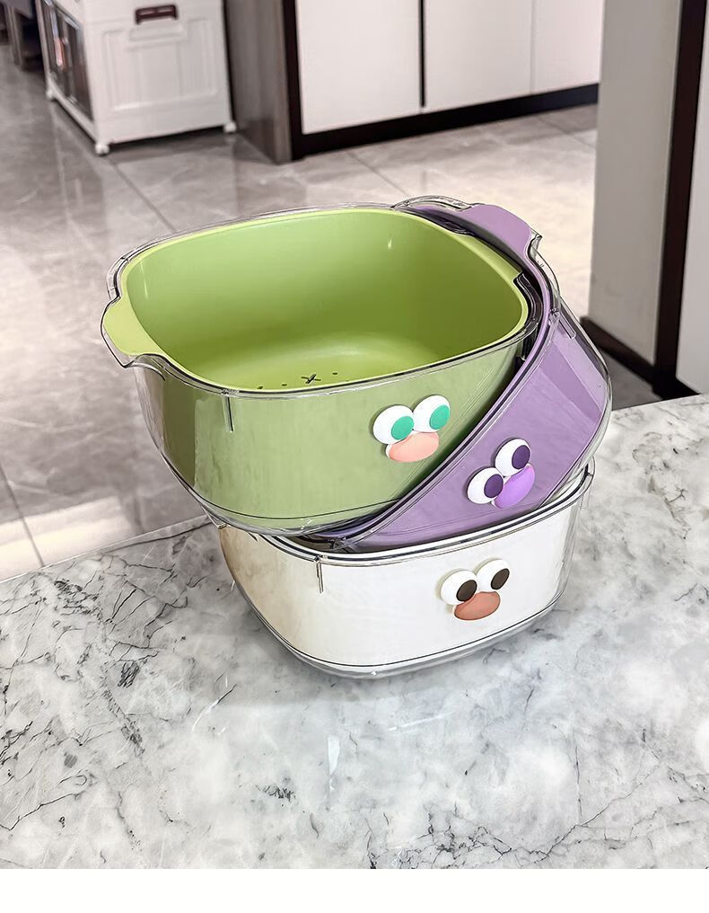 Yunmian double layer new dopamine drain basket cute household fruit and vegetable cleaning basket two-in-one thickened vegetable washing basket quality upgrade marshmallow-white with cute stickers-double layer 1 piece set extra large instant discount 12