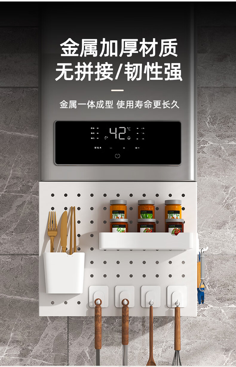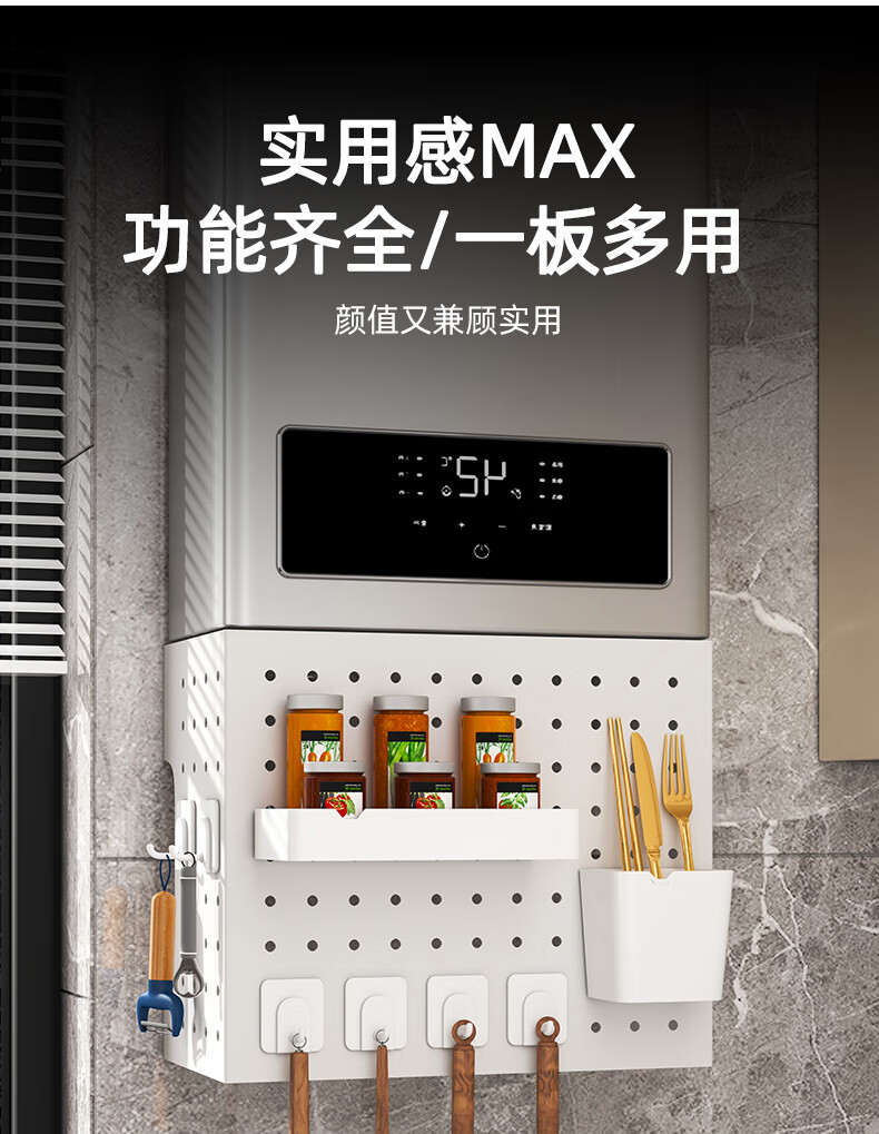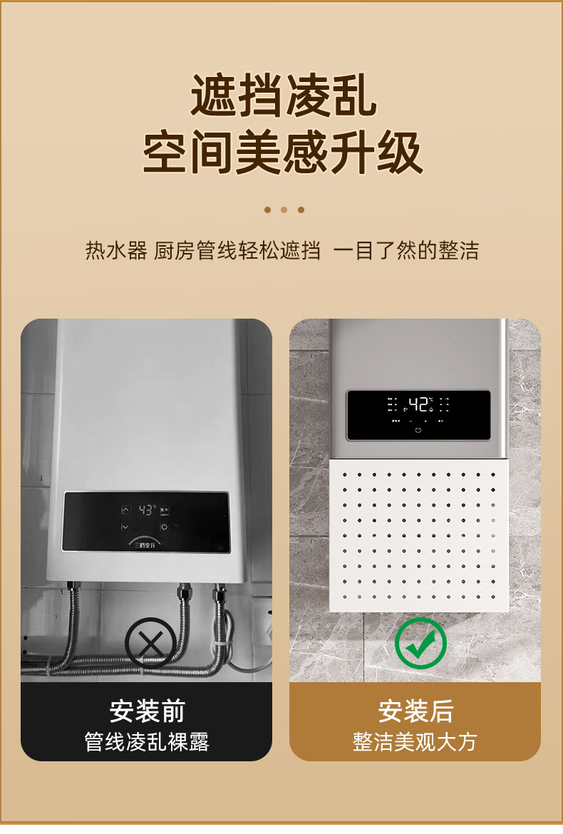 Moshen kitchen perforated plate storage rack water heater shield gas pipe decorative wall-mounted storage rack boiler stove cover 35 width 30 height 30 depth 15 (free hook * 4)