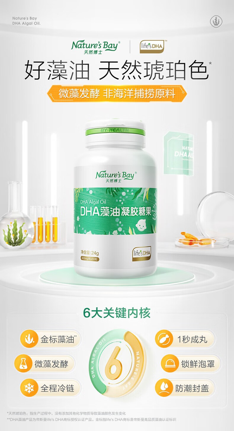 Natural Dr. DHA Algae Oil Gold Label Little Amber T Oil for Infants and Young Children to Assist Improve DHA Algae Oil DHA Nutritional Supplement 1 Box * 60 Capsules Source Code Source Box - Anti-Counterfeiting Checkable