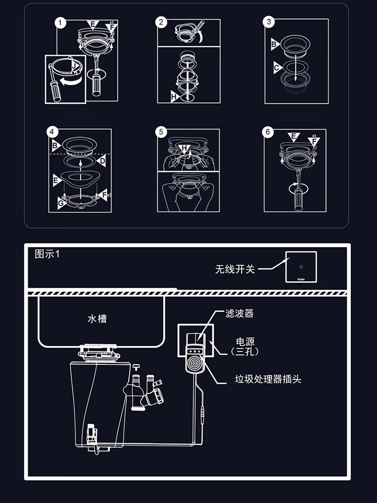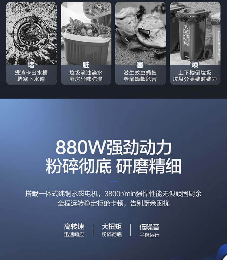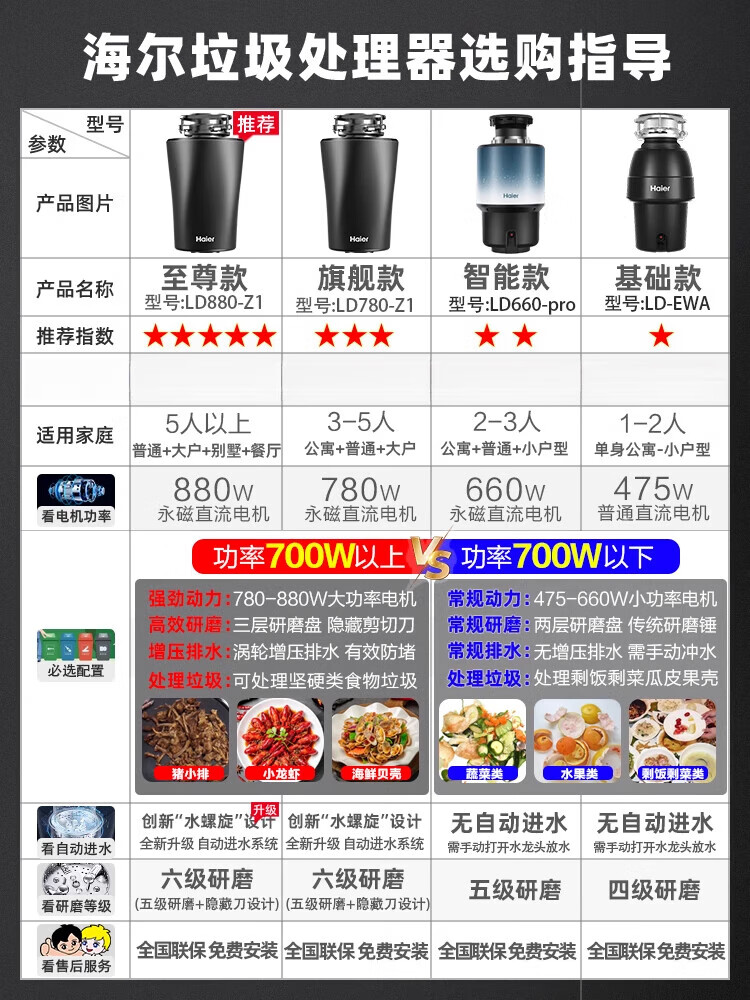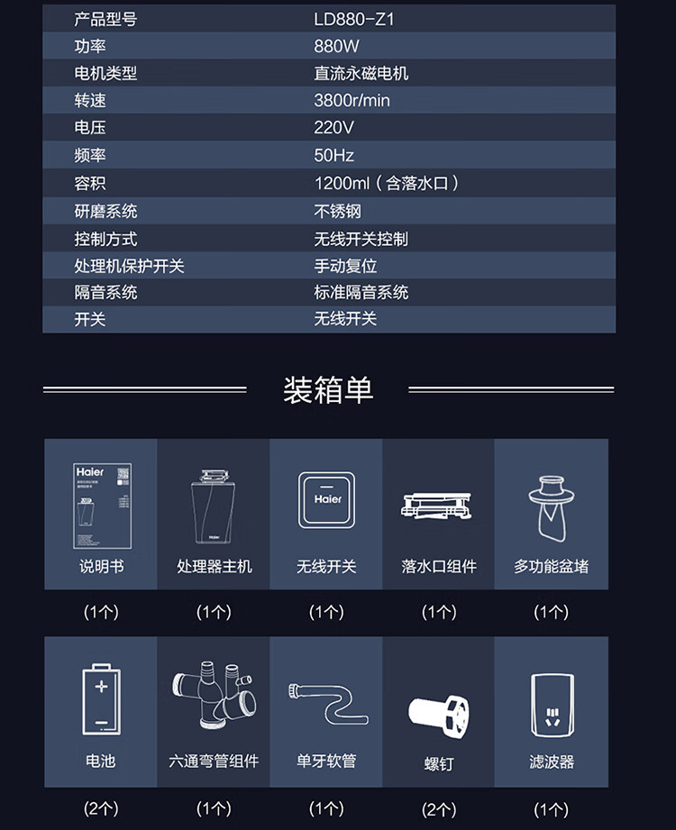 Haier kitchen waste disposer household kitchen food grinder automatic wet waste classification model LD880-Z1