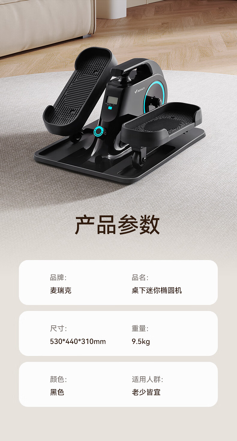 MERACH Mini Elliptical Machine Home Fitness Small Elliptical Machine Multifunctional Silent In-situ Walking Stepper Dark Night Black Super Silent + Multi-position Magnetic Adjustment +