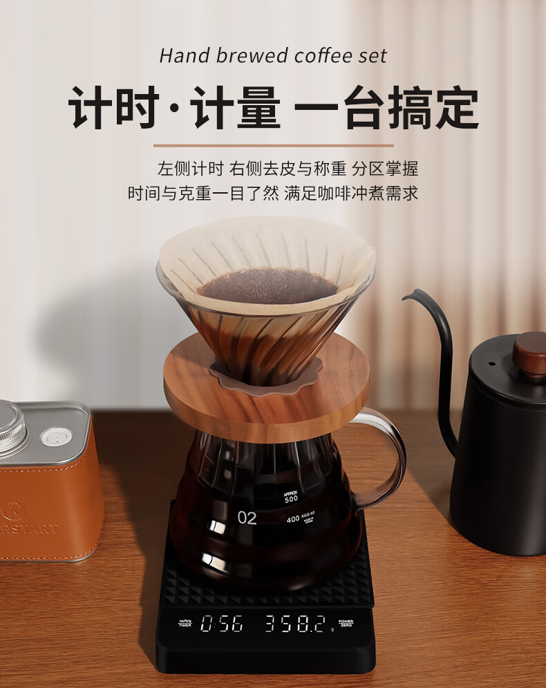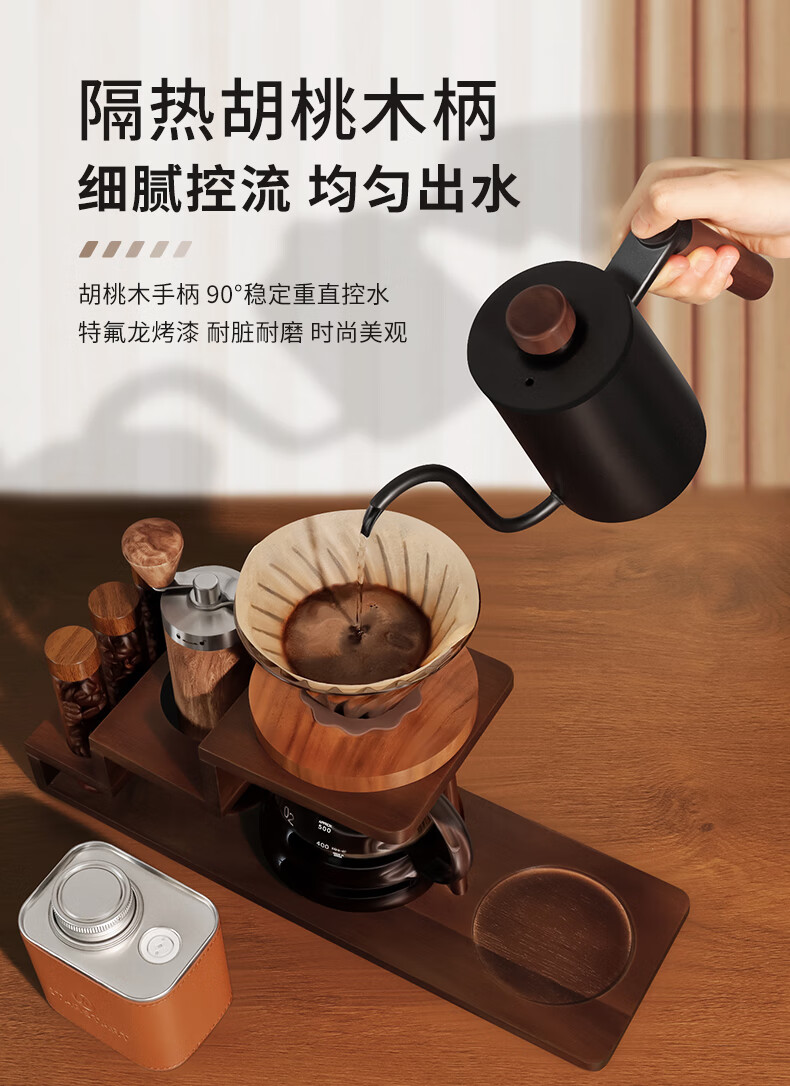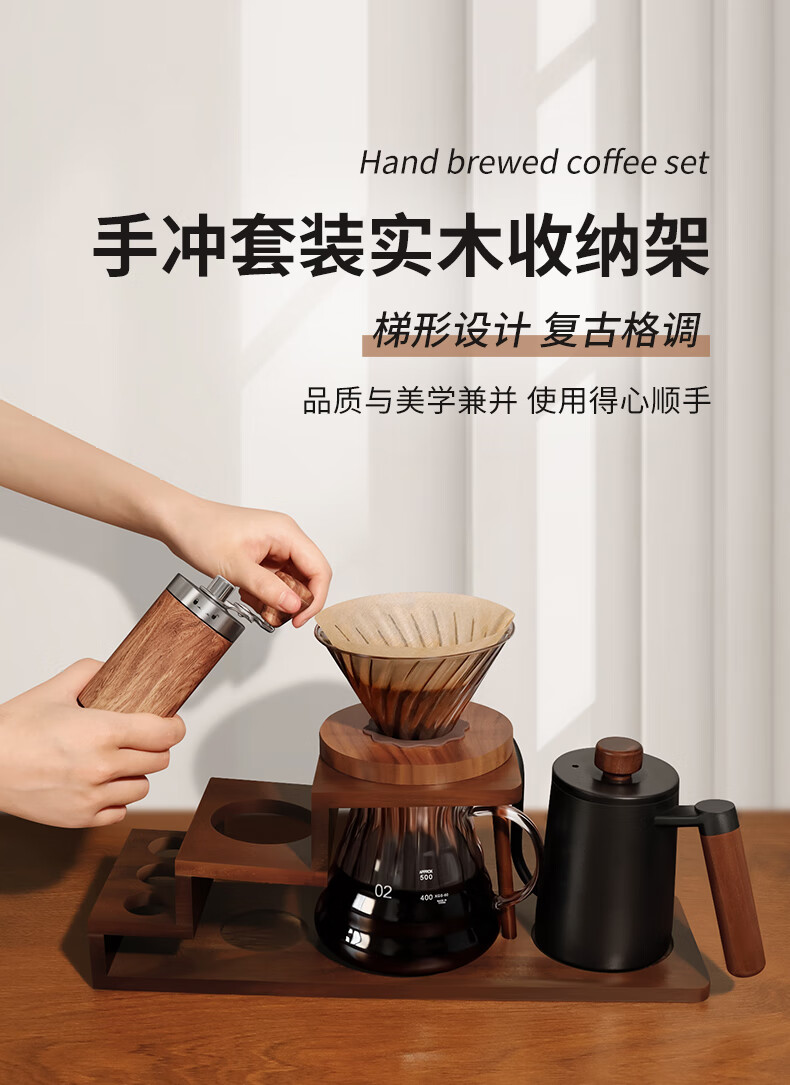 STAR-STARTHand-pour coffee pot setHand-grinder coffee machineHand-crank coffee storage rackGift box wooden rack setHand-pour gift boxHand-pour coffee set-Hand-pour pot blackEleven-piece set