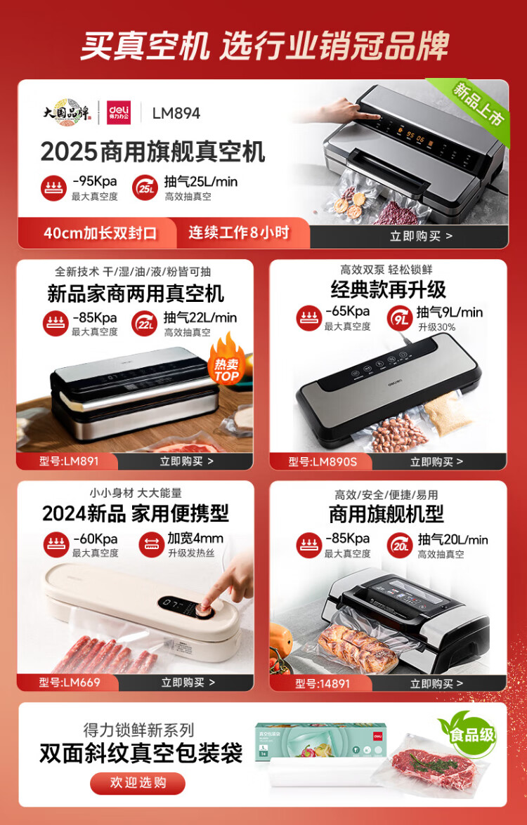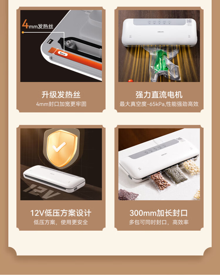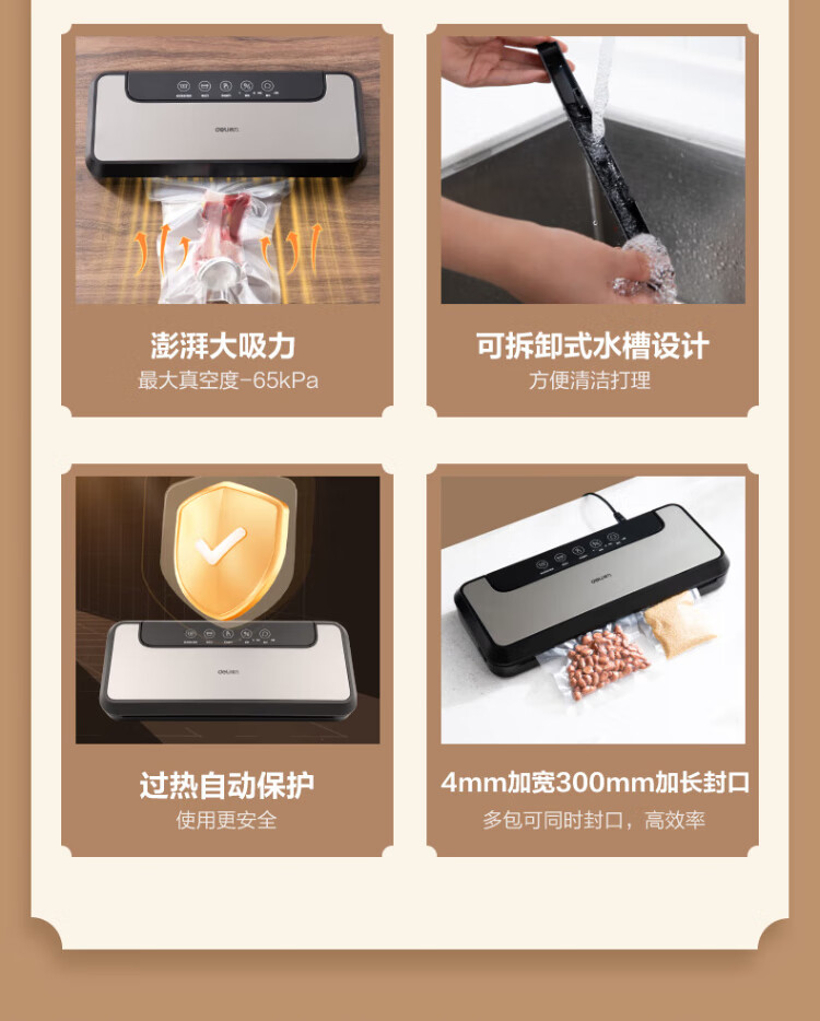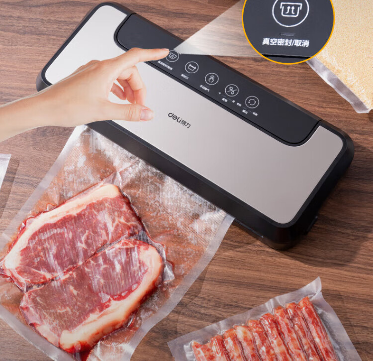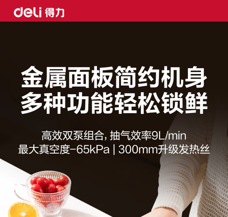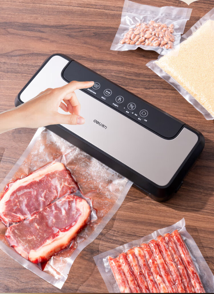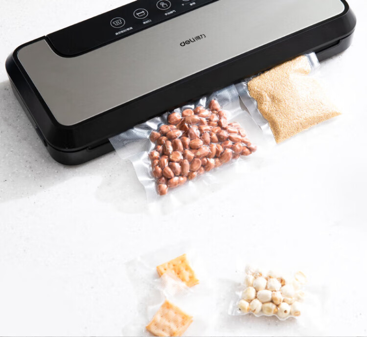 Deli vacuum machine sealing machine household vacuum machine sealing all-in-one machine plastic sealing machine for wet and dry use of food bags fully automatic vacuum compression sealing machine sealing machine household double pump upgrade double pump large suction/widened sealing