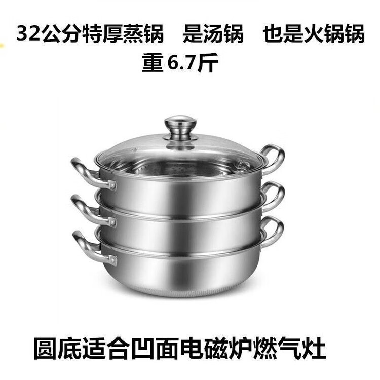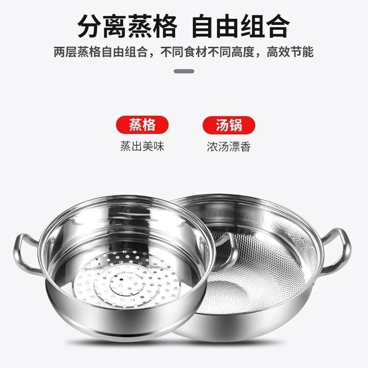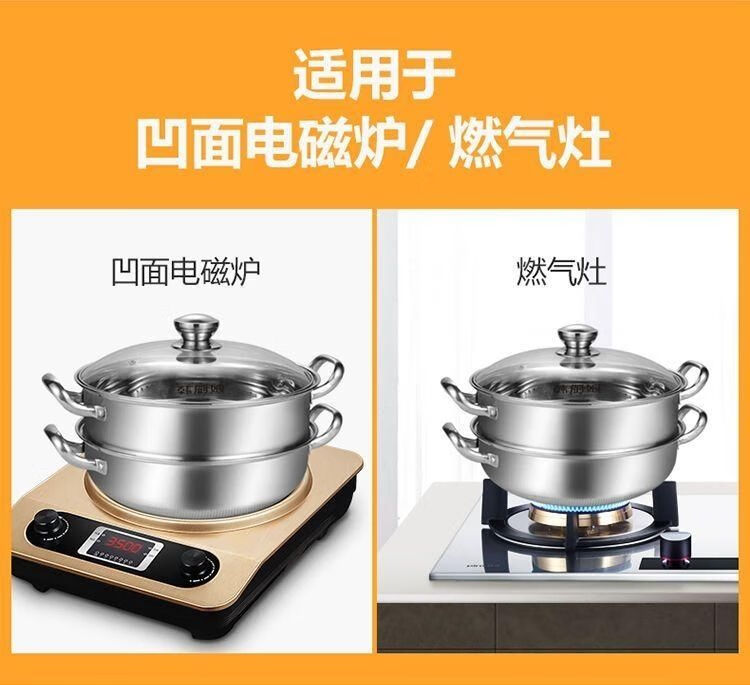 Concave induction cooker special steamer special thickened 32 household hot pot multi-functional soup stainless steel double layer two-story home round bottom two-layer thickened pot 11 cm concave 32cm