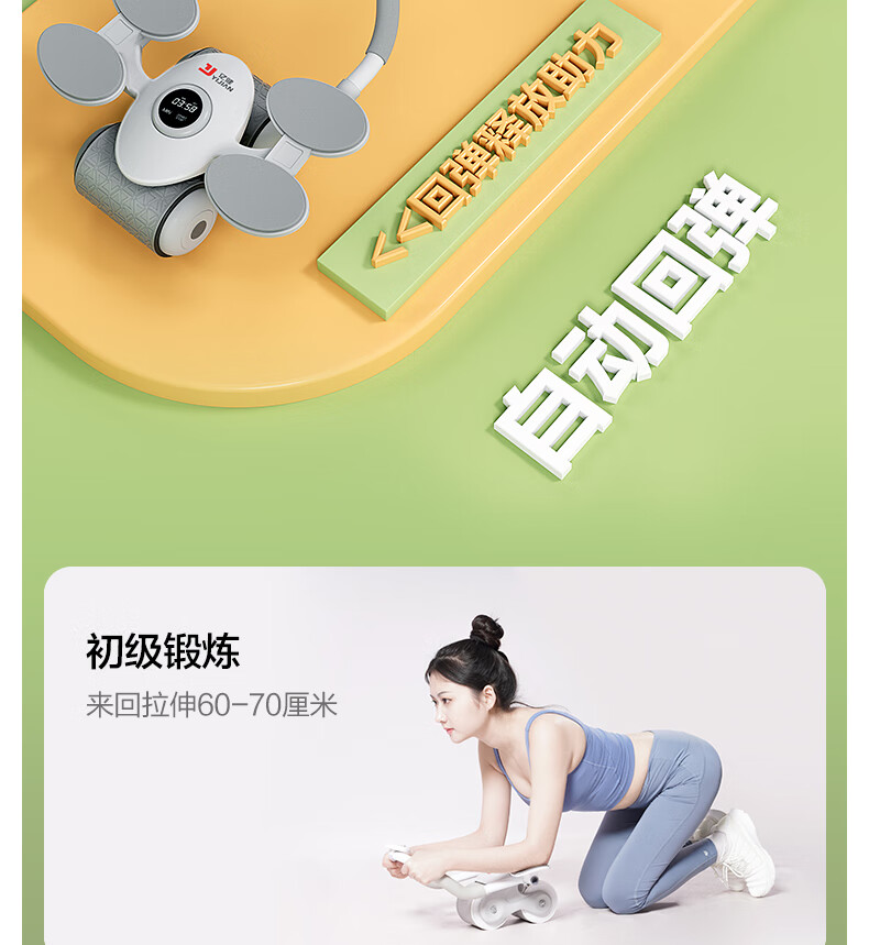 YIJIAN Abdominal Wheel Automatic Rebound Abdominal Rolling Wheel Men and Women Home Exercise Abdominal Muscle Magic Elbow Support Fitness Equipment Elbow Support Timed Model-Green Automatic Rebound, Professional Customized Kneeling Mat, Bring Your Own Mobile Phone