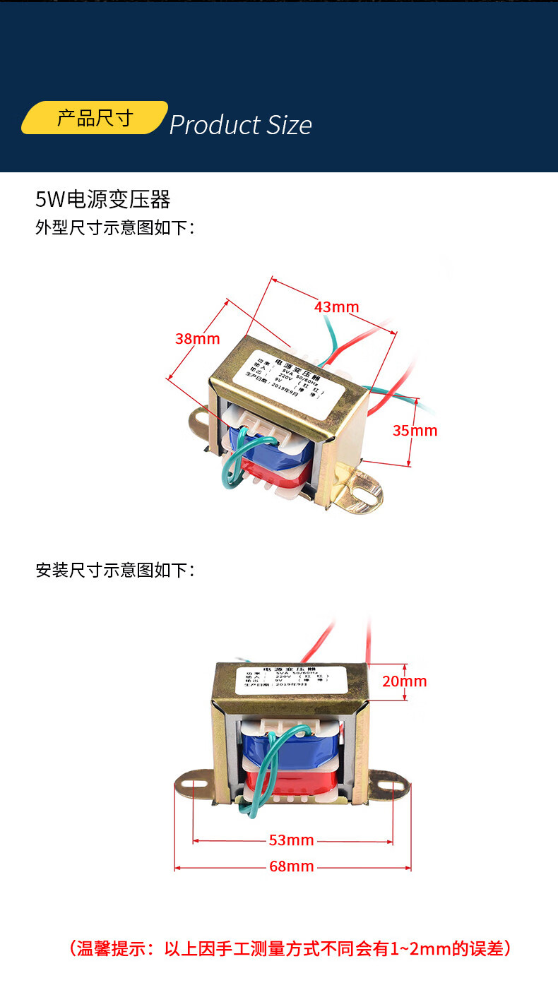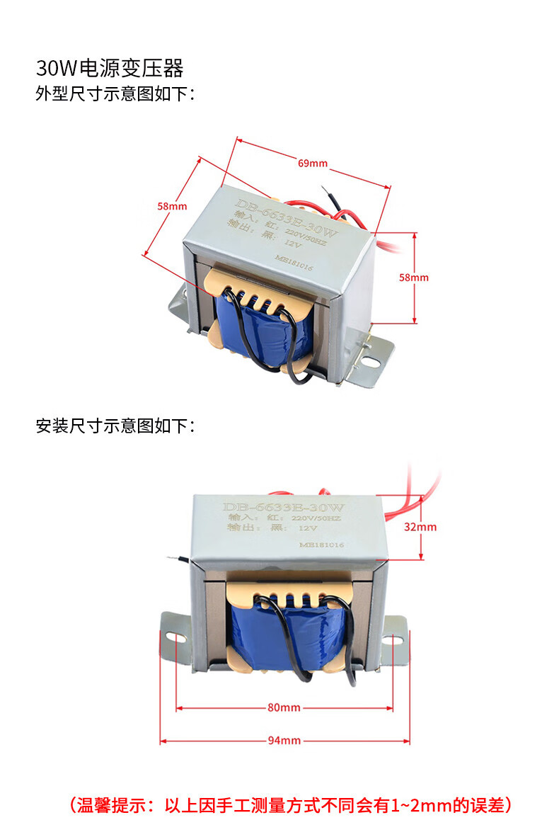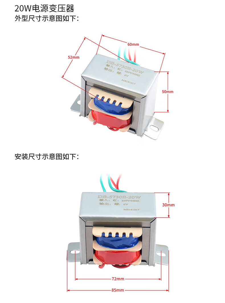 Power transformer 3W5W10W20W30W single-phase AC 220V to 9V6V12V15V18V24V single/double 5W single 15V