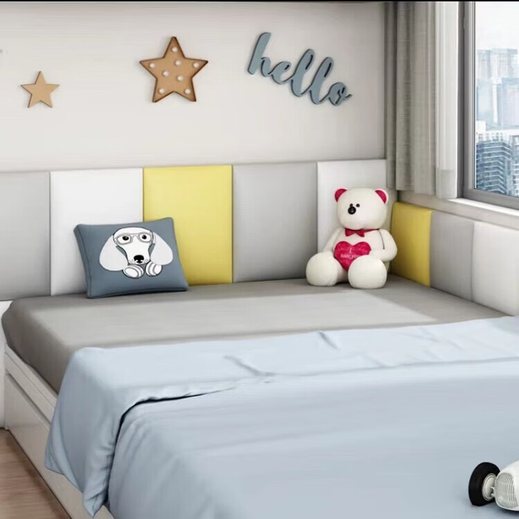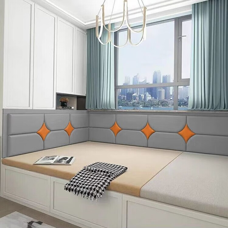 Shantou Lincun wall-mounted soft-packed bed side tatami enclosing Kang enclosing children's anti-collision enclosing seat cushion headboard background sticker self-adhesive style one gray one piece 0.1/square one piece do not take pictures Send samples