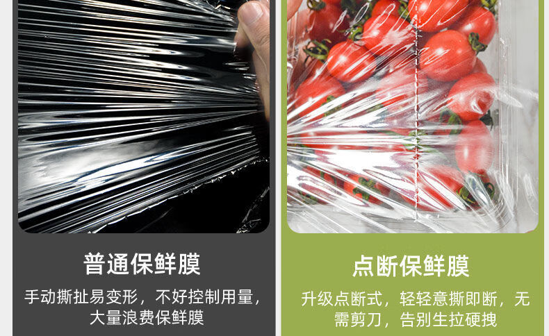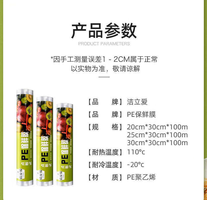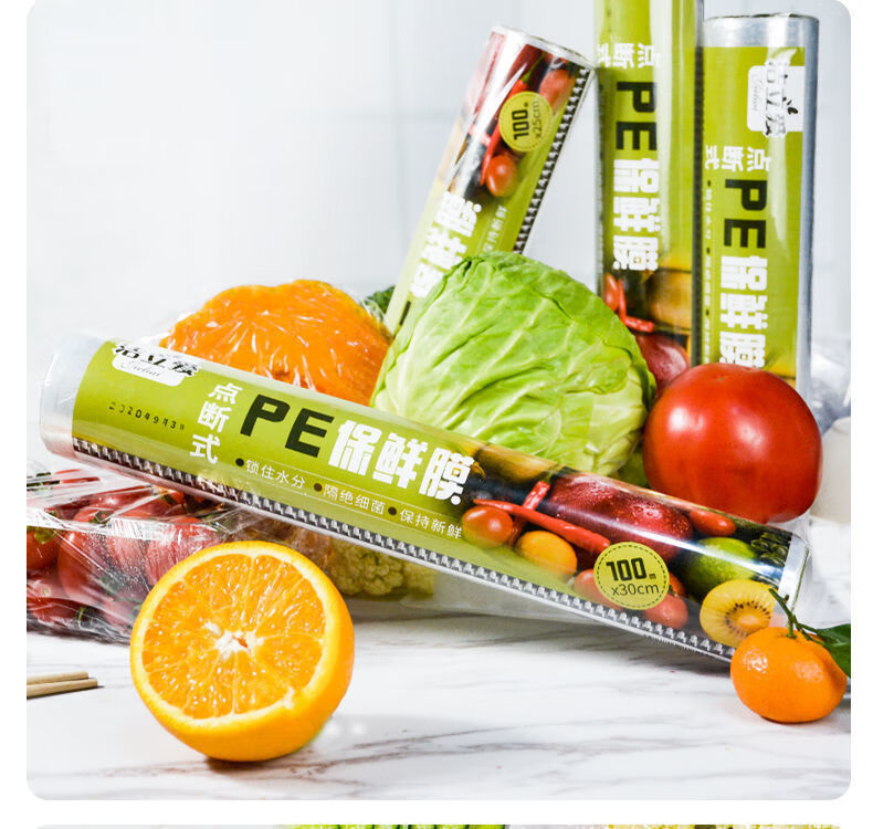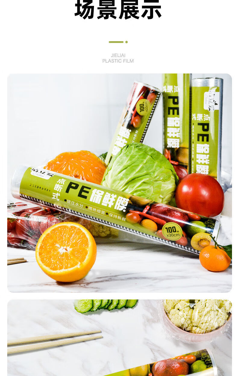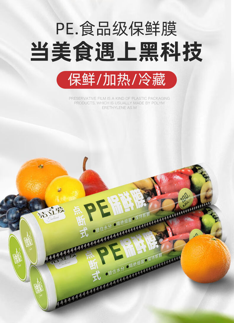 Enshousu pe cling film large roll household economical food special kitchen point-break type high temperature resistant commercial point-break medium length 25*25 width total 333 sheets household point-break type plastic wrap enlarged