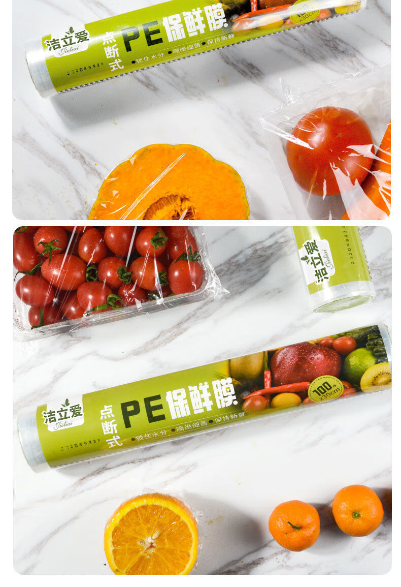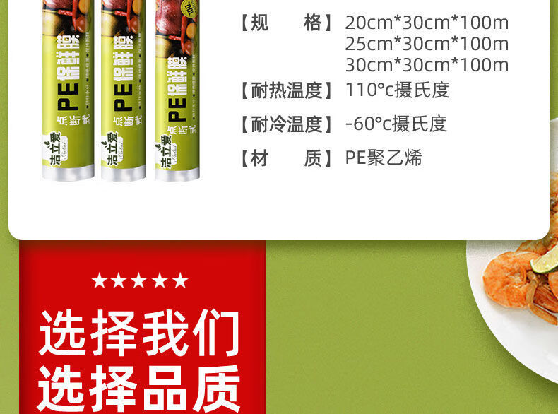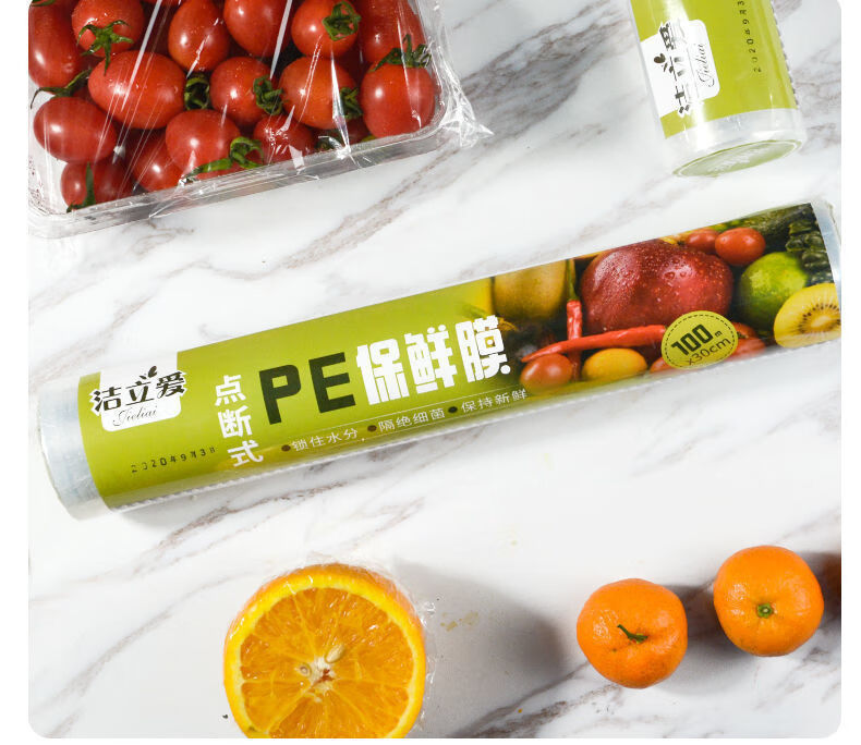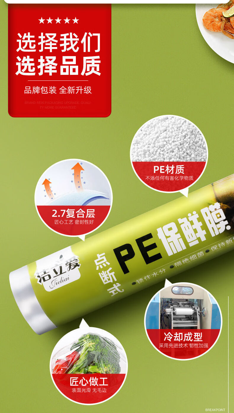 Enshousu pe cling film large roll household economical food special kitchen point-break type high temperature resistant commercial point-break medium length 25*25 width total 333 sheets household point-break type plastic wrap enlarged