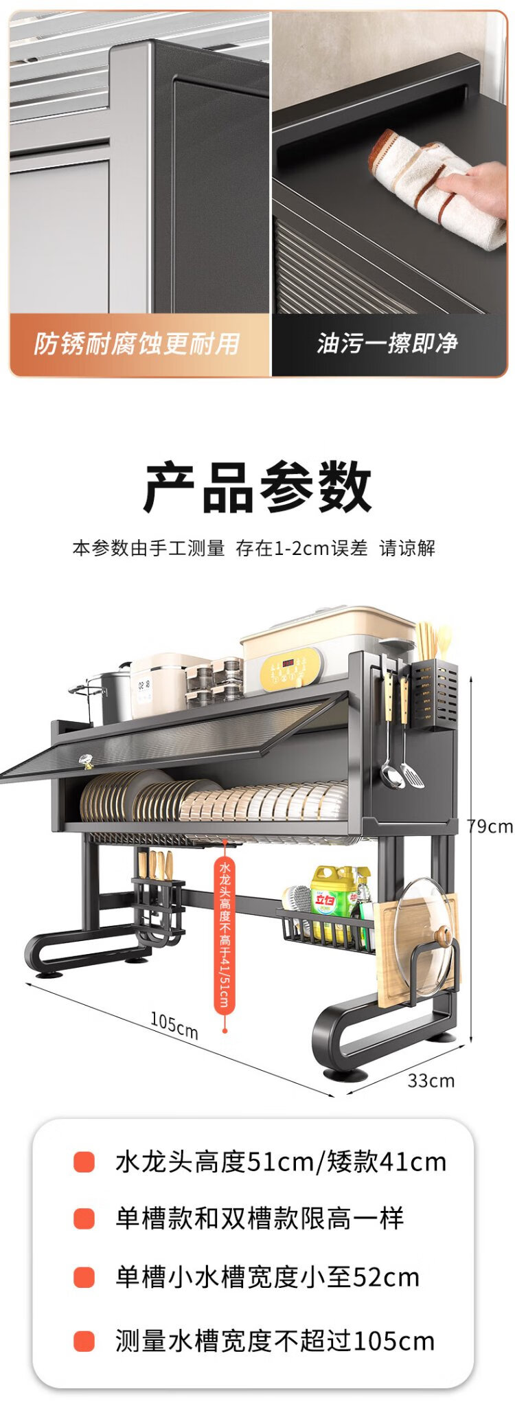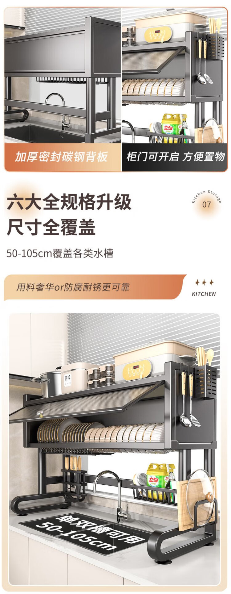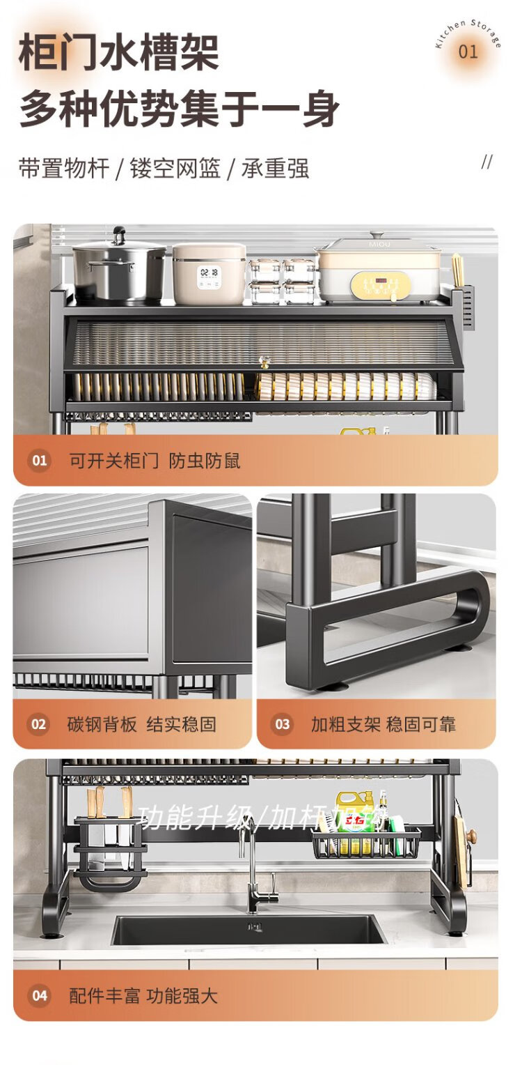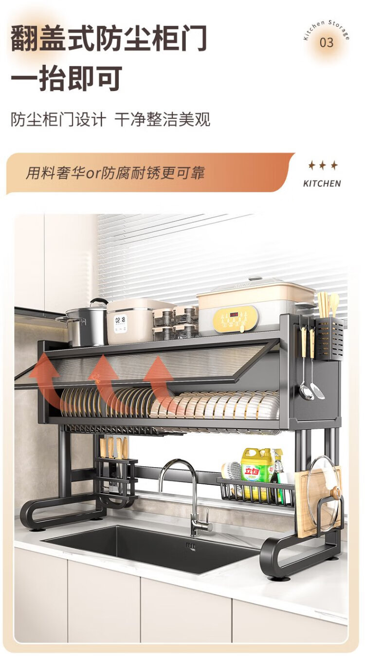 Benwang (BW) stainless steel kitchen sink rack drain rack dishwasher sink dustproof multi-functional dish drain cabinet gun gray 85cm long luxury fully equipped
