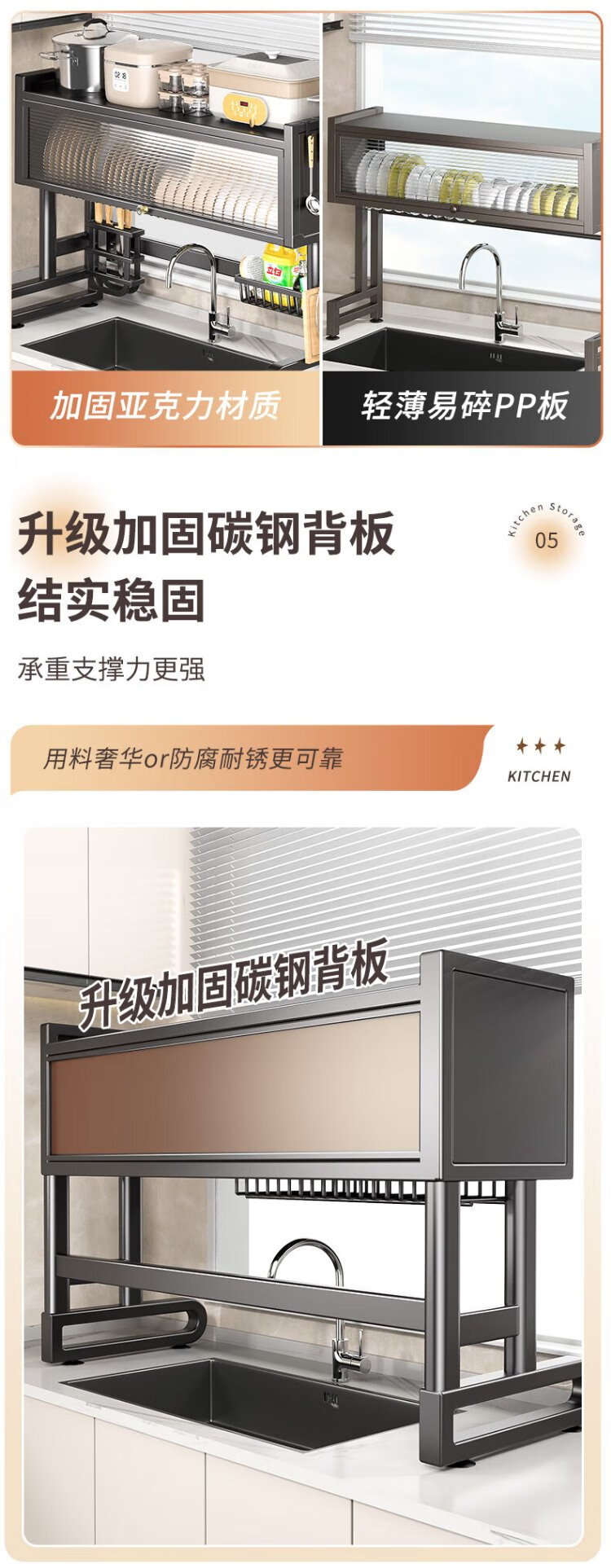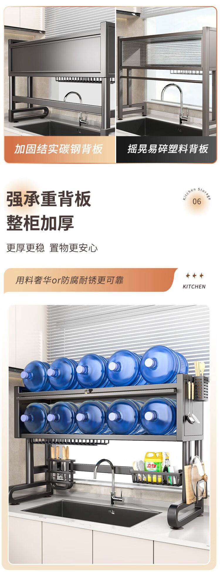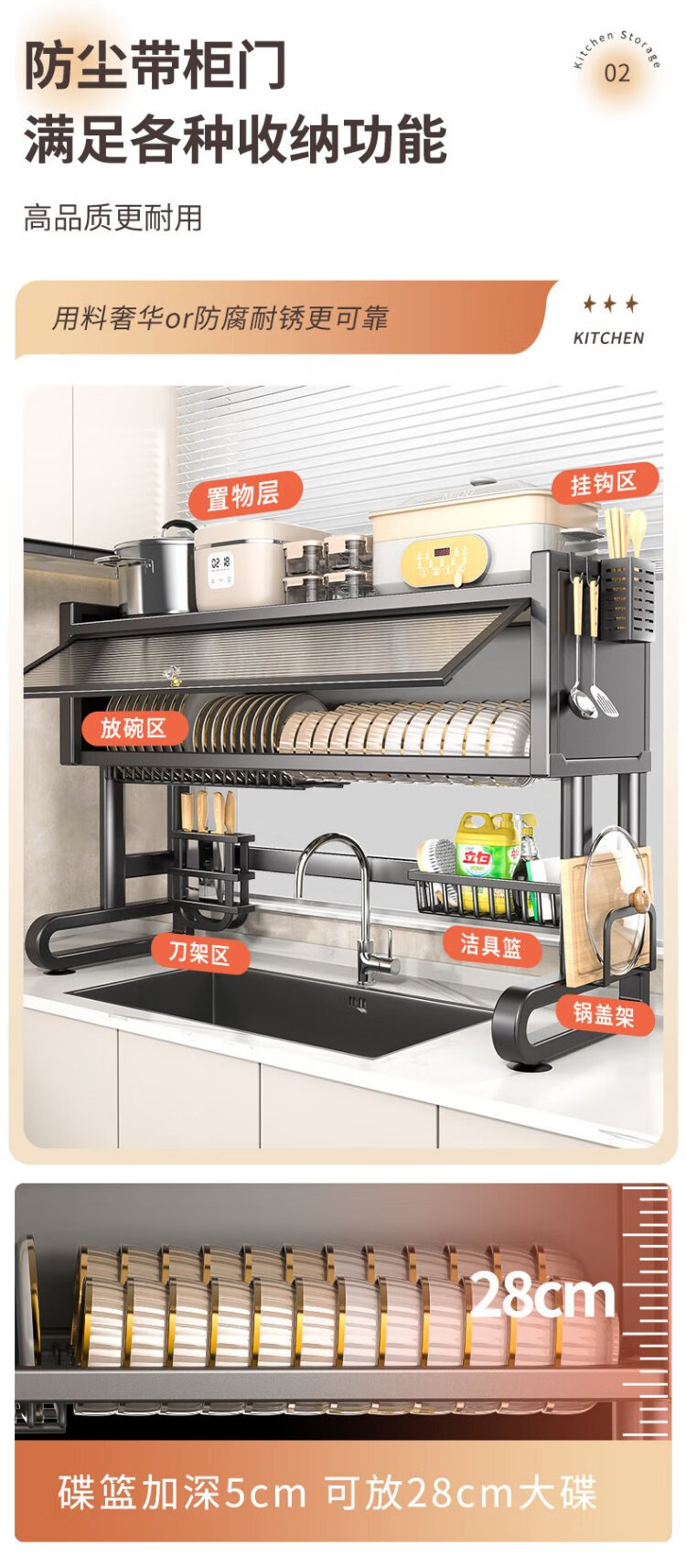 Benwang (BW) stainless steel kitchen sink rack drain rack dishwasher sink dustproof multi-functional dish drain cabinet gun gray 85cm long luxury fully equipped