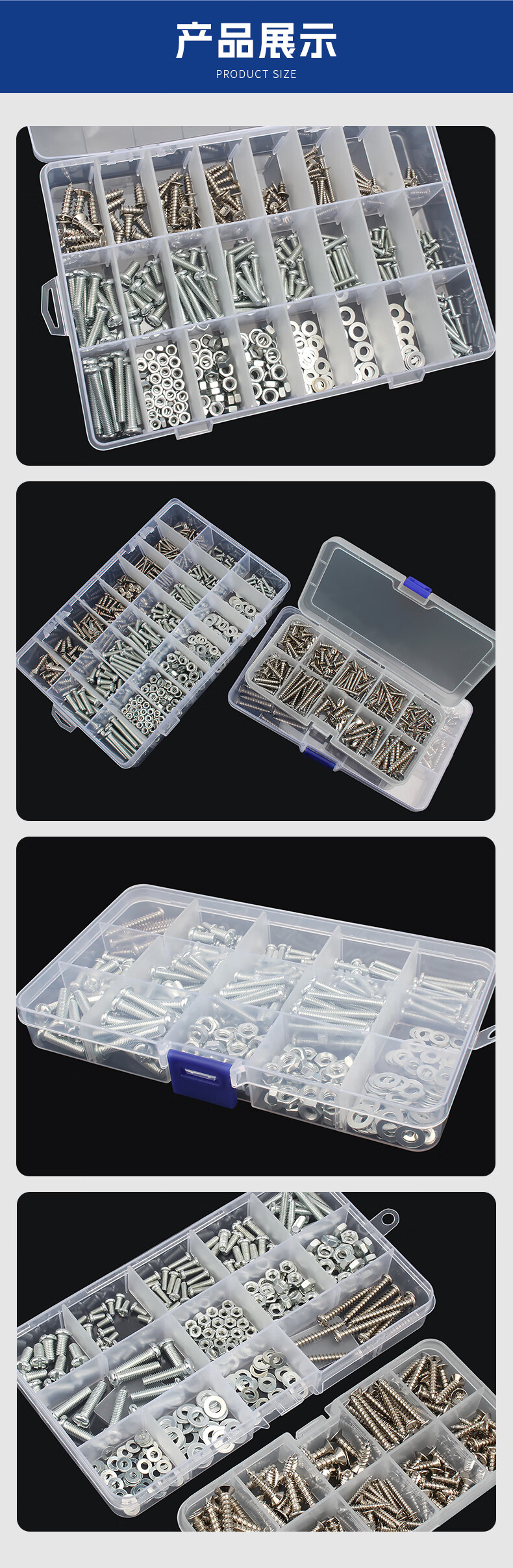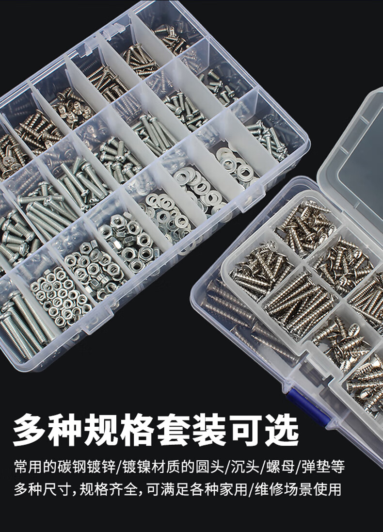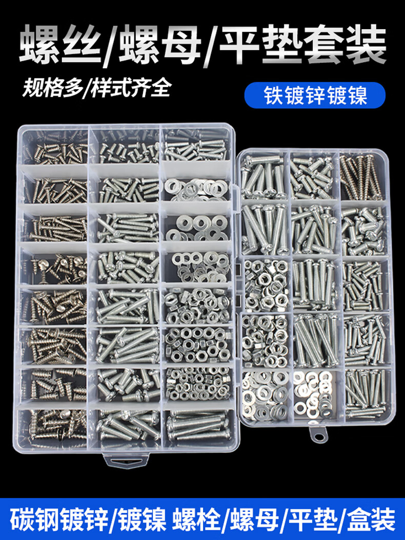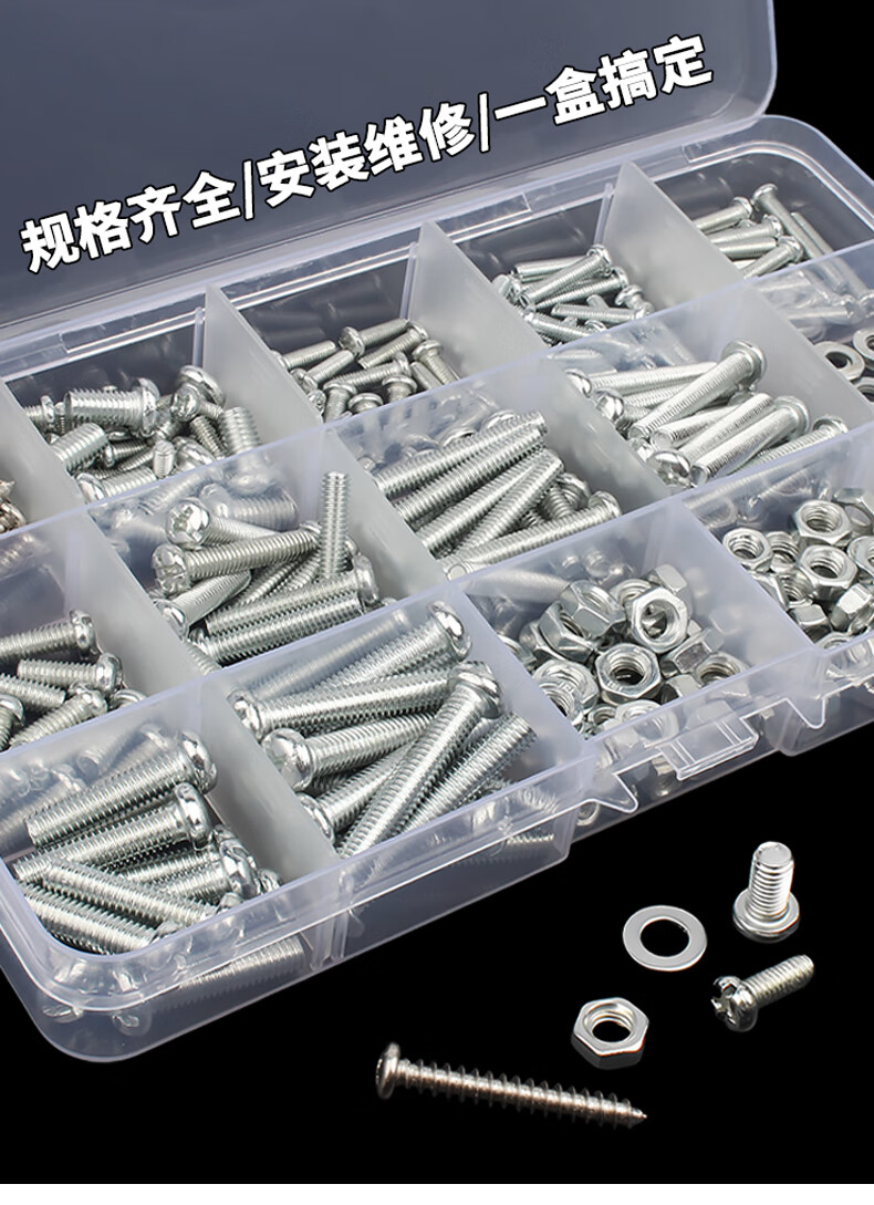 Guwanji mixed screw and nut combination set, complete round head cross pan head screw nut gasket, self-tapping screw box, screw set C type (24 types - about 900 grams)