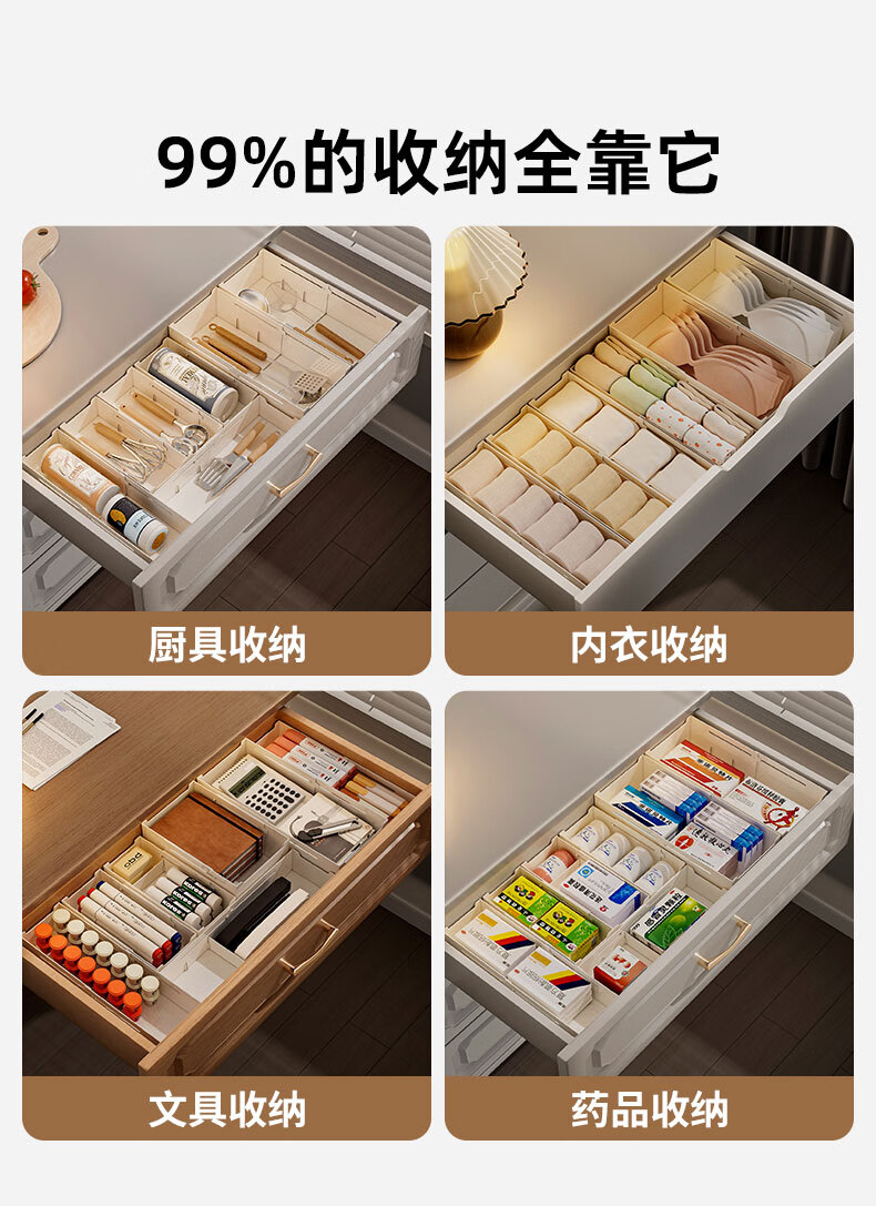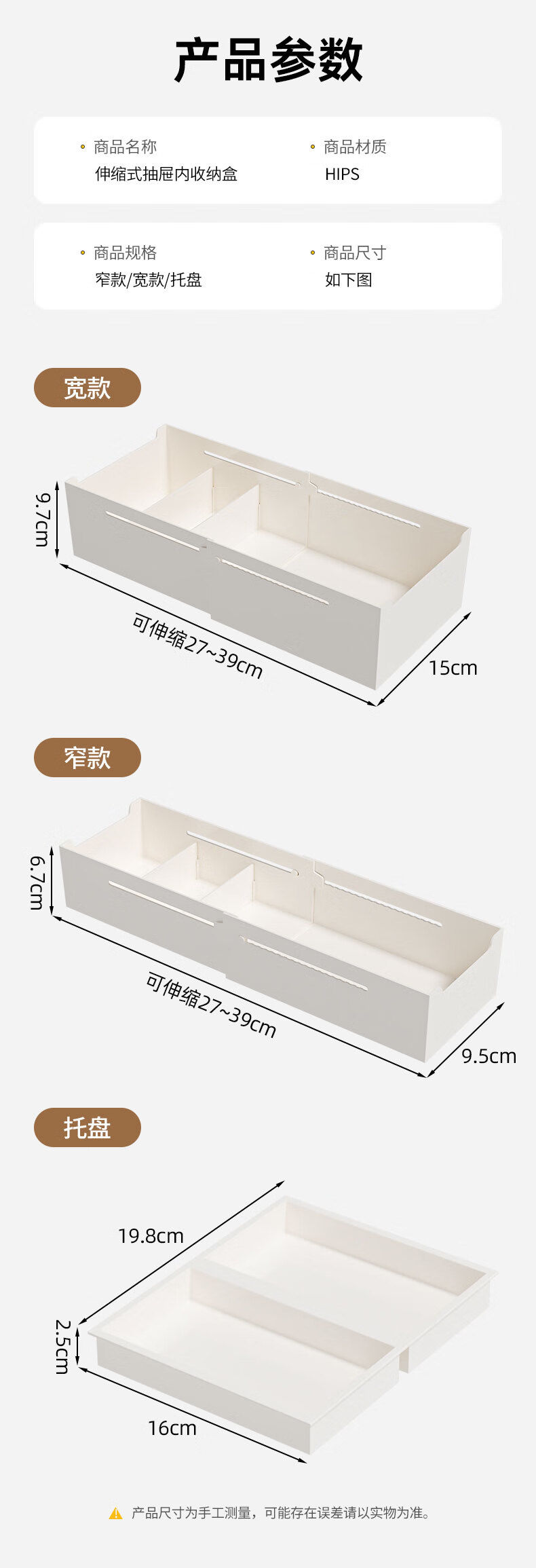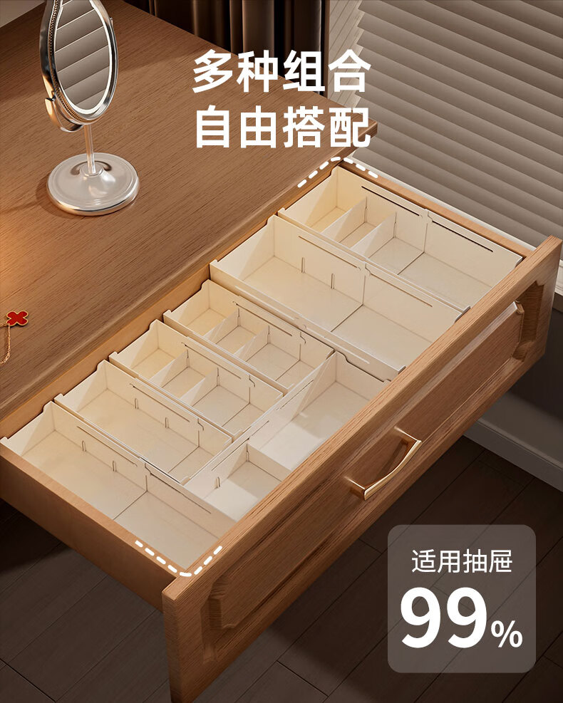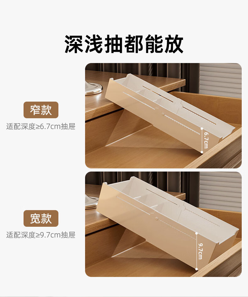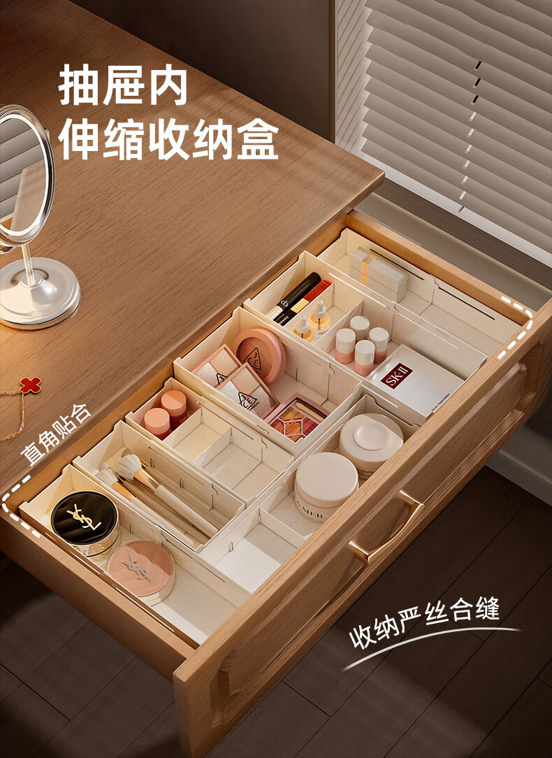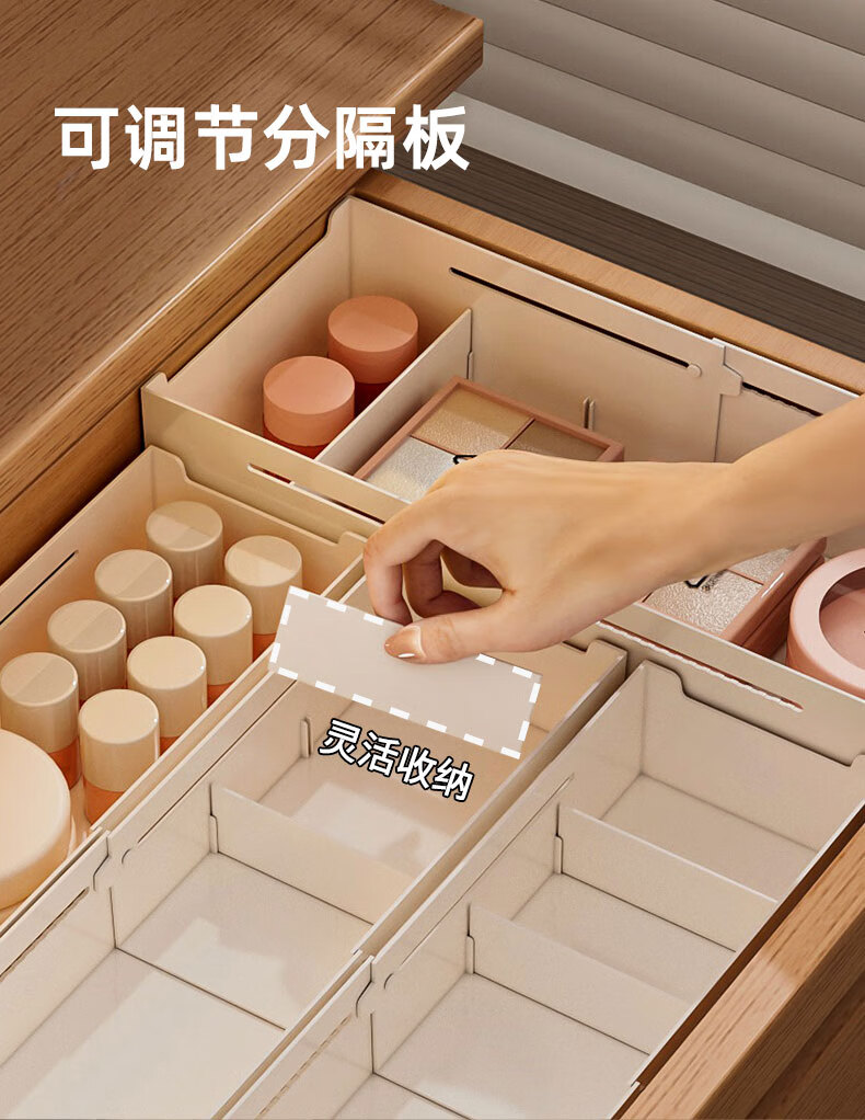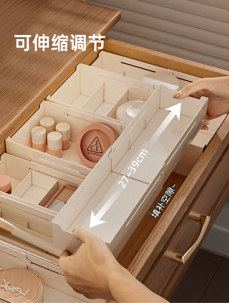 KAMAN compartment storage box in drawer, built-in retractable organizer box, dressing table storage rack, lipstick cosmetic compartment, wide style, retractable 27-39cm, 1 piece