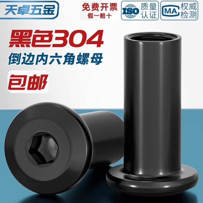 Tianzhuo Hardware Black 304 Stainless Steel Beveled Flat Head Furniture Inner Hexagonal Locking Nut Butt Plywood Nut MM2M3M4 M4*12 Rod Diameter 5 5 pcs