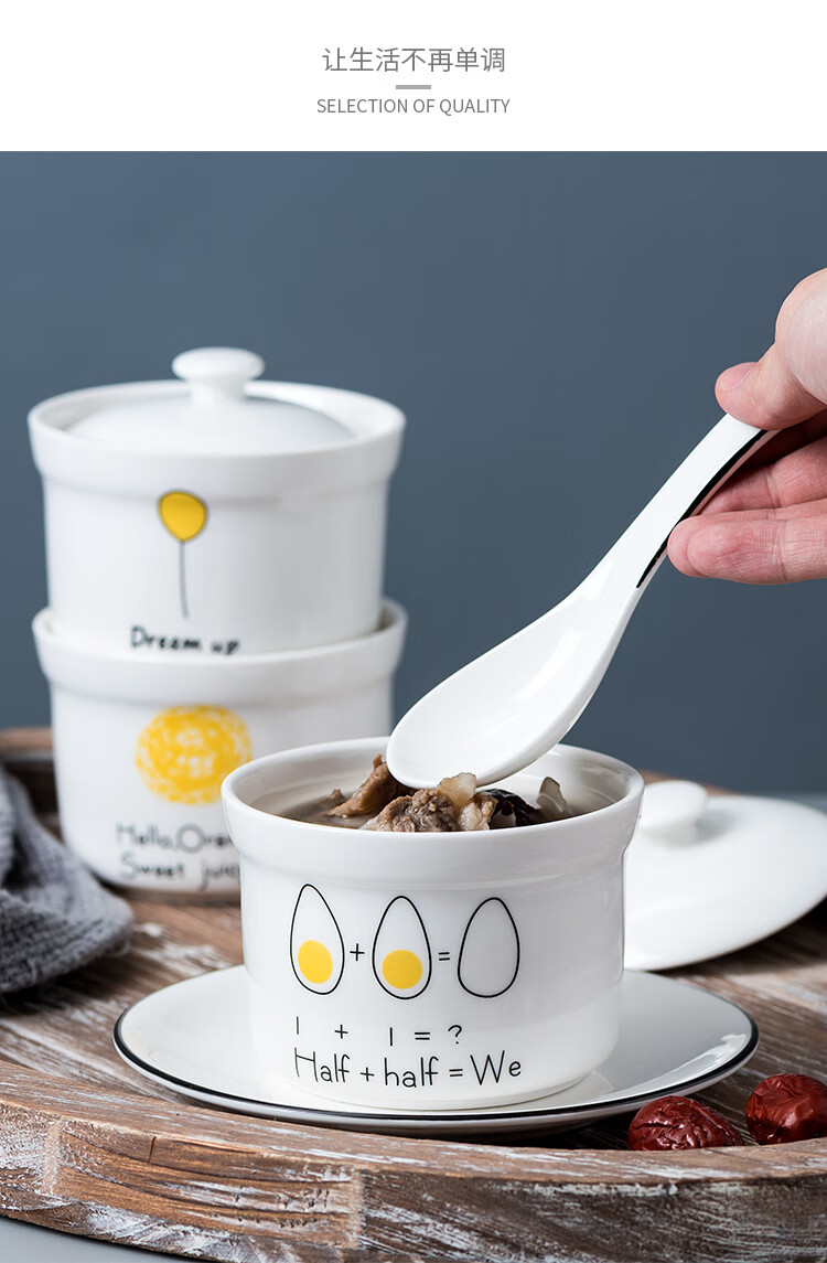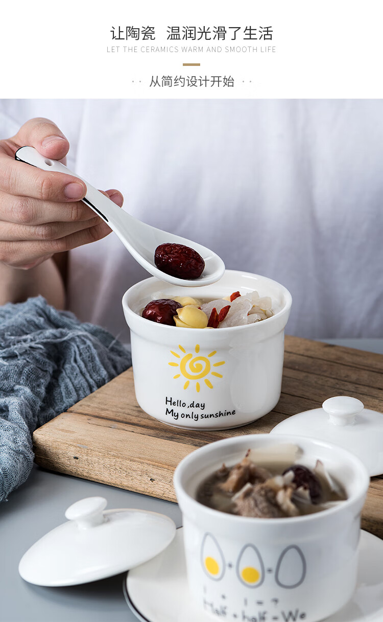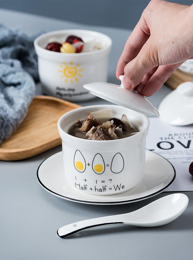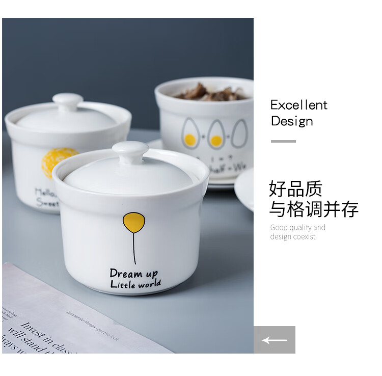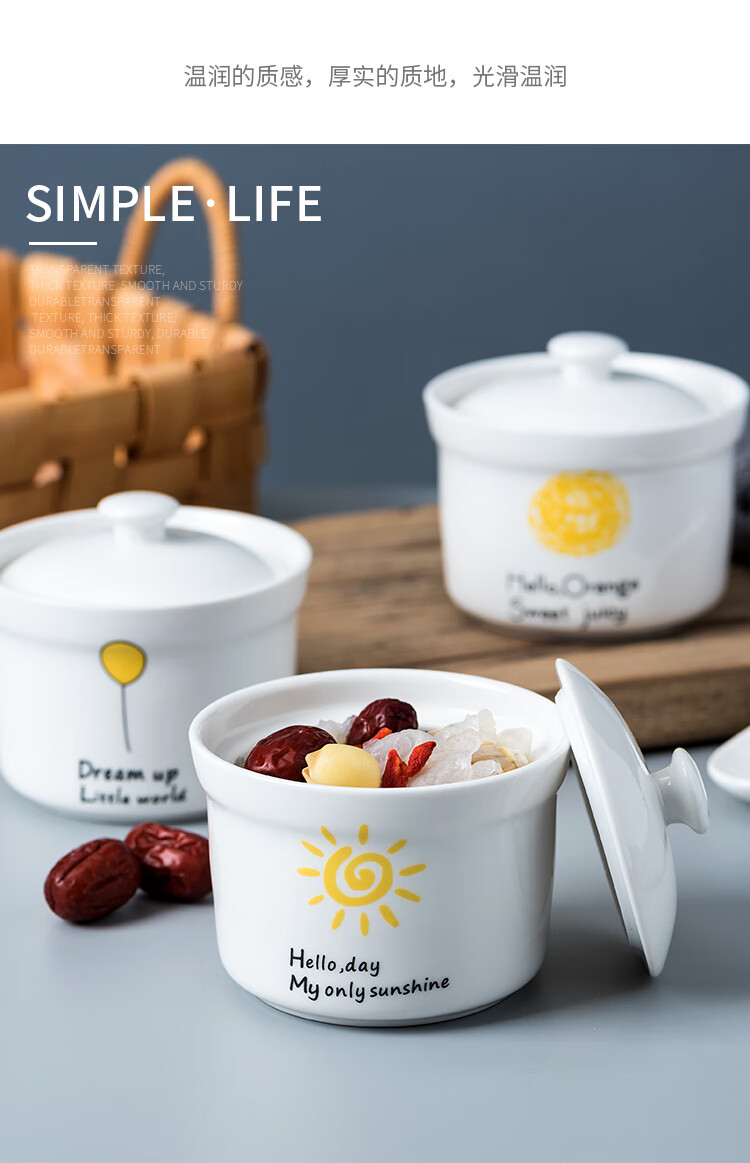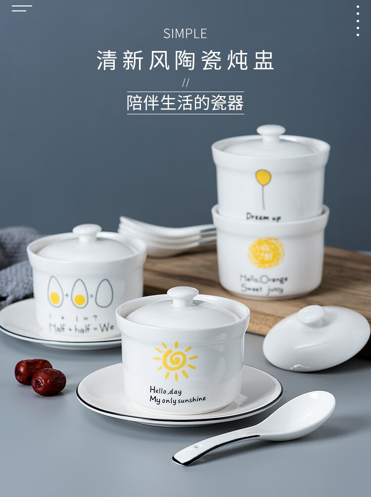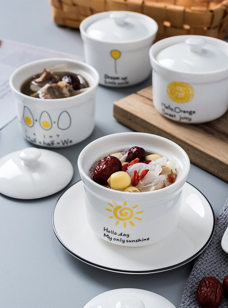 4-inch ceramic water-proof stew pot with lid, bird's nest steamed egg custard bowl, Shaxian snack stew pot, household commercial soup 4-inch stew pot - Dream series, set of four