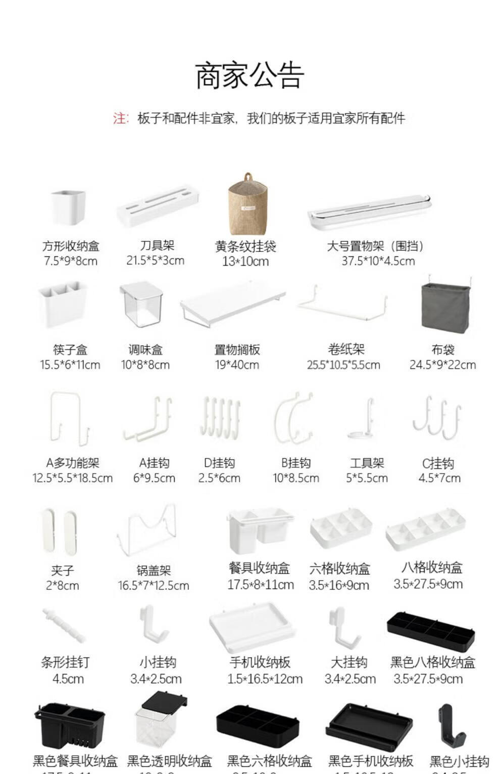Applicable hole board accessories, long hole universal hooks, hanging baskets, racks, desktop fixed connectors, D hooks (applicable)
