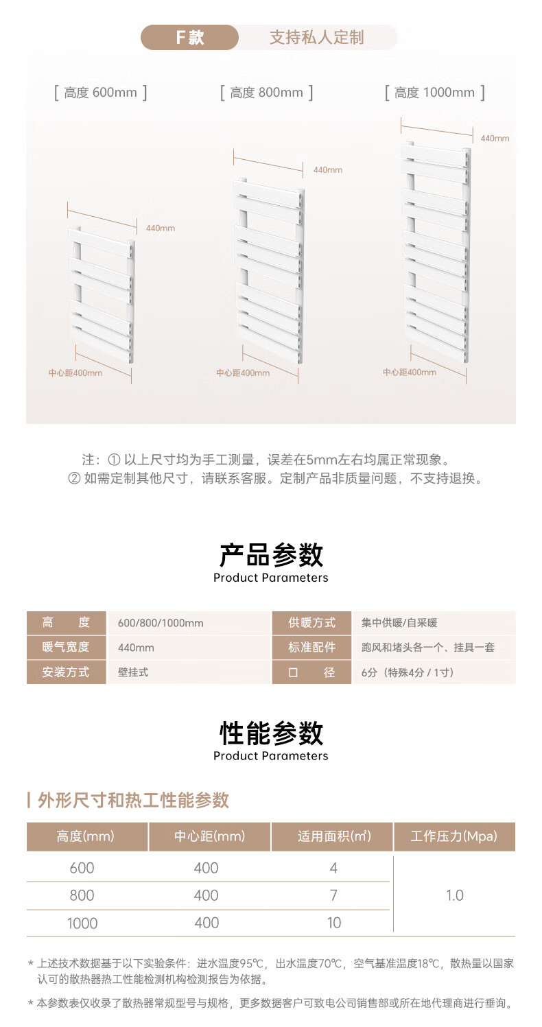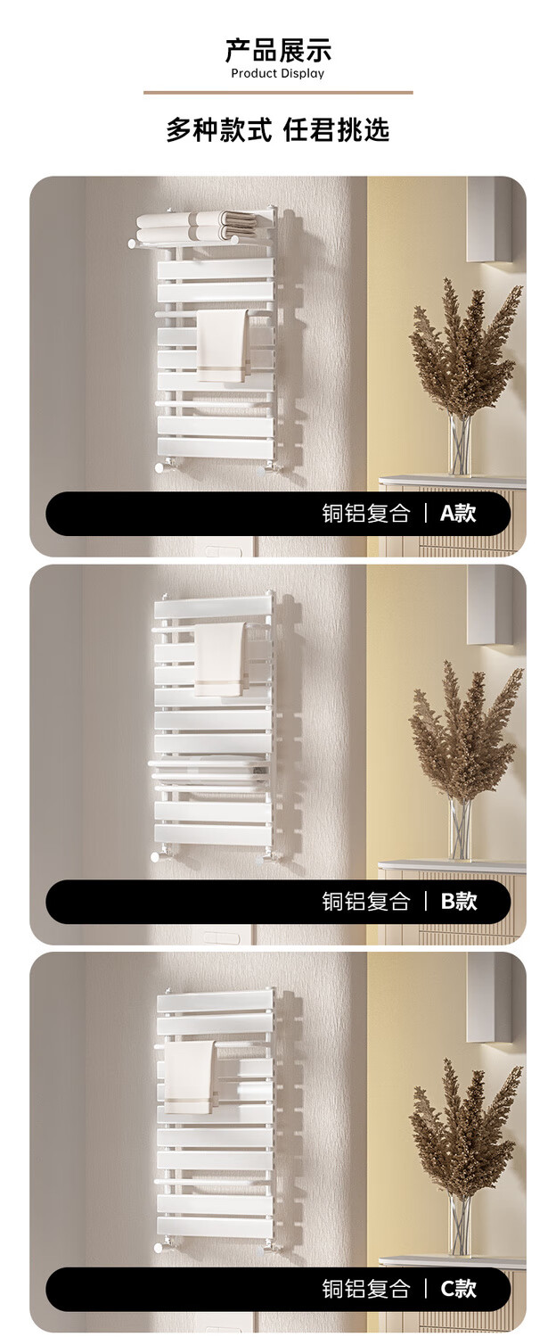 Qinkai Alode copper-aluminum composite small basket radiator household central heating bathroom heating toilet radiator copper-aluminum F type-cream style 0.6 meters
