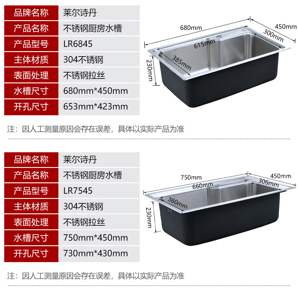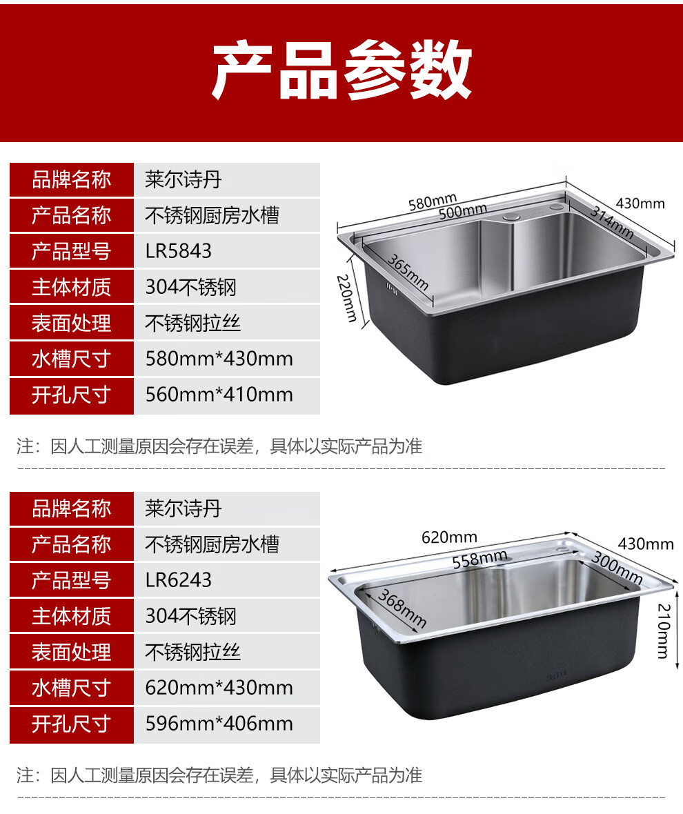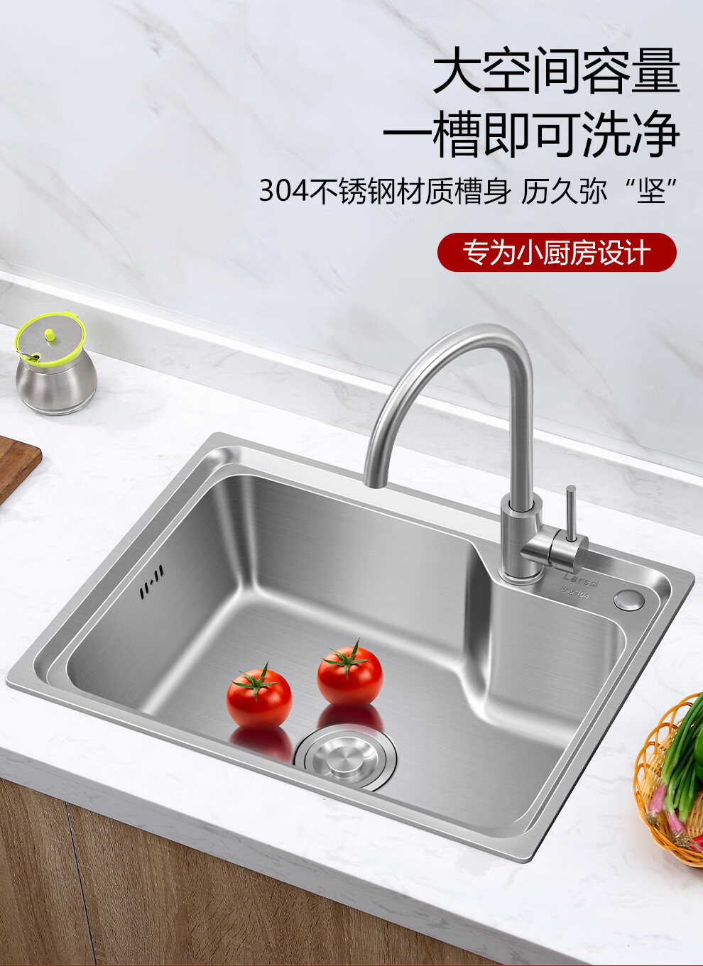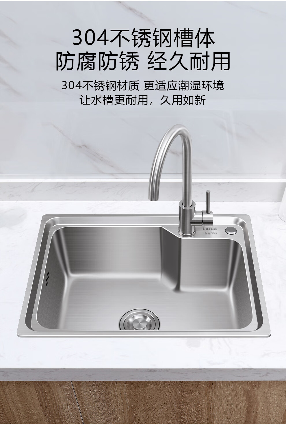 Larsd 304 stainless steel kitchen single-slot double-sink sink set kitchen sink faucet household LR6045 single-slot size 600*450mm