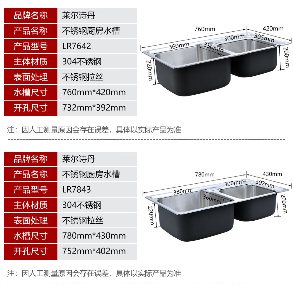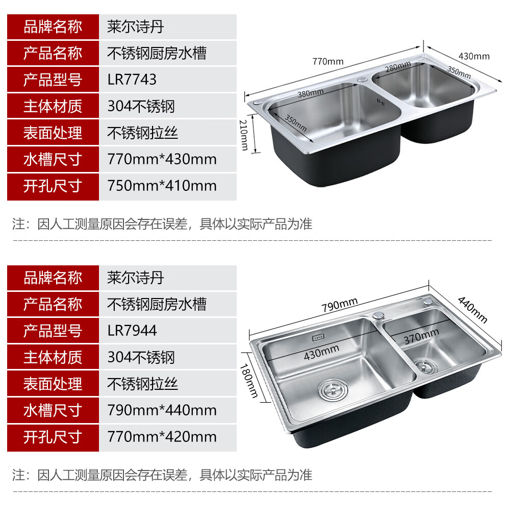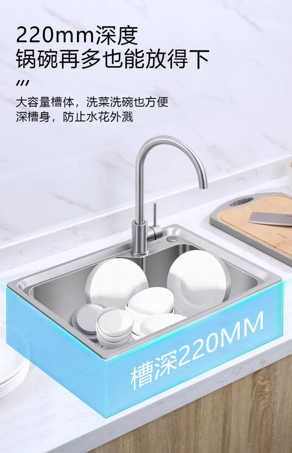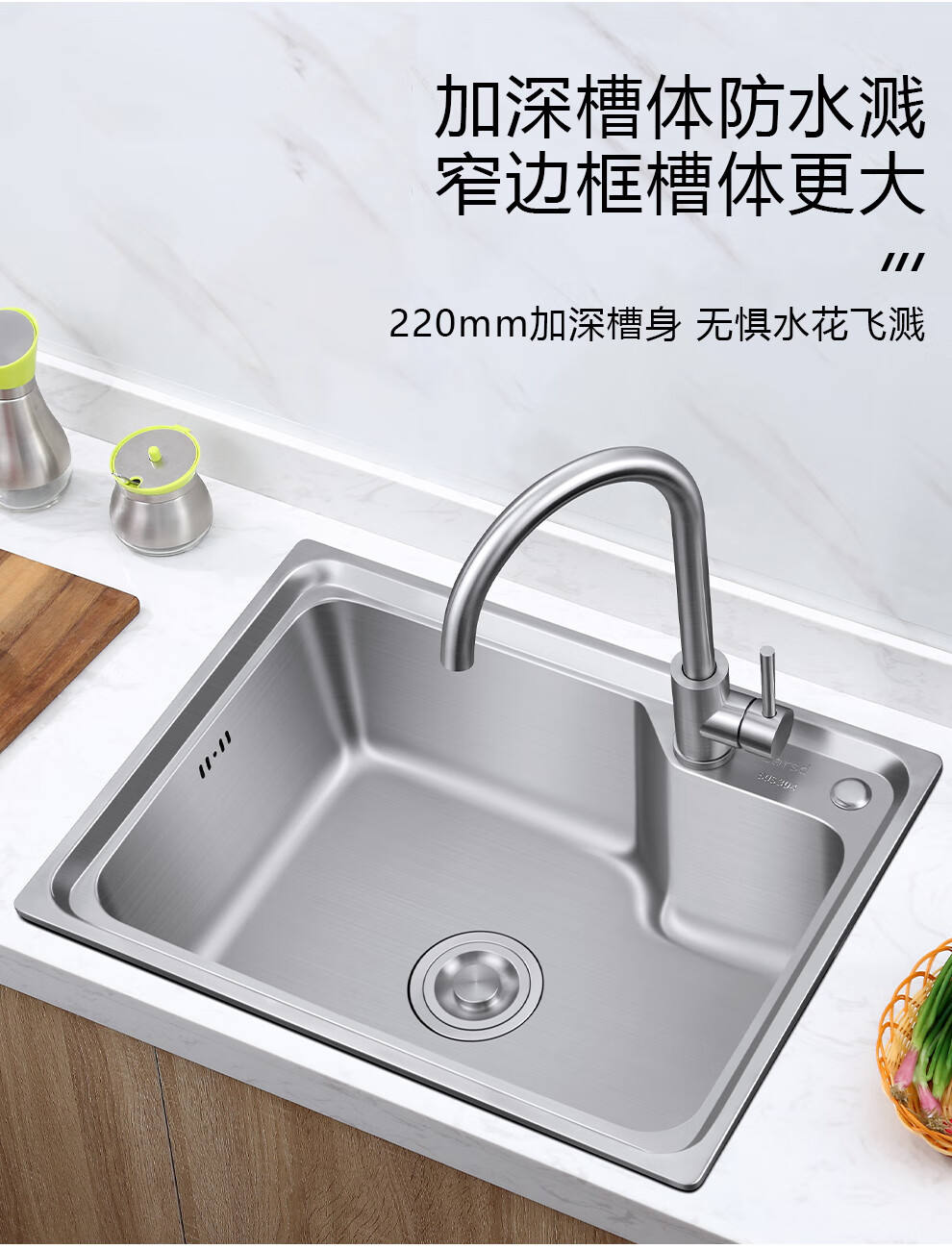 Larsd 304 stainless steel kitchen single-slot double-sink sink set kitchen sink faucet household LR6045 single-slot size 600*450mm