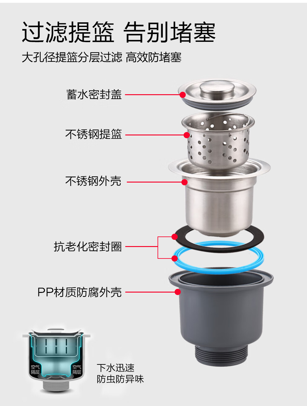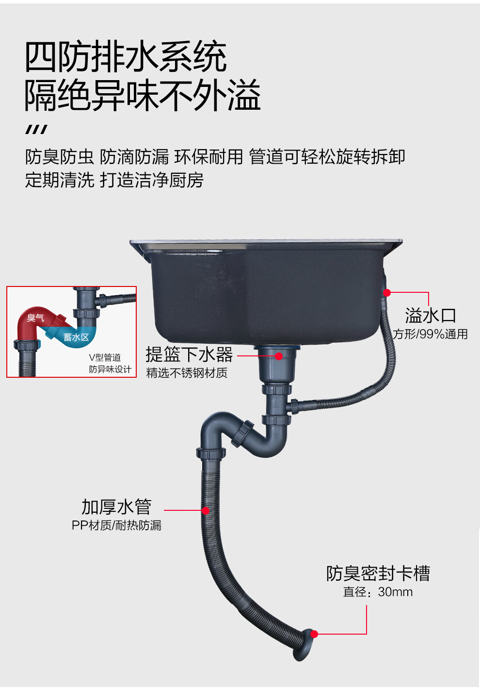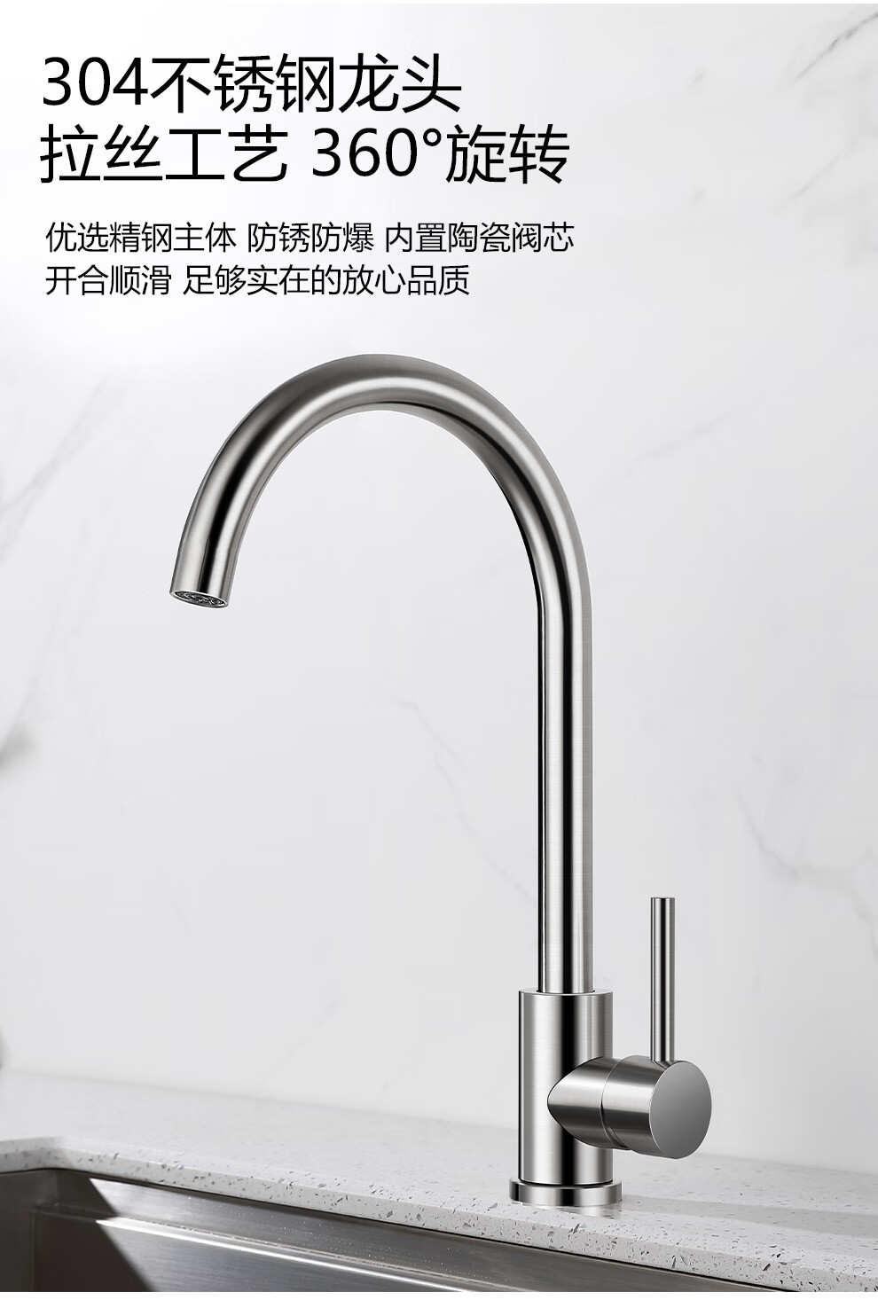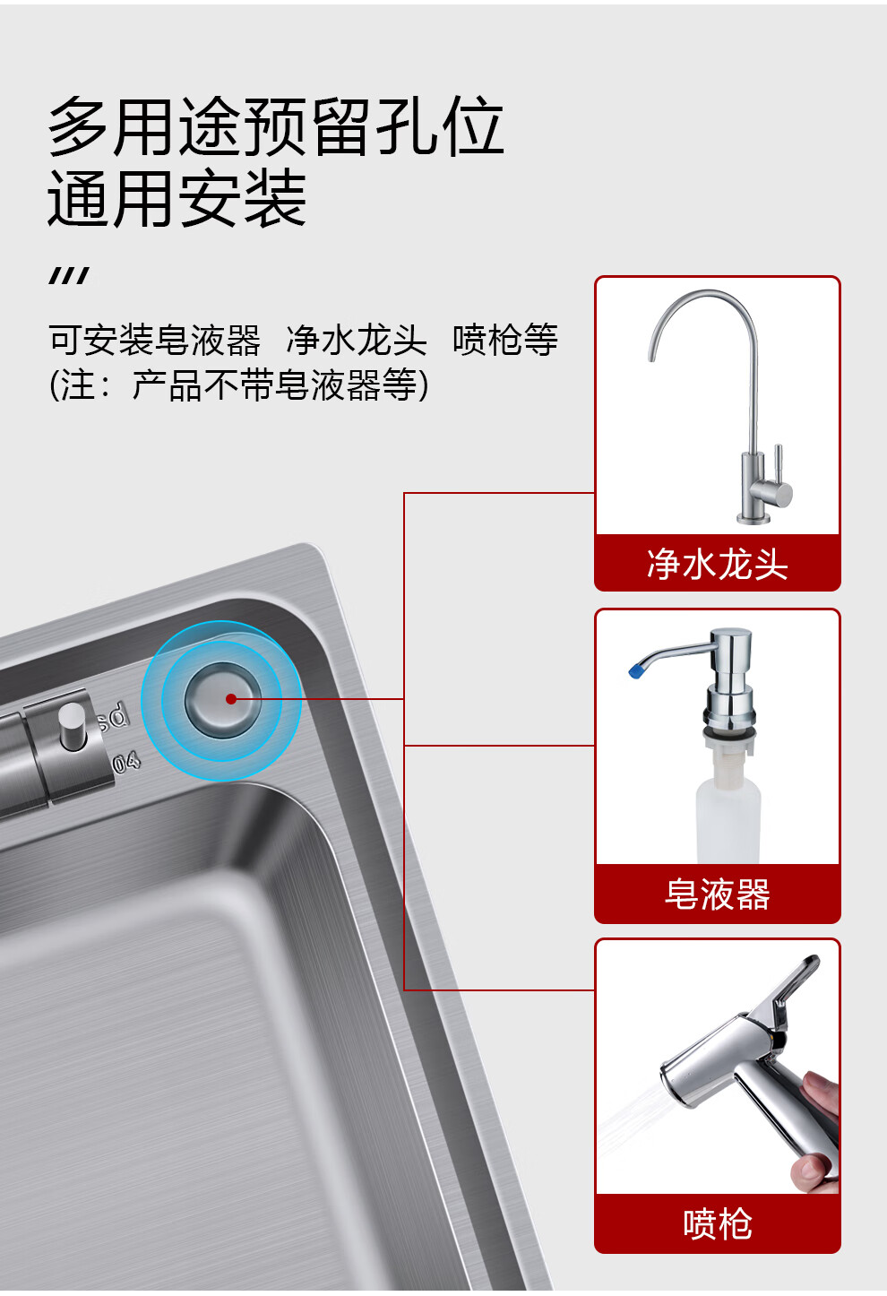 Larsd 304 stainless steel kitchen single-slot double-sink sink set kitchen sink faucet household LR6045 single-slot size 600*450mm