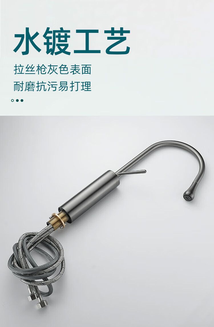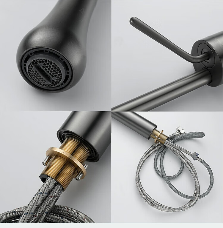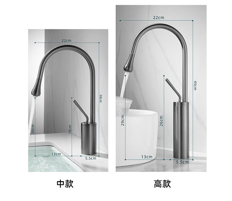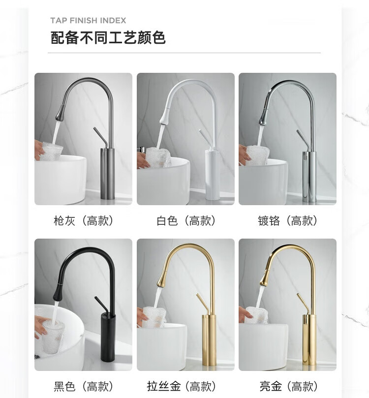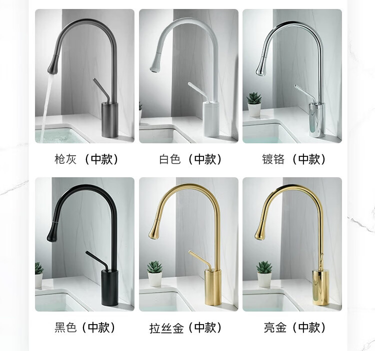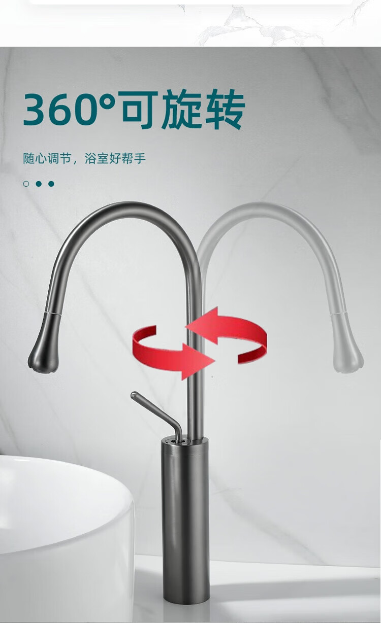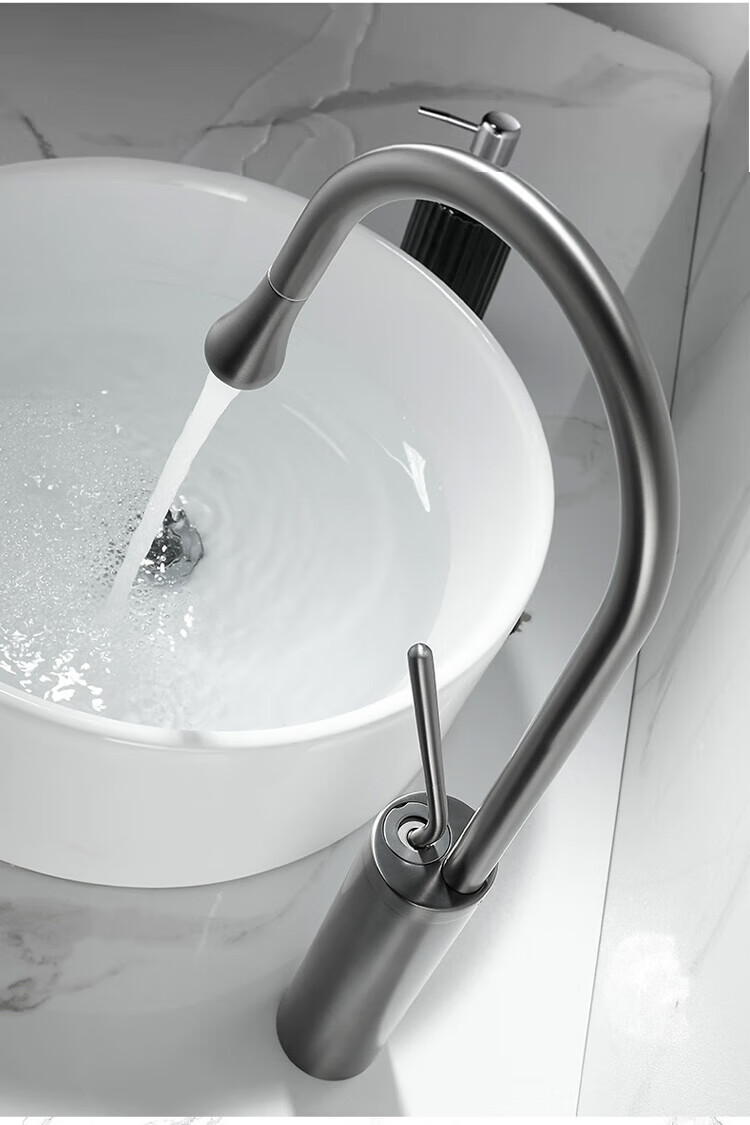 Qian Dushan gun gray pull-out faucet countertop basin heightened bathroom wash basin full copper telescopic rotating faucet hot and cold S silver medium style