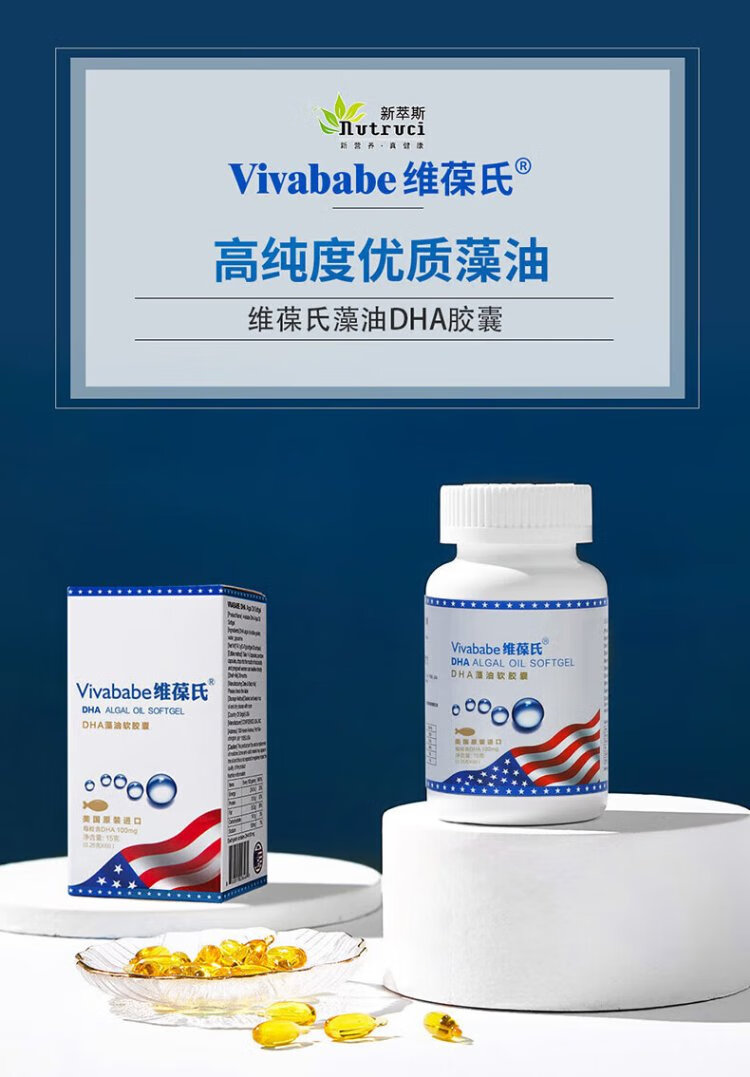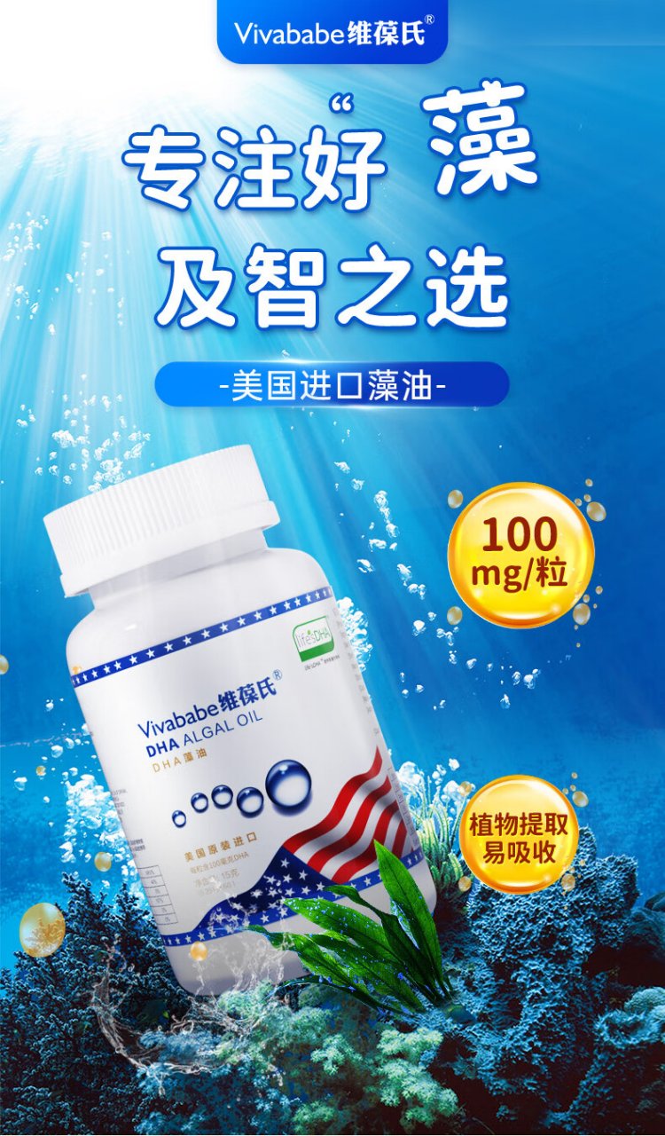 Vivo's dha algae oil imported dha 60 capsules for children, students, adolescents, pregnant women and lactating mothers, it is more cost-effective to stock up 60 capsules * 4 bottles