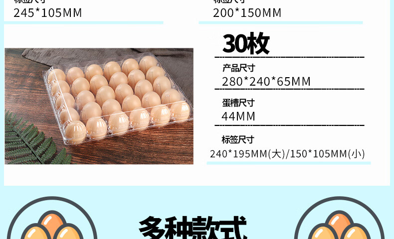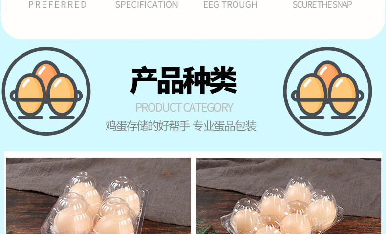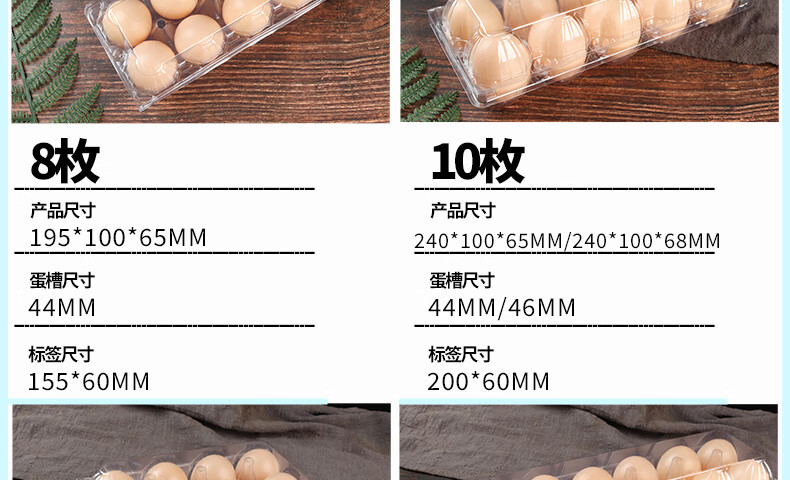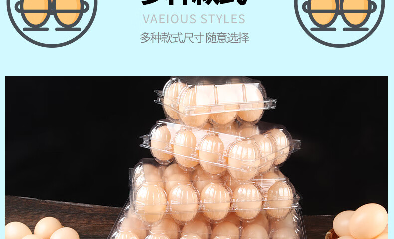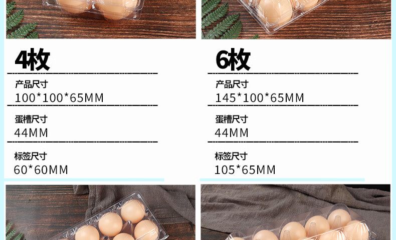Enshousu transparent plastic egg tray egg packaging box, various specifications of supermarket disposable egg boxes, plastic 4 pieces (thick medium size) 100 boxes