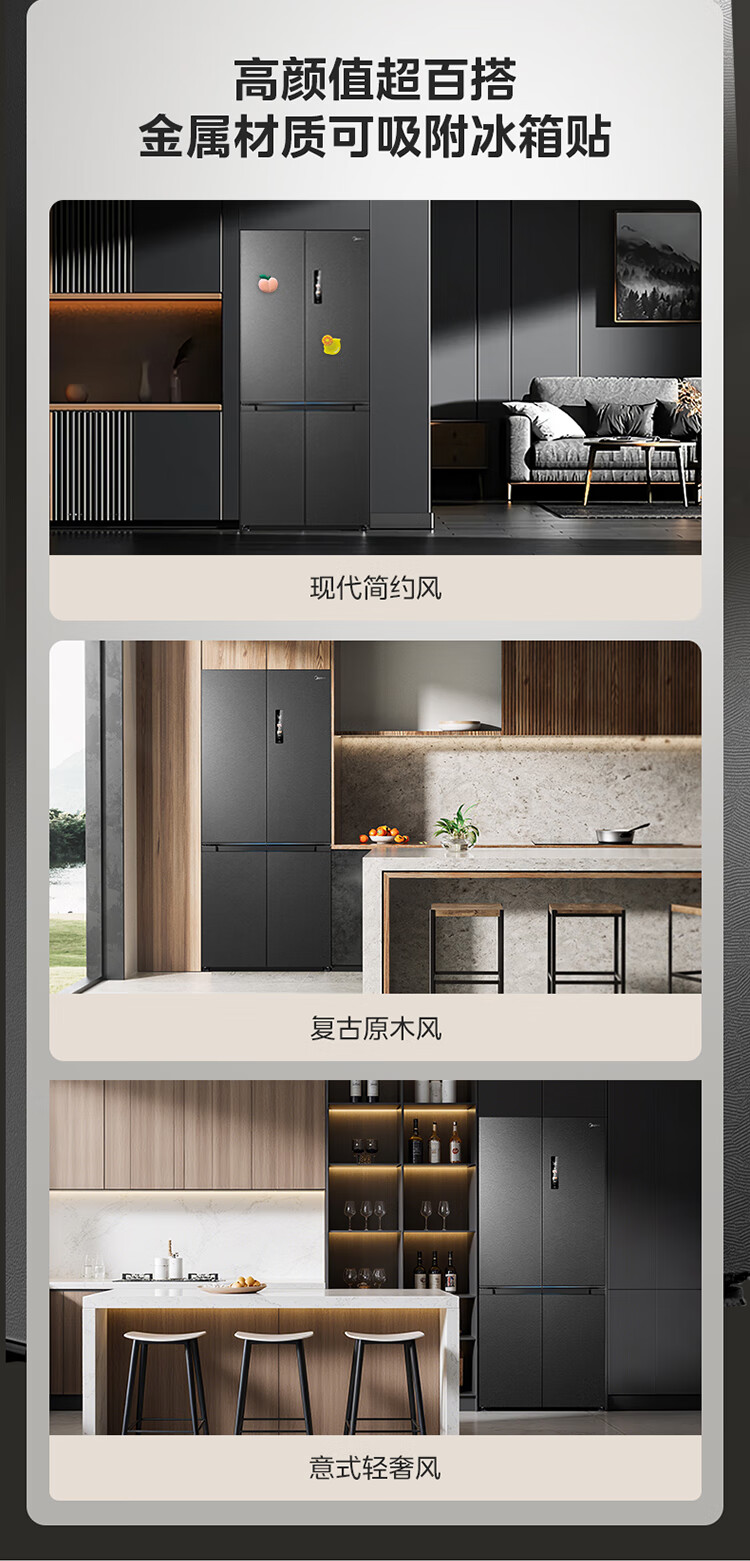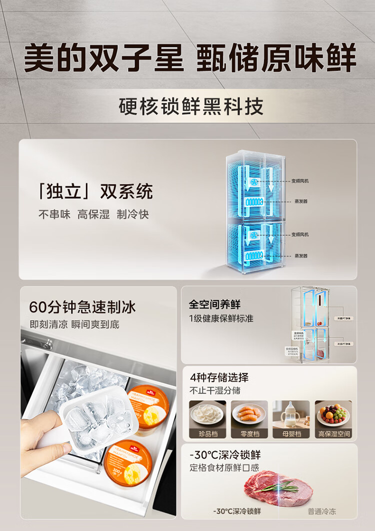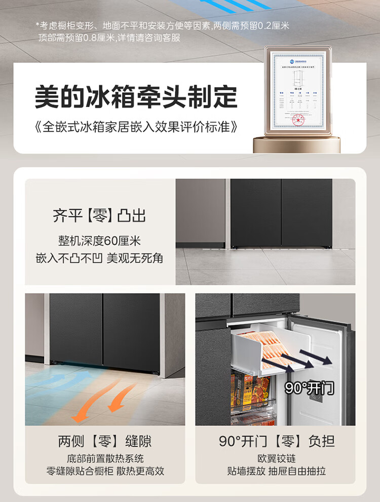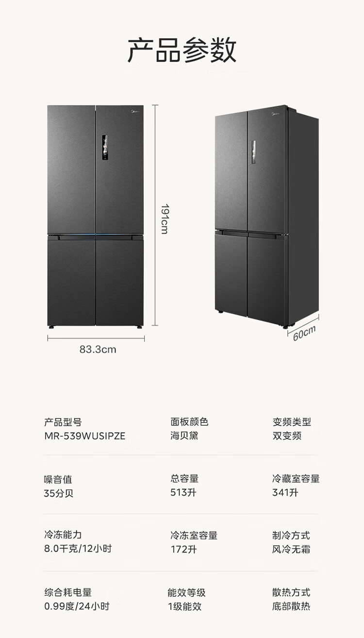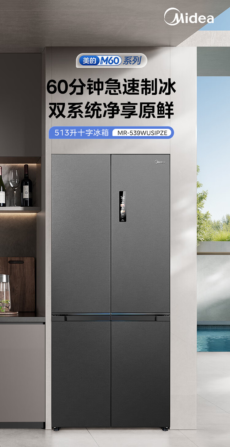 Midea M60 Gemini series 539 cross four-door dual system zero-embedded flat-screen fully embedded thin ice machine bottom cooling embedded first-class air-cooled frost-free refrigerator trade-in MR-539WUSIPZE