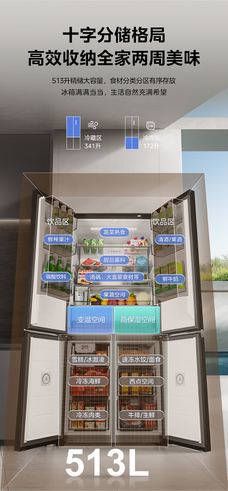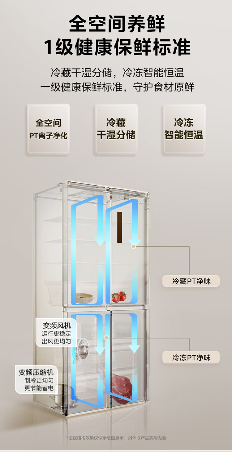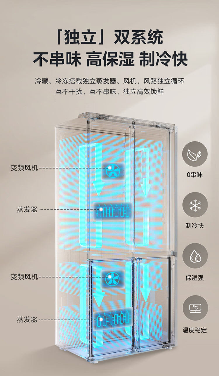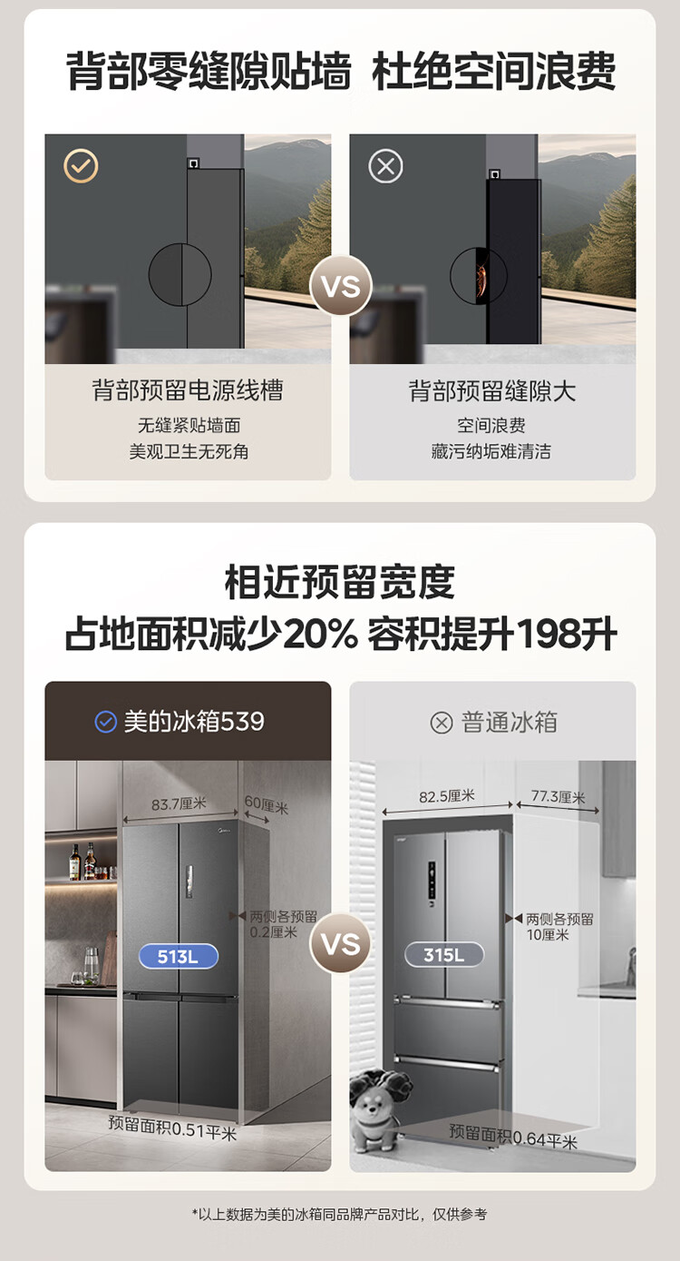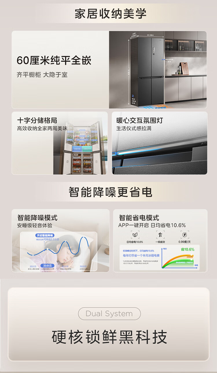 Midea M60 Gemini series 539 cross four-door dual system zero-embedded flat-screen fully embedded thin ice machine bottom cooling embedded first-class air-cooled frost-free refrigerator trade-in MR-539WUSIPZE
