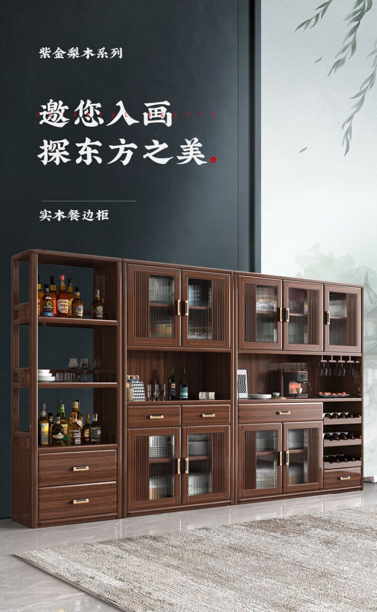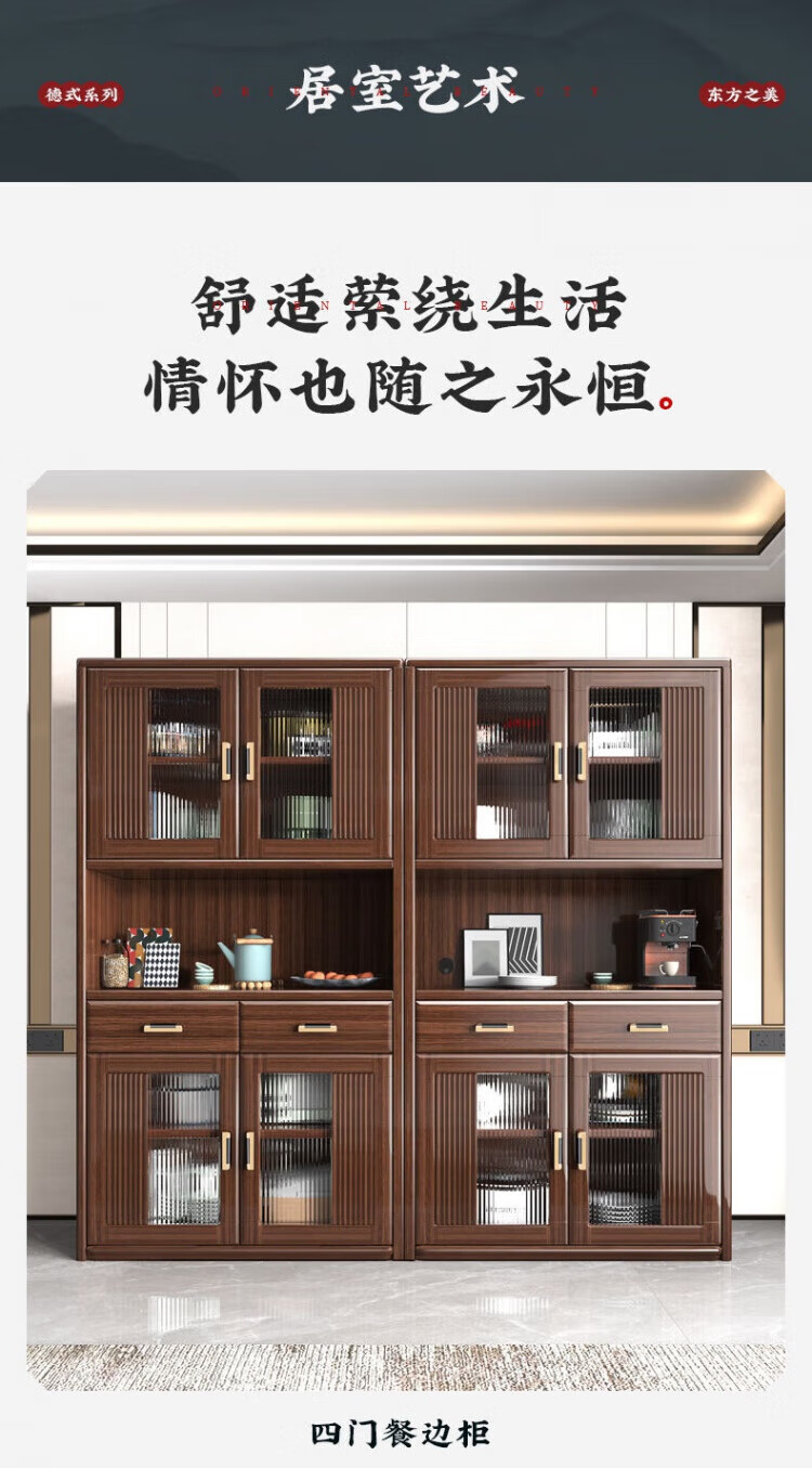 New Chinese-style solid wood sideboard against the wall, integrated wine cabinet, multi-functional storage cabinet, large-capacity storage cabinet for home living room, two-door sideboard, free delivery