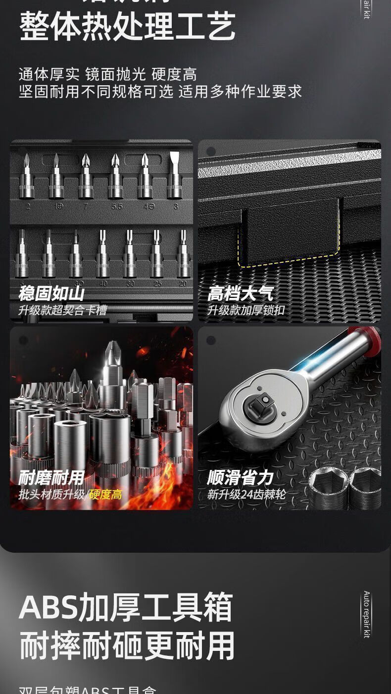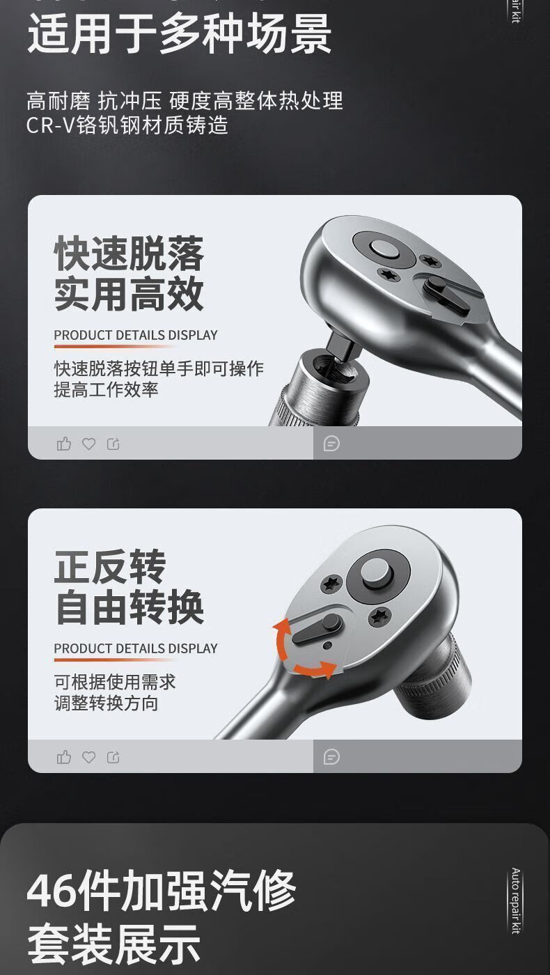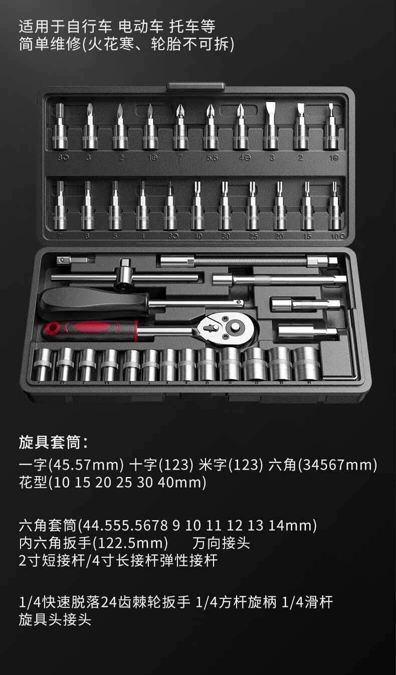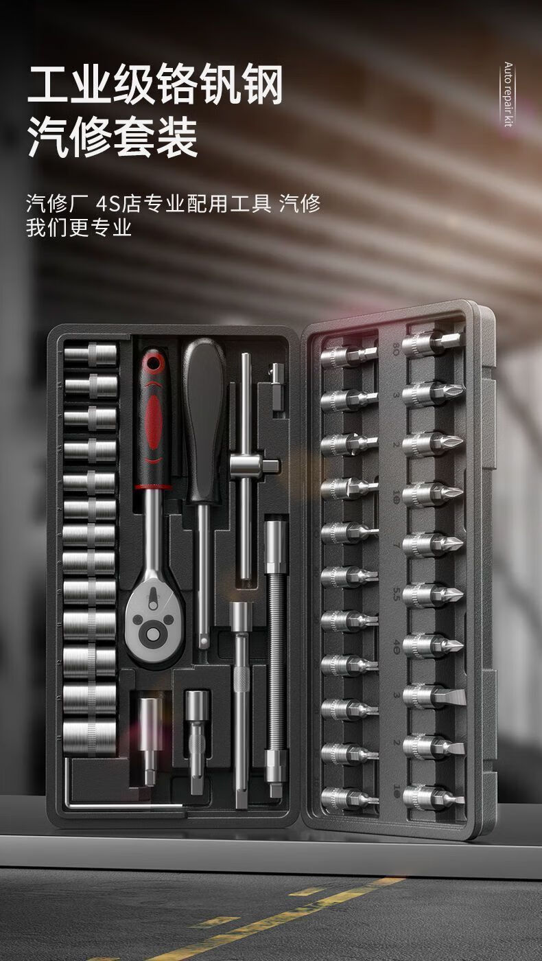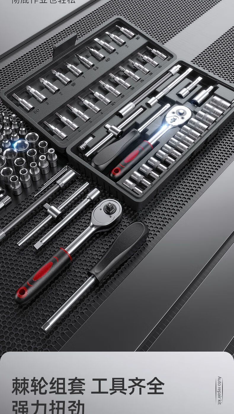 Yanran complete set of auto repair kits, auto repair tool sets, ratchet wrenches, multi-functional repair home socket wrench sets, professional auto repair 46-piece set, random colors